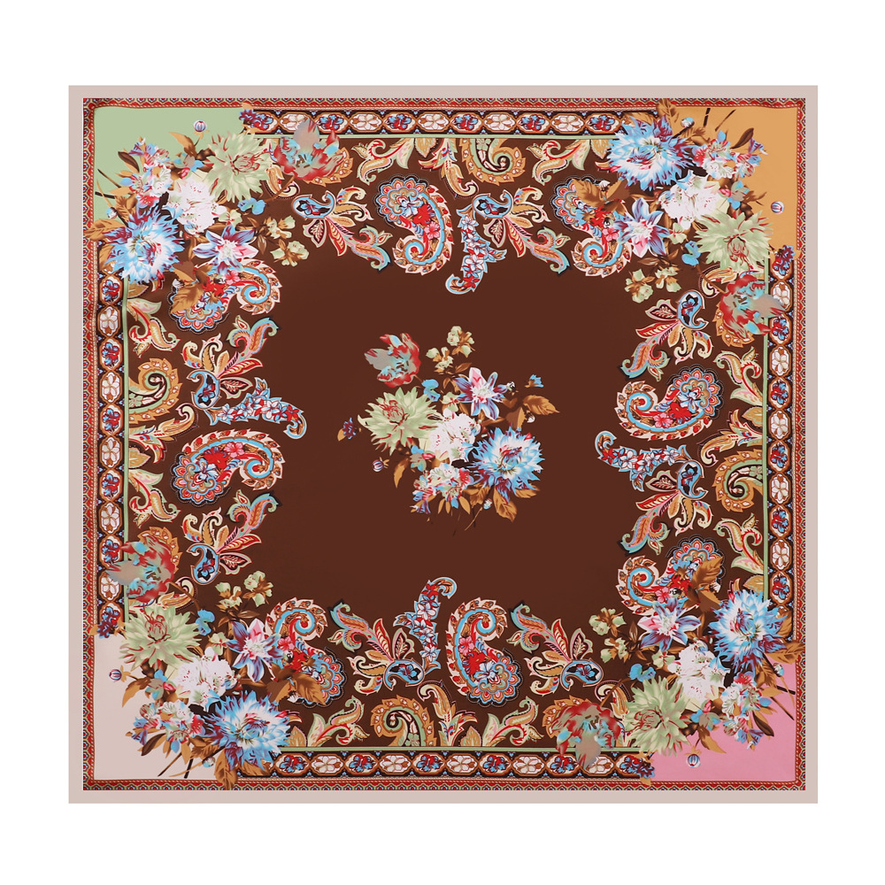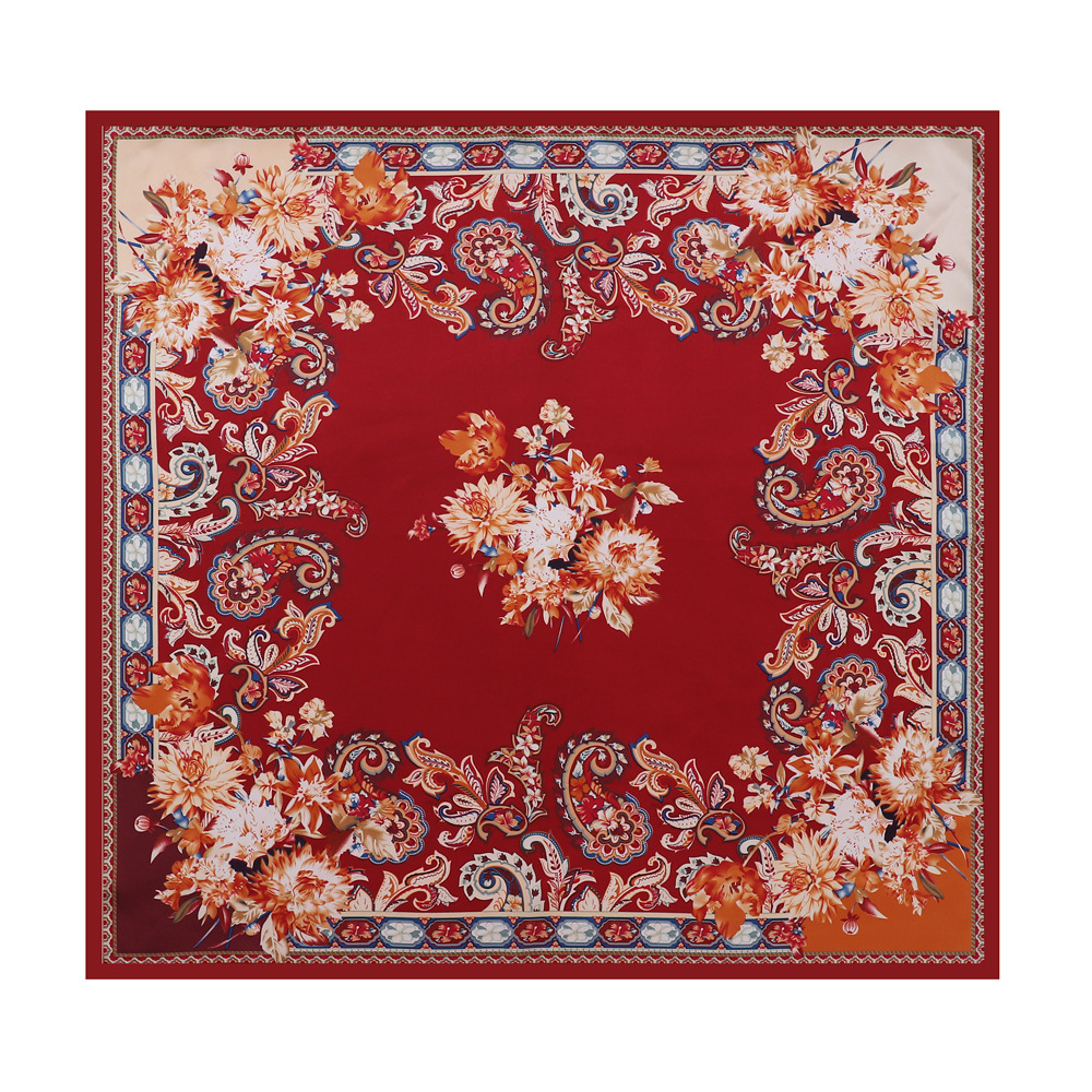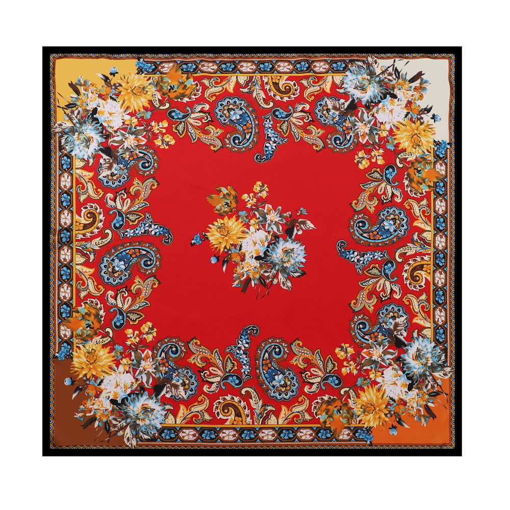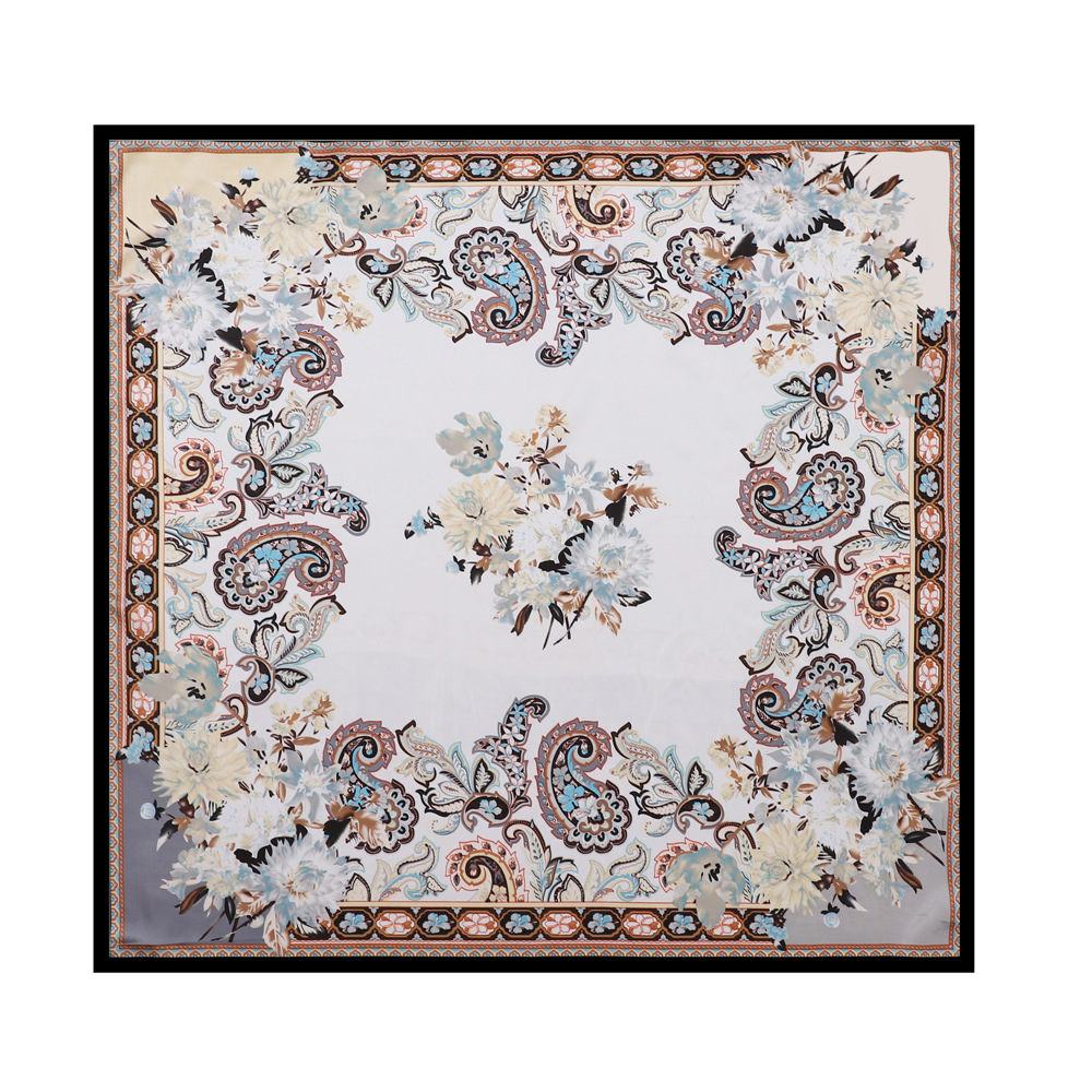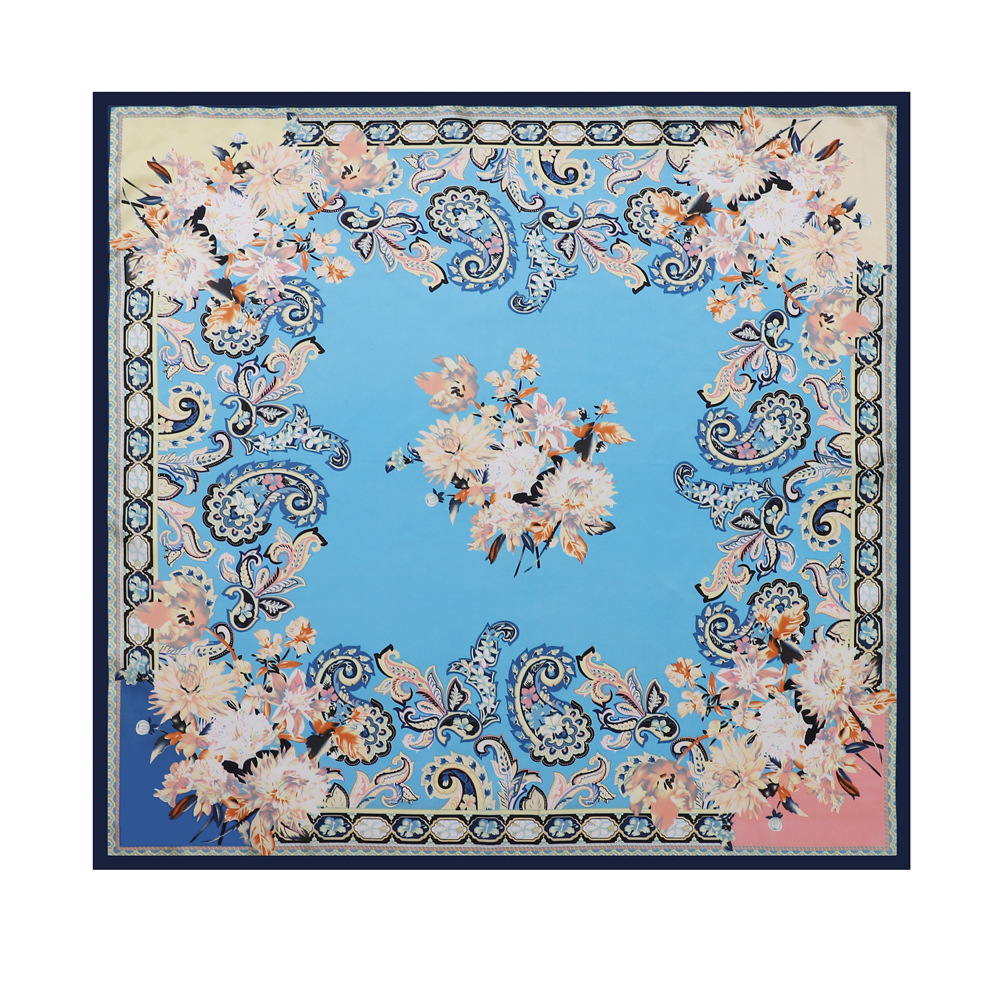 90cm 컬러 헤드 스카프 유럽과 미국의 크로스 보더 프린트 스퀘어 스카프 여성 기질 모조 실크 스카프 목도리 스카프 도매