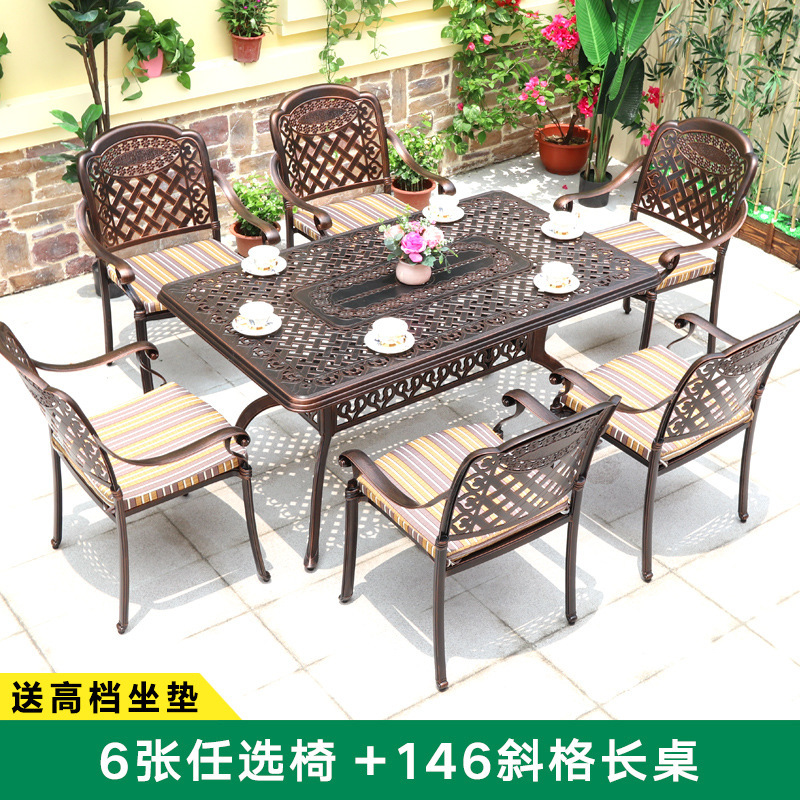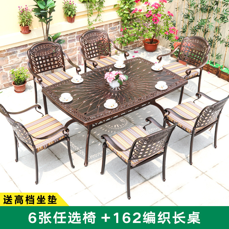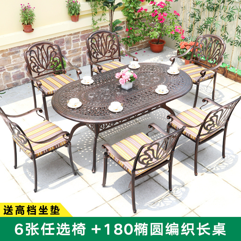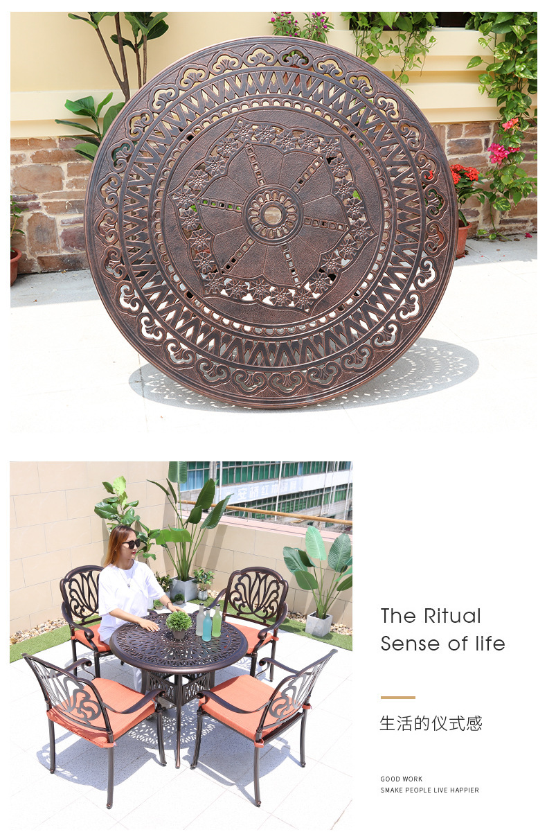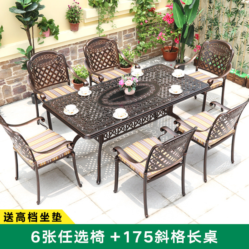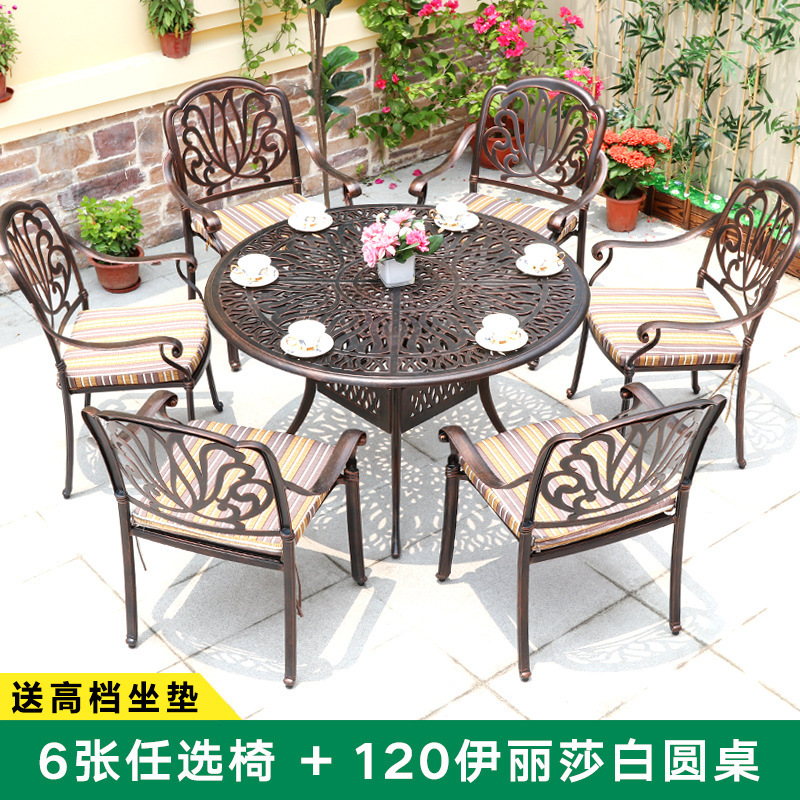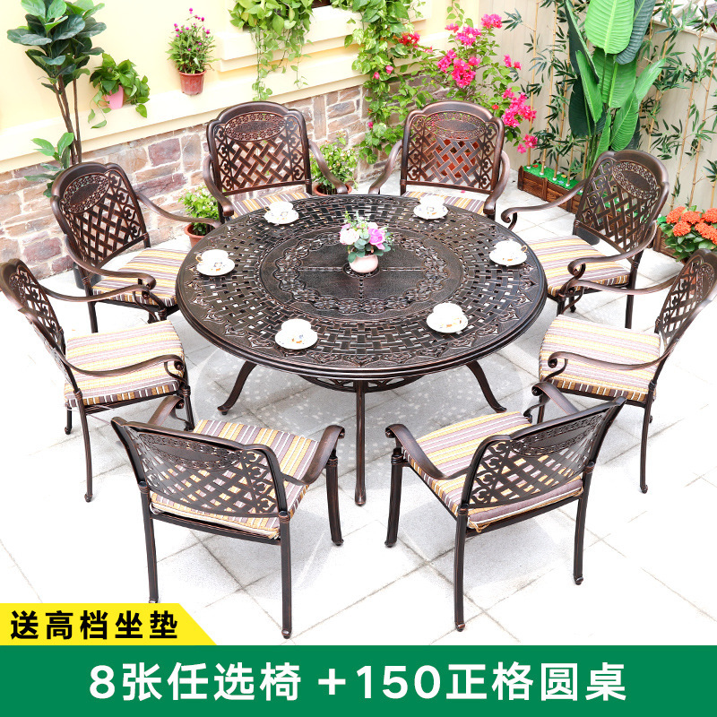주조 알루미늄 야외 테이블과 의자, 알루미늄 합금 의자, 원형 테이블, 긴 테이블, 식탁과 의자, 빌라 안뜰, 테라스, 정원 야외 가구