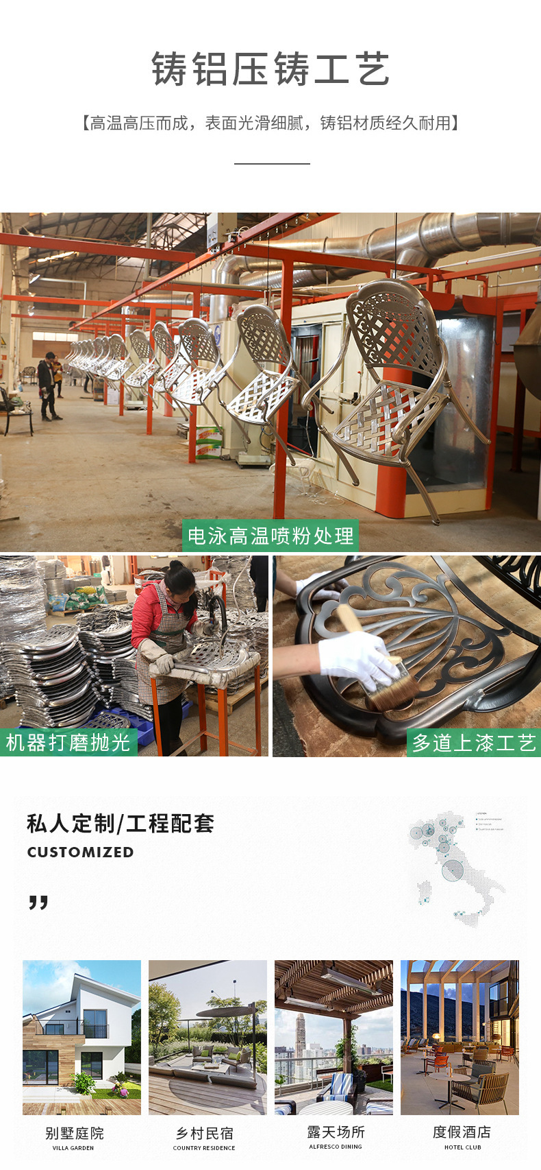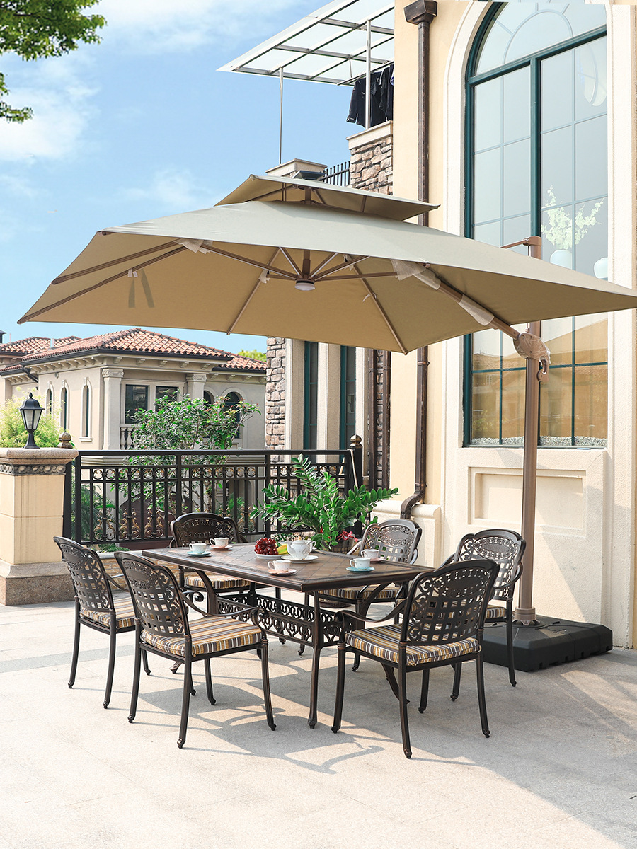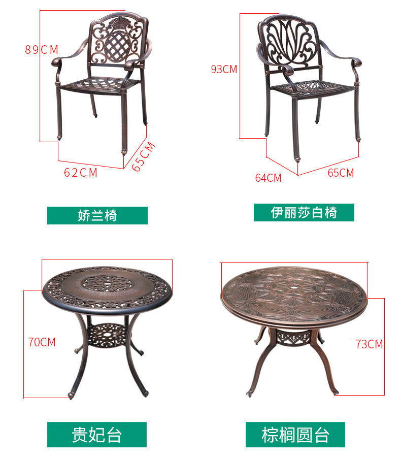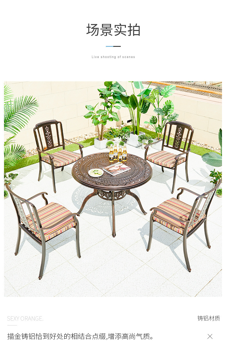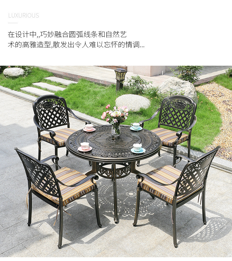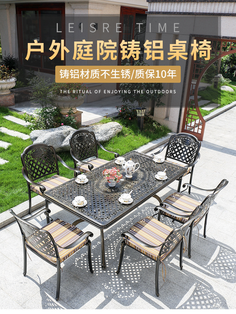 주조 알루미늄 야외 테이블과 의자, 알루미늄 합금 의자, 원형 테이블, 긴 테이블, 식탁과 의자, 빌라 안뜰, 테라스, 정원 야외 가구