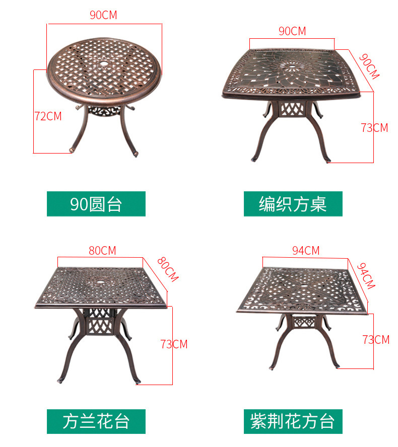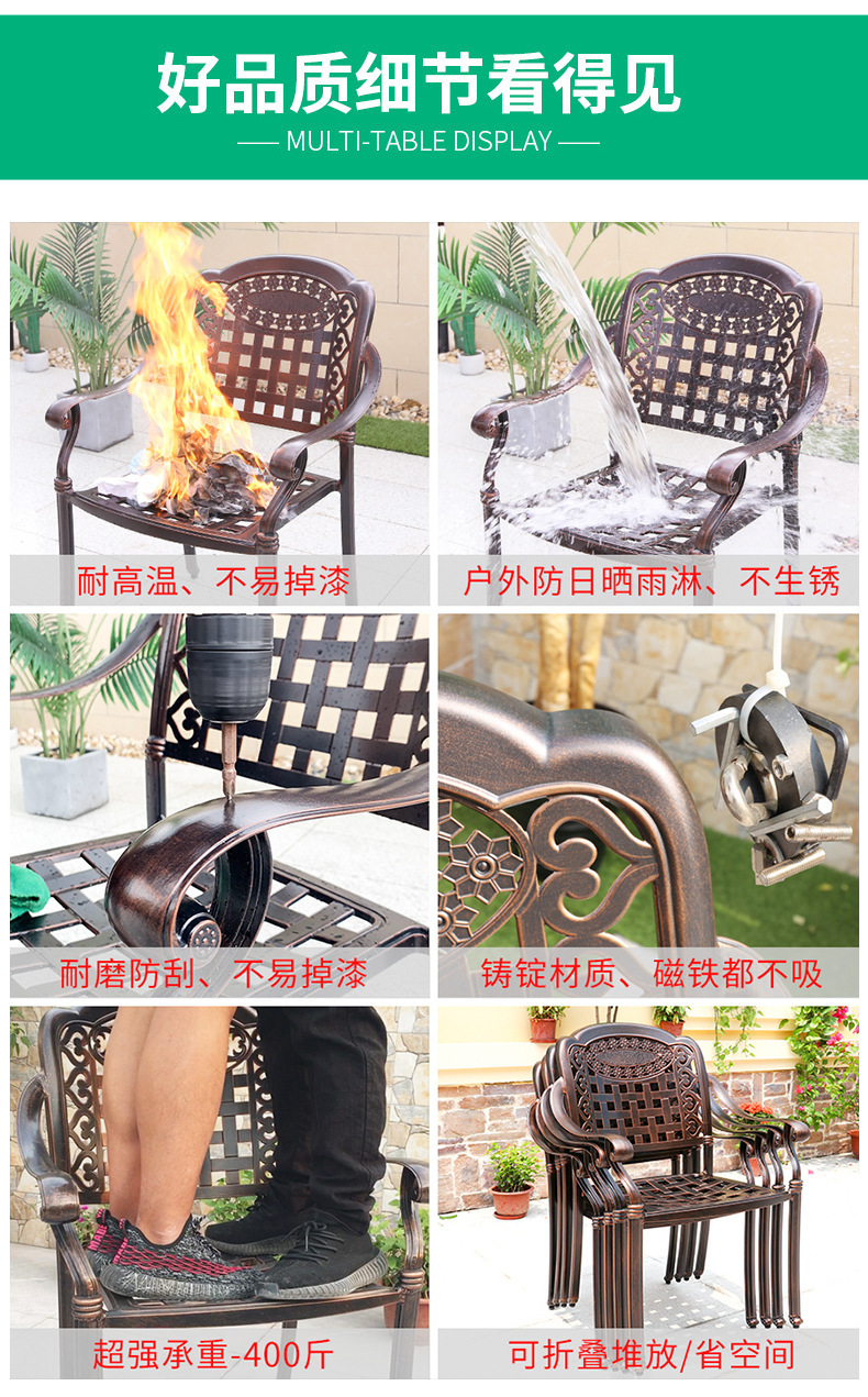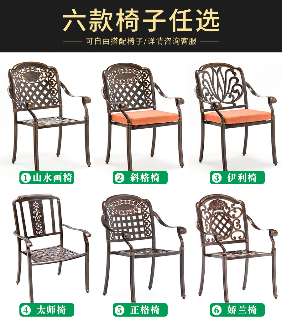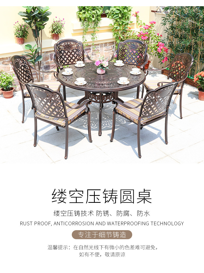 주조 알루미늄 야외 테이블과 의자, 알루미늄 합금 의자, 원형 테이블, 긴 테이블, 식탁과 의자, 빌라 안뜰, 테라스, 정원 야외 가구스토어 가기