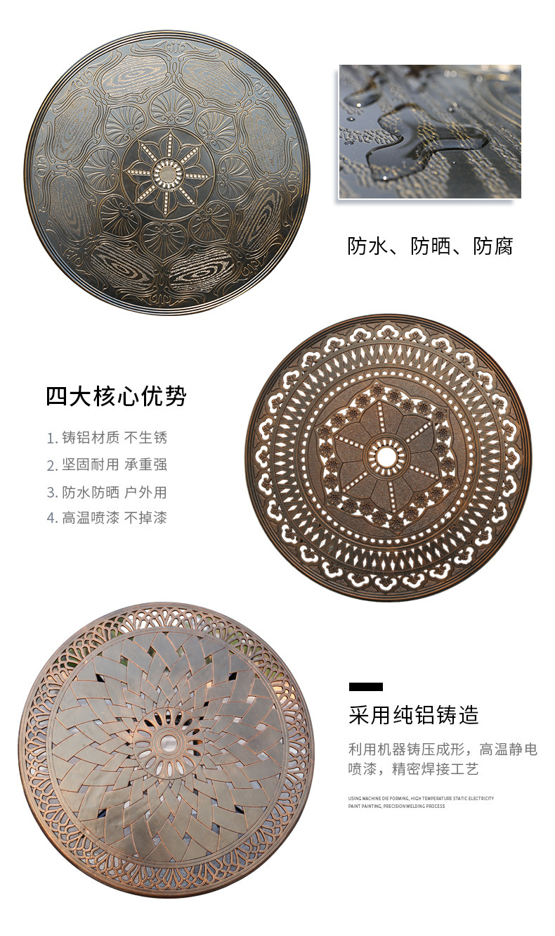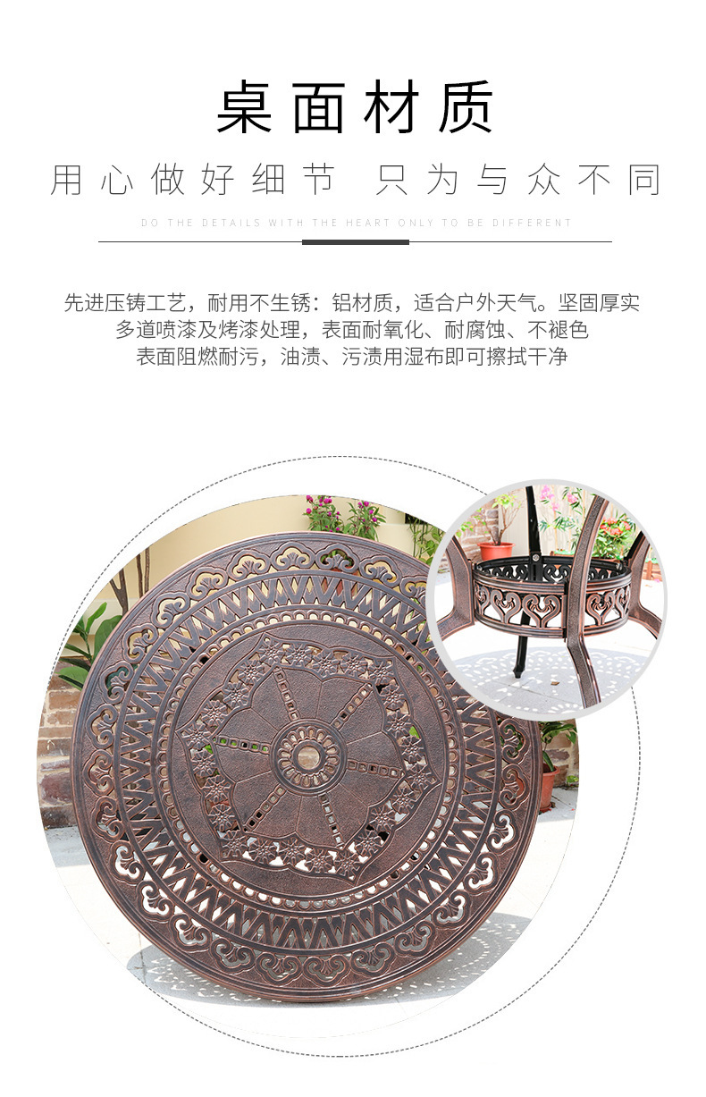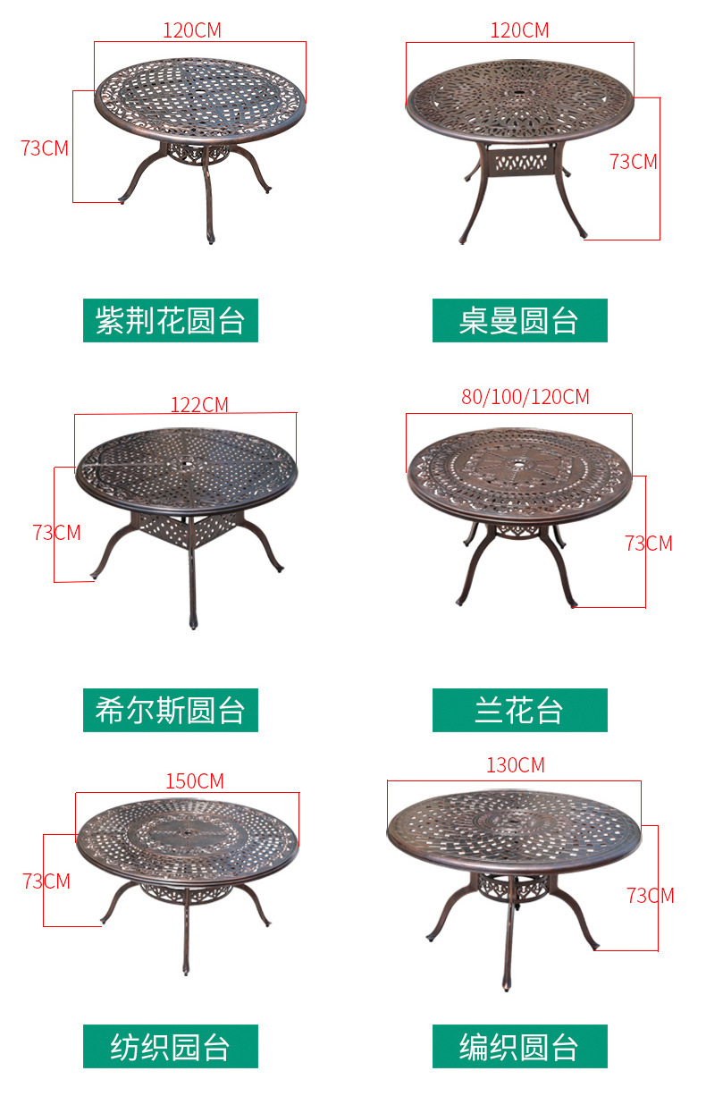 주조 알루미늄 야외 테이블과 의자, 알루미늄 합금 의자, 원형 테이블, 긴 테이블, 식탁과 의자, 빌라 안뜰, 테라스, 정원 야외 가구스토어 가기