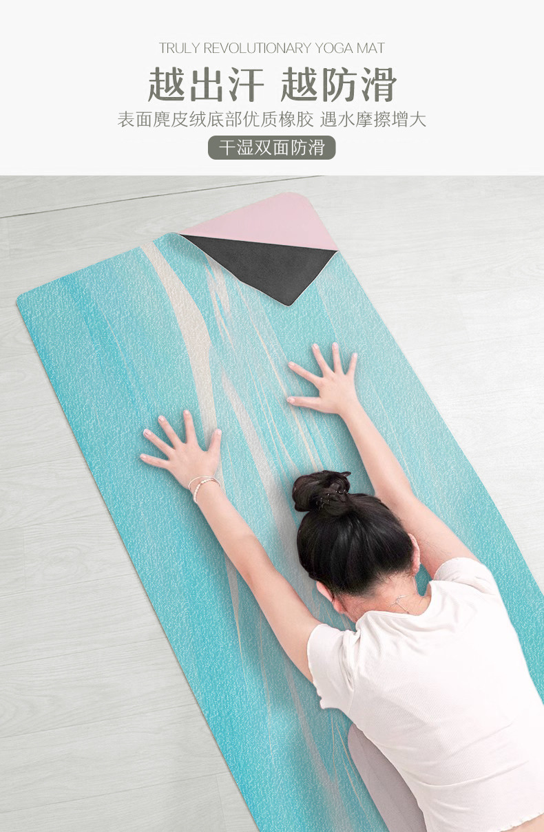 휴대용 소프트 스웨이드 요가 매트를 접는 넓은 미끄럼 방지 땀 흡수성 내구성 가정용 매트 헤어 세대를 지원합니다.