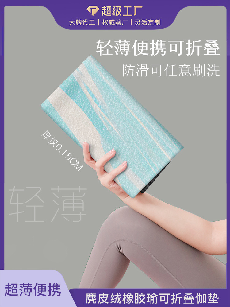 휴대용 소프트 스웨이드 요가 매트를 접는 넓은 미끄럼 방지 땀 흡수성 내구성 가정용 매트 헤어 세대를 지원합니다.스토어 가기