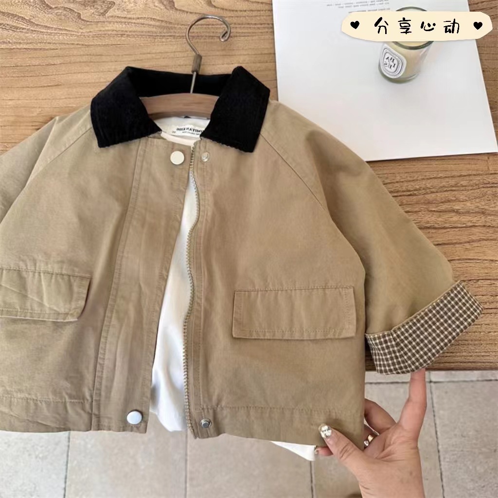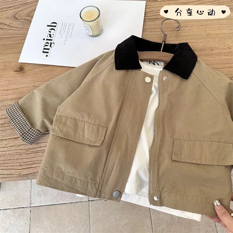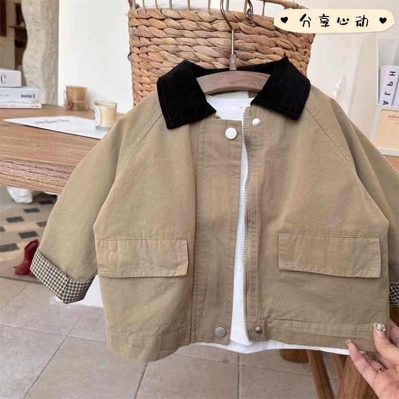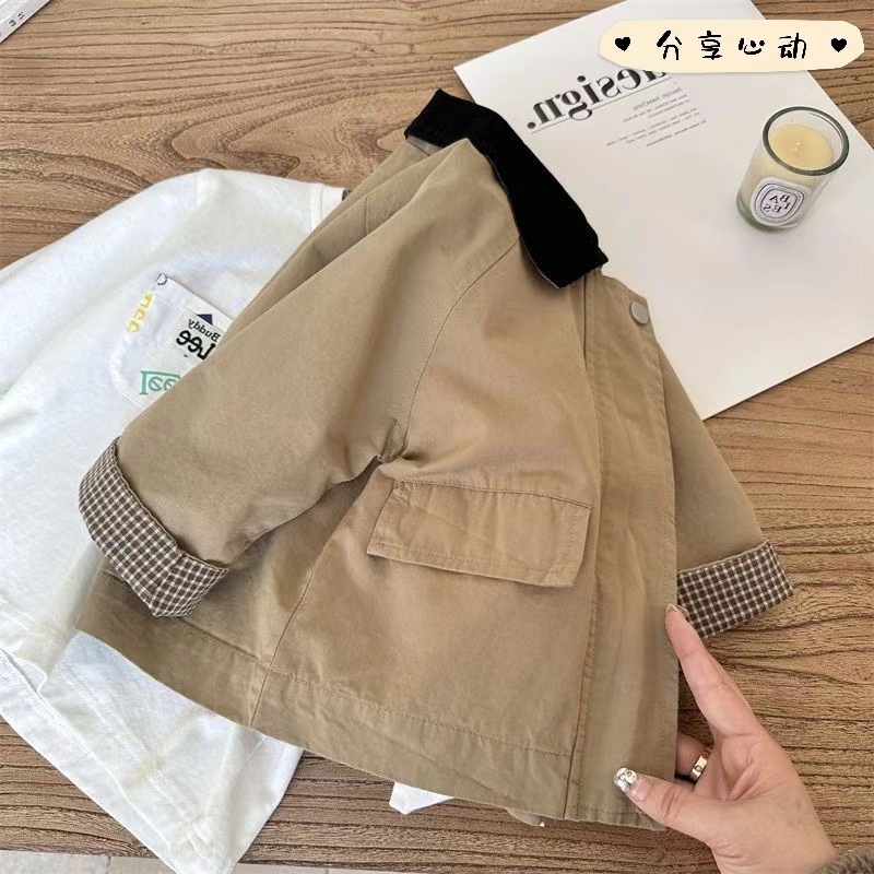 봄 2024 새로운 도착 소년 스티칭 대비 코트 여성과 아기 어린이 코트 간단한 잘 생긴 재킷 트렌디 탑스토어 가기