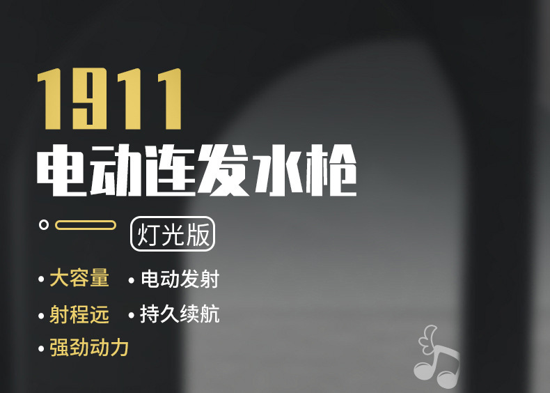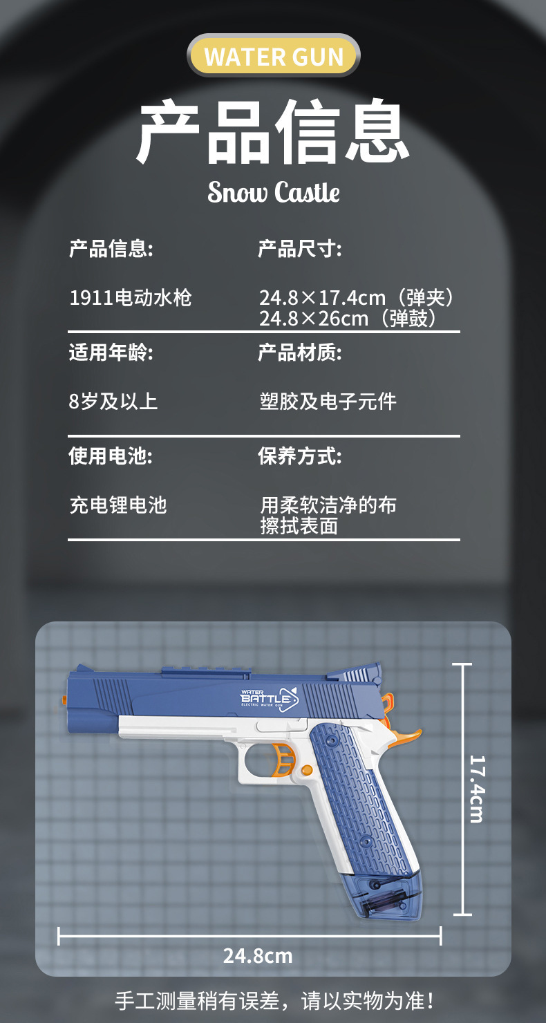 크로스보더 1911 라이트가 있는 전자동 글록 전동 물총, 어린이 물놀이 축제 장난감, 남아용 전동 연사 물총스토어 가기