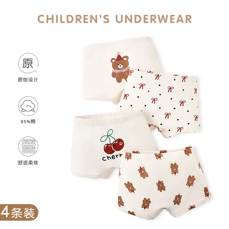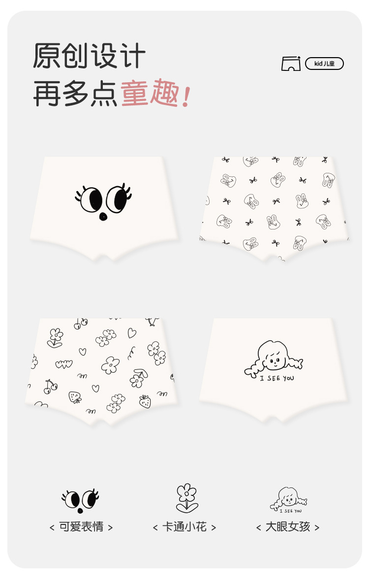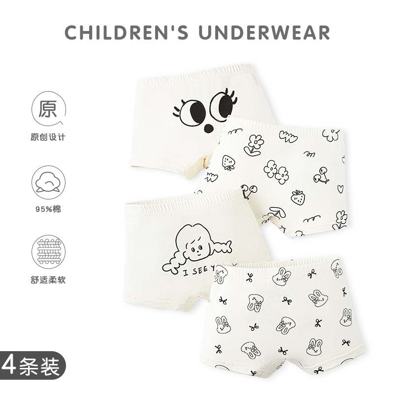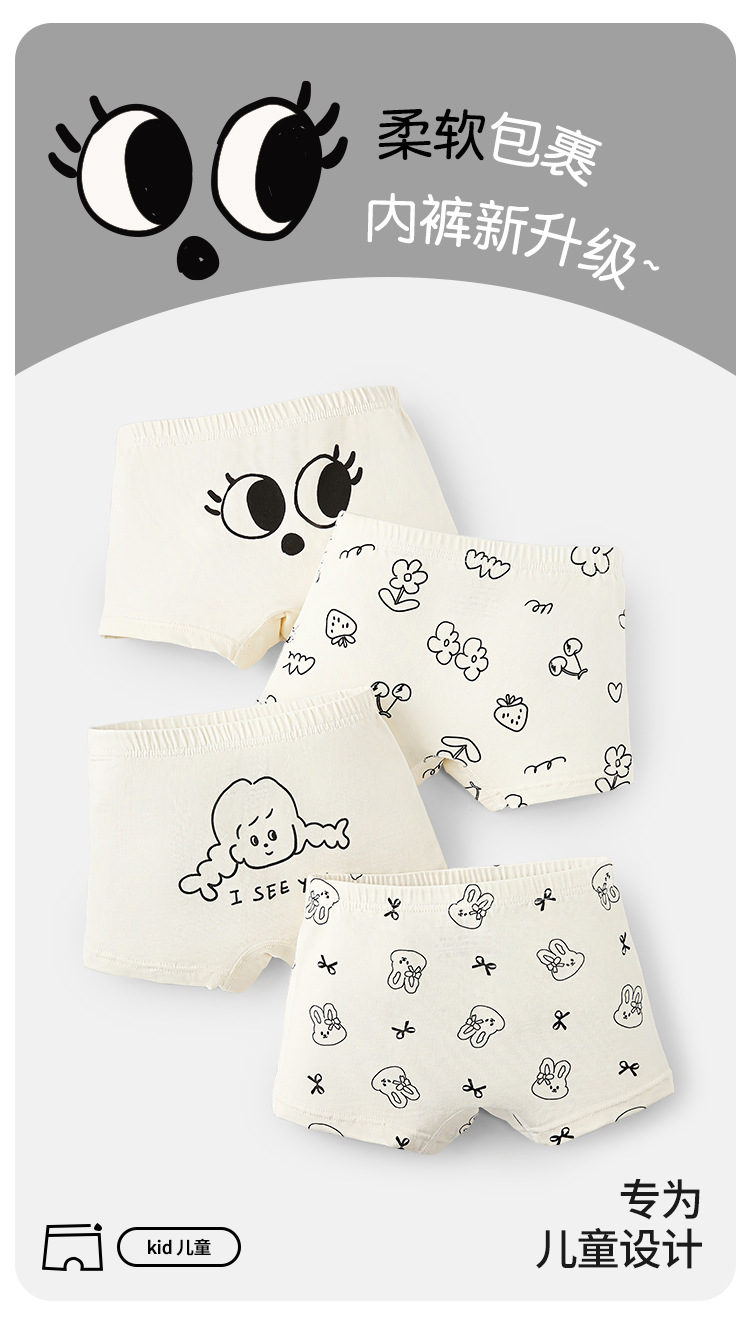 어린이 속옷 클래스 코튼 만화 큰 눈 아기 소녀 속옷 귀여운 클립 PP 흰색 어린이 복서 속옷스토어 가기