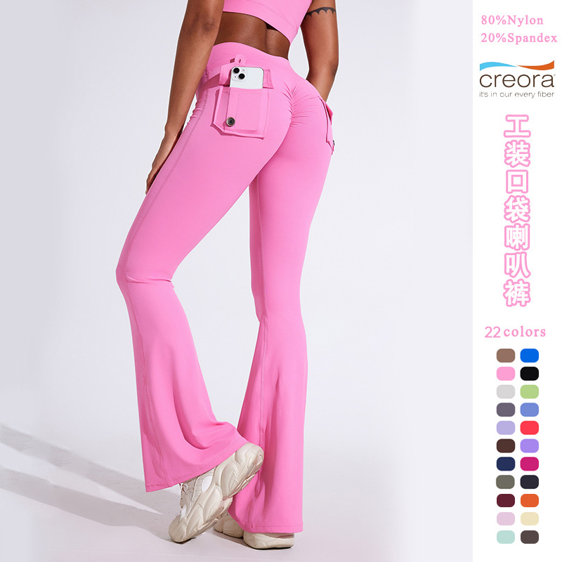 작업복 포켓 요가 바지 여성용 복숭아 요가 벨 바지 힙합 스포츠 타이트 바지 피트니스 바지 마이크로 요가 옷스토어 가기