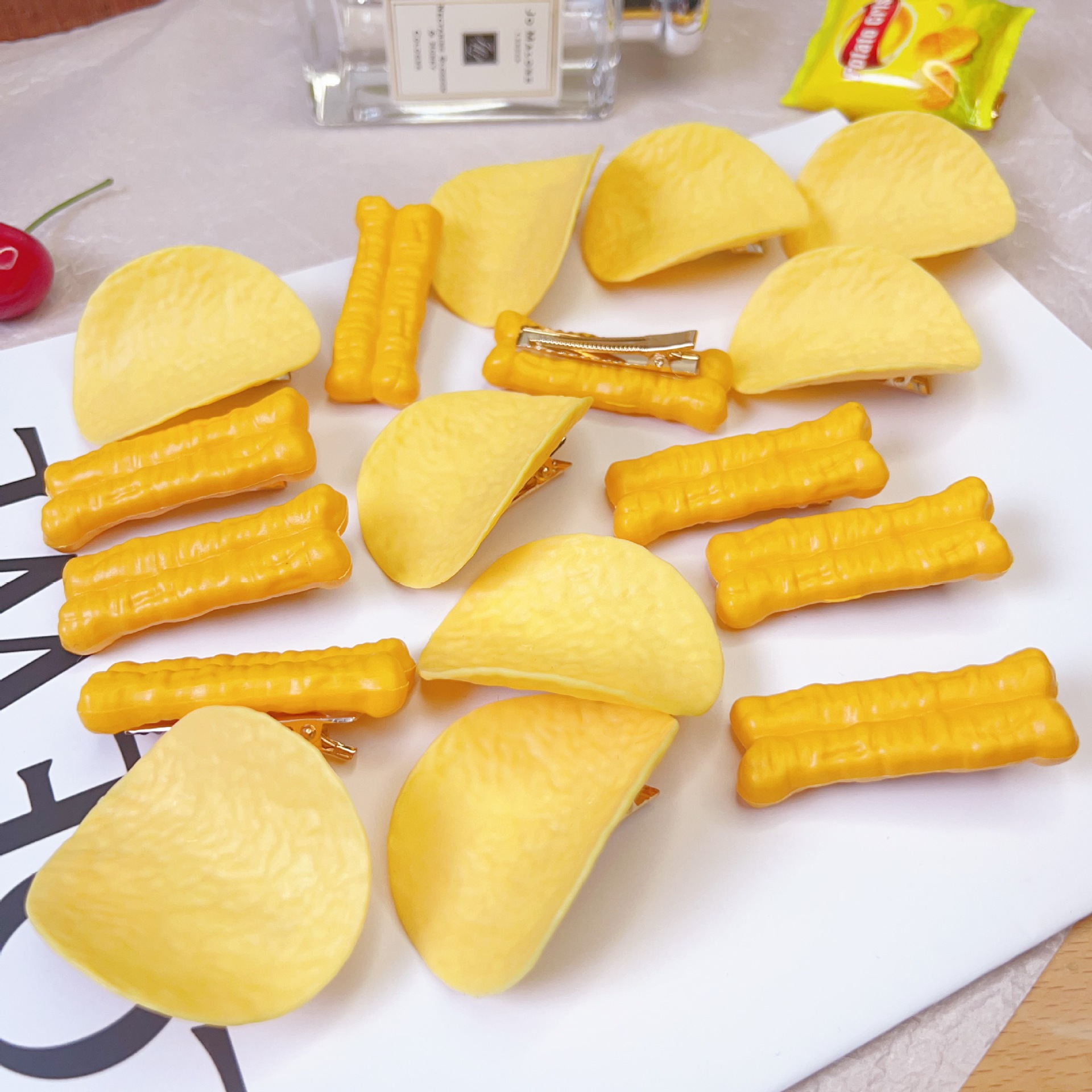 시뮬레이션 감자칩 머리핀 인스 만화 헤어 액세서리 귀여운 소녀 학생용 오리주둥이 모양 창의적인 도매 재미있는 장식