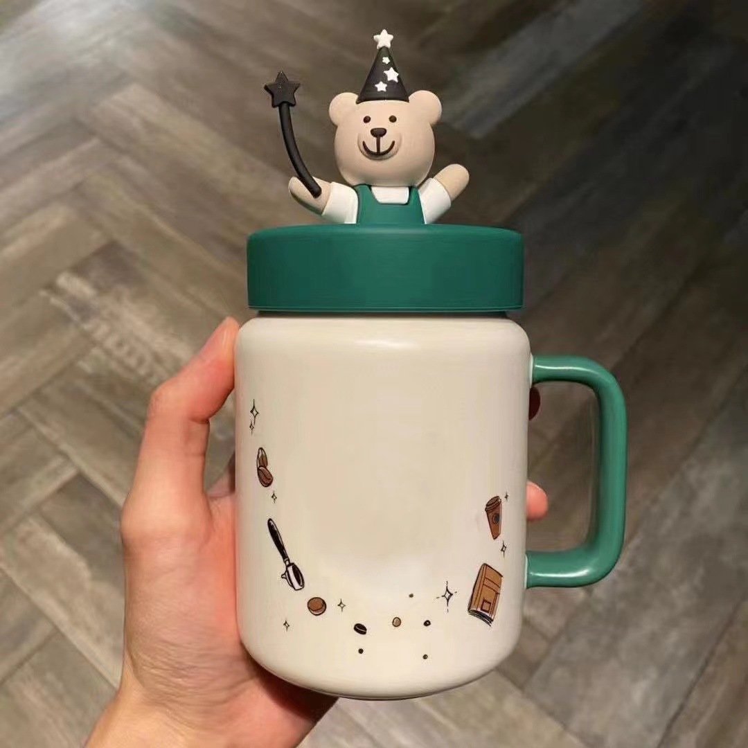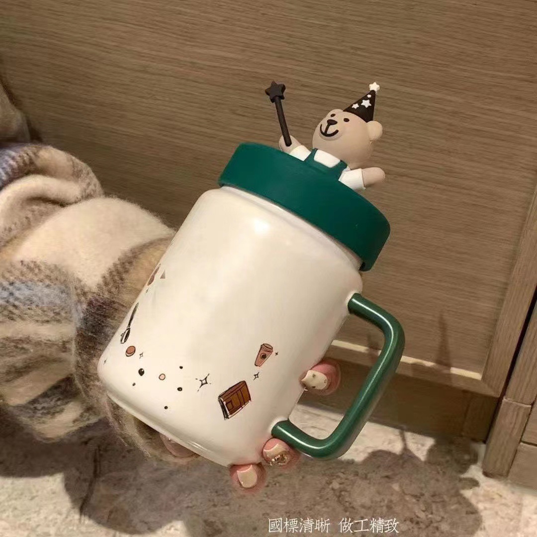 스타 아빠 메이슨 베어 머그컵 뚜껑 포함 대용량 귀여운 머그컵 세라믹 만화 커플 워터 컵