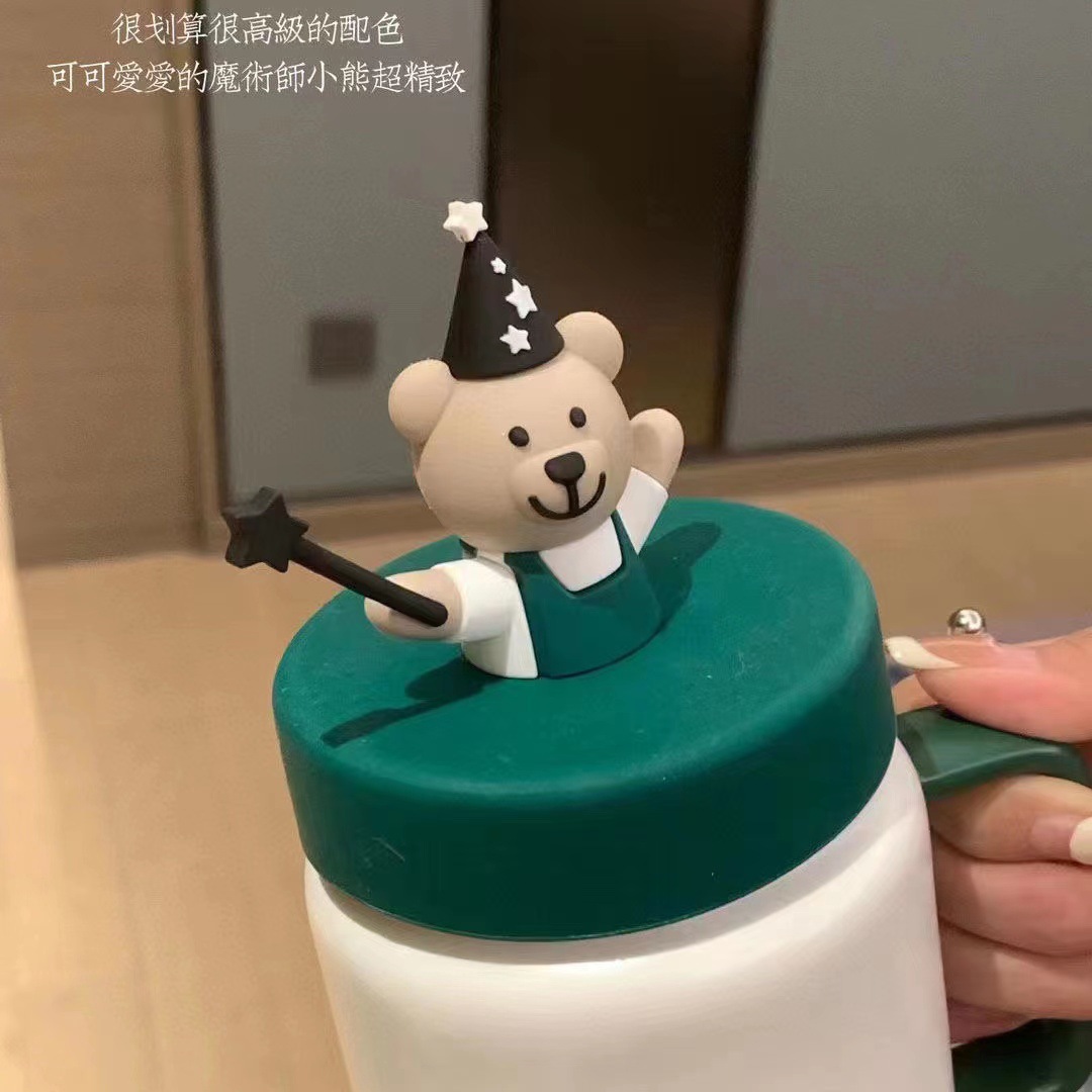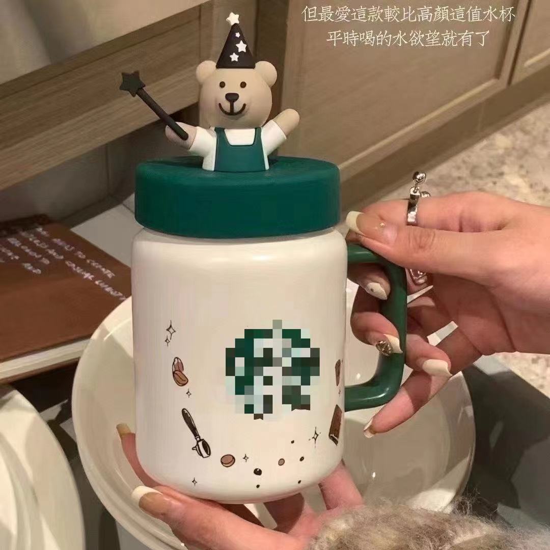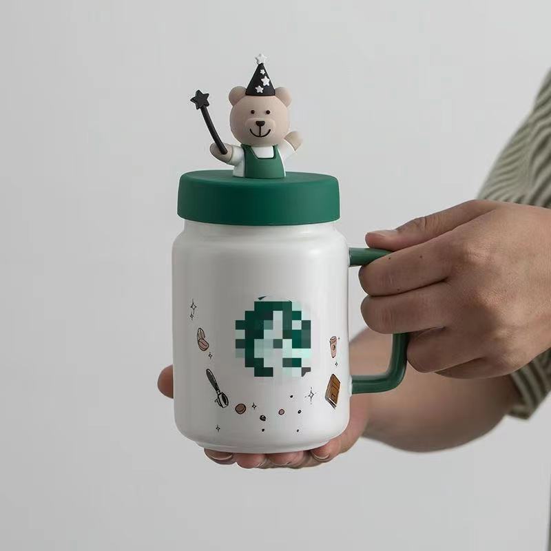 스타 아빠 메이슨 베어 머그컵 뚜껑 포함 대용량 귀여운 머그컵 세라믹 만화 커플 워터 컵스토어 가기