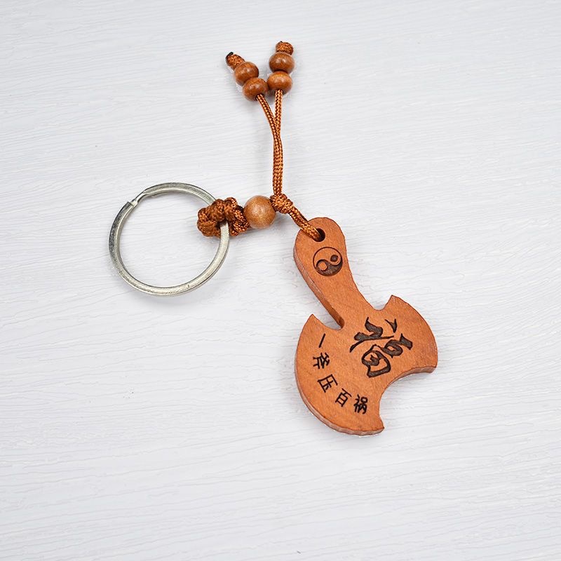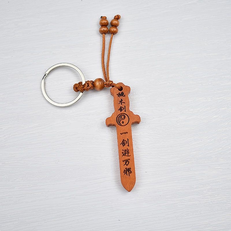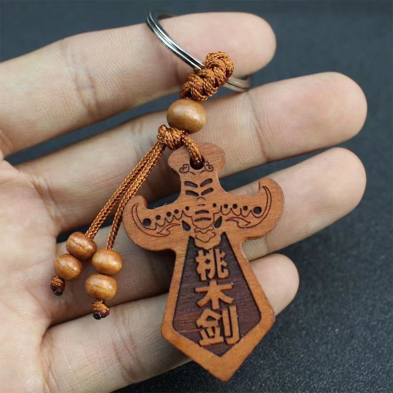 장후 공정한 사원 공정한 복숭아 나무 열쇠 고리 펜던트를 실행하는 도매 긴 검 짧은 검 도끼 자동차 펜던트 스톨 공급스토어 가기