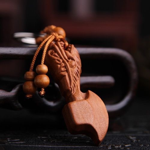 장후 공정한 사원 공정한 복숭아 나무 열쇠 고리 펜던트를 실행하는 도매 긴 검 짧은 검 도끼 자동차 펜던트 스톨 공급