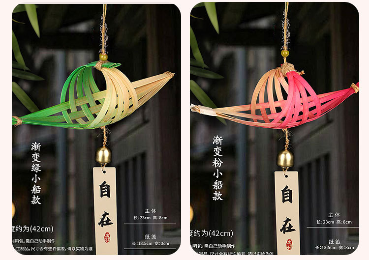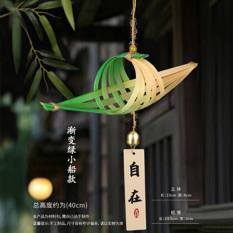 • 그라데이션 녹색 보트 스타일 바람 차임 소재 패키지