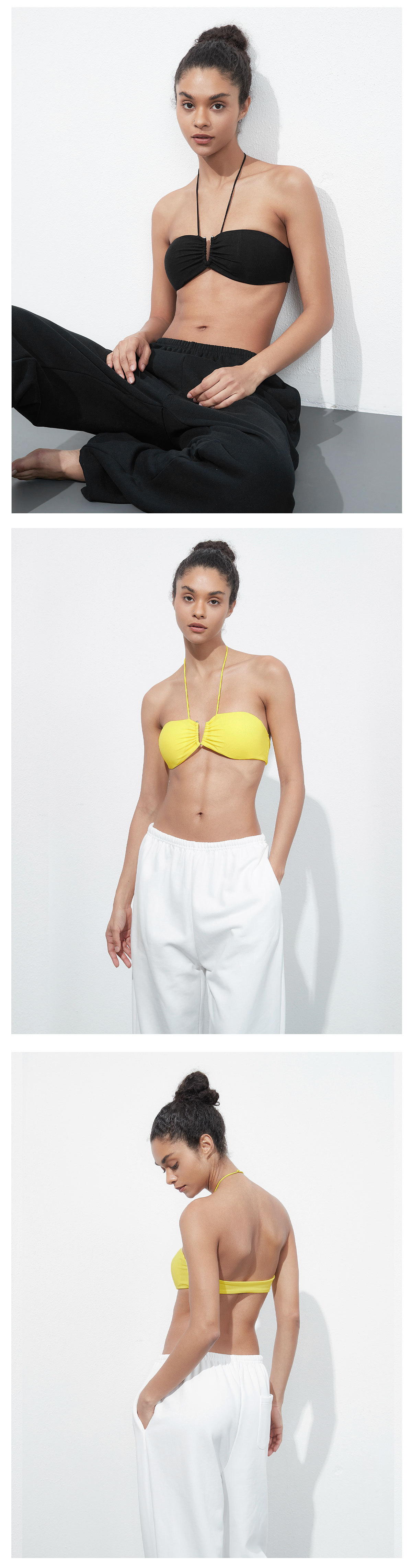 617 해변 도파민 착용 얇은 스트랩 홀터 탑 짧은 풀오버 핫 소녀 패션 휴가 스타일 아름다운 뒤