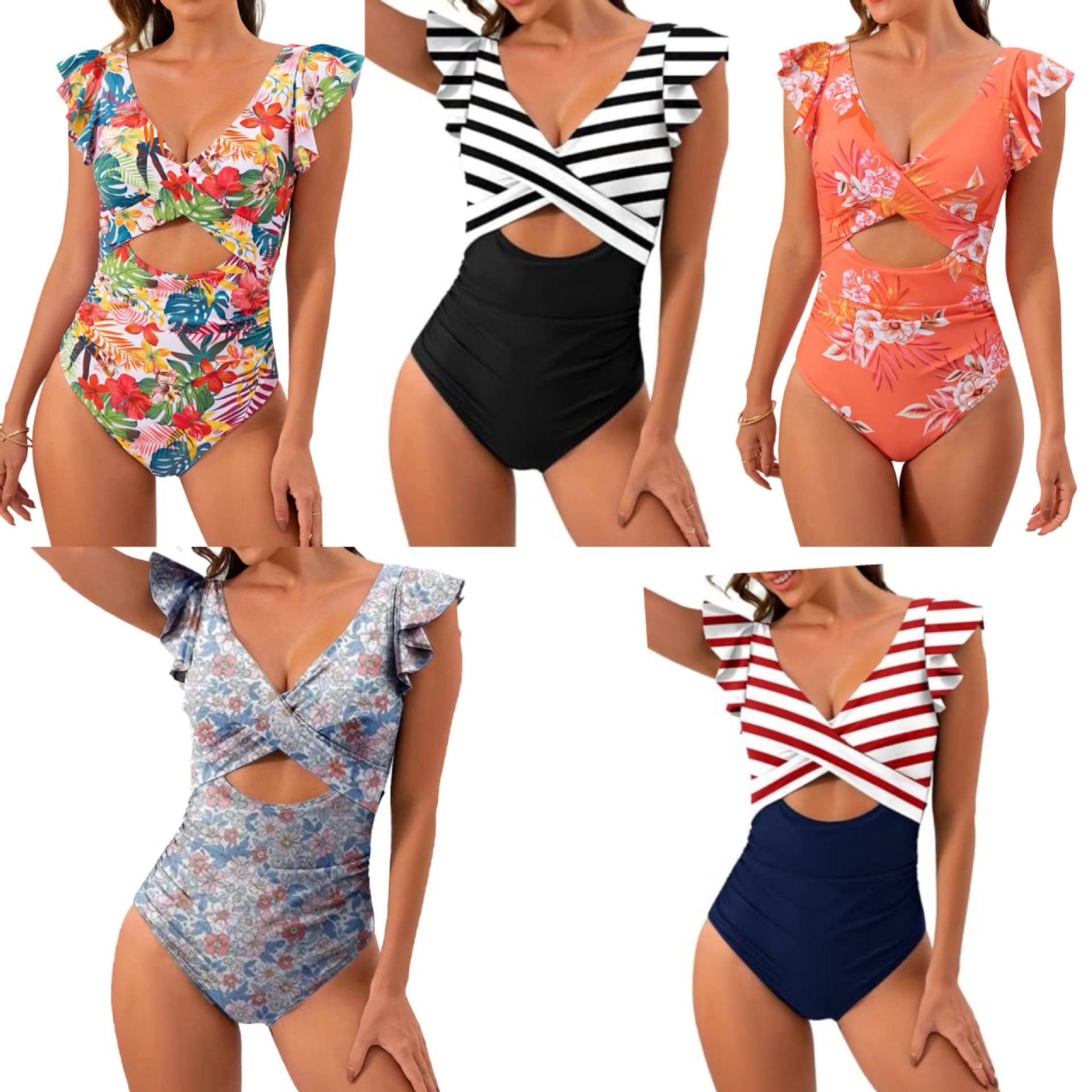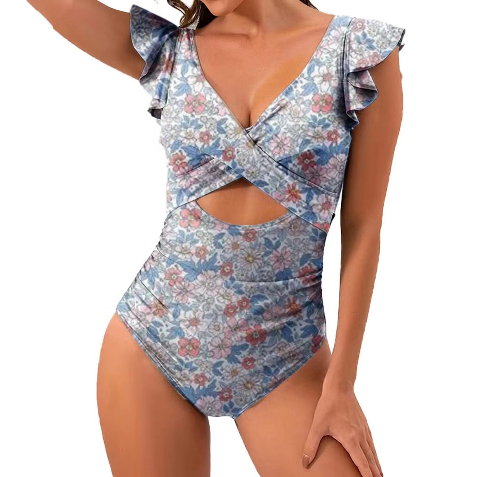 2024 아마존 수영복 배를 가려주는 슬림핏 원피스 크로스온디자인 온천용 러플 디테일 수출용 비키니 섹시한 원피스