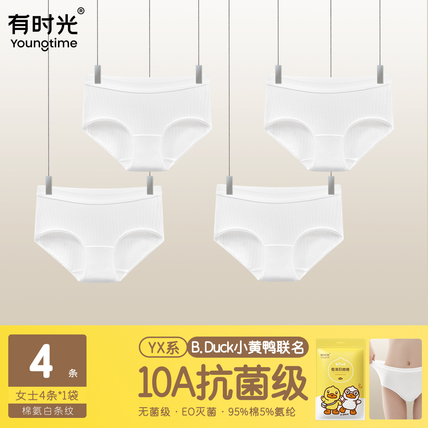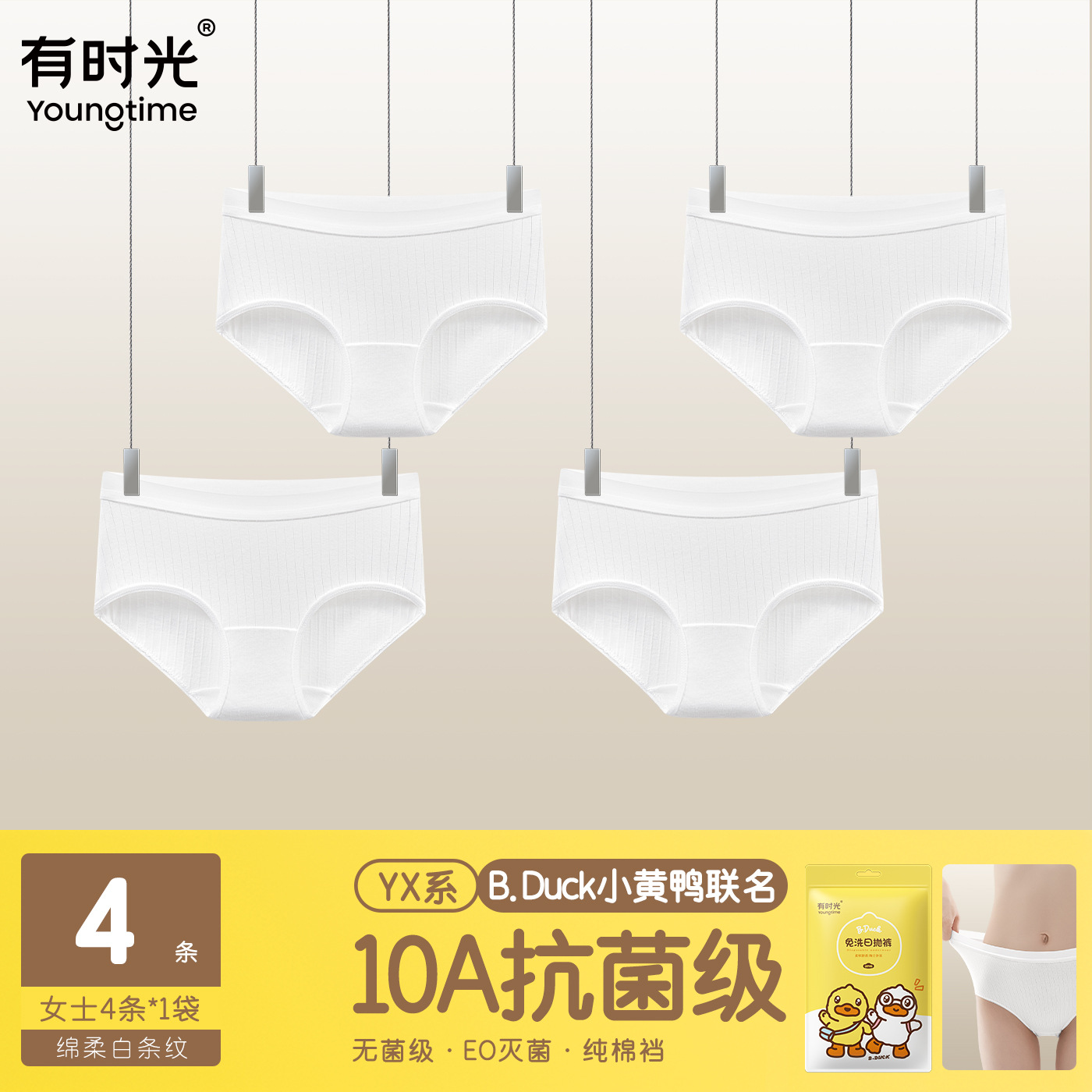 • 면 스판 넓은 힙 스트라이프 [BD 콜라보 10A 항균] 여성용 화이트 포장 4매입