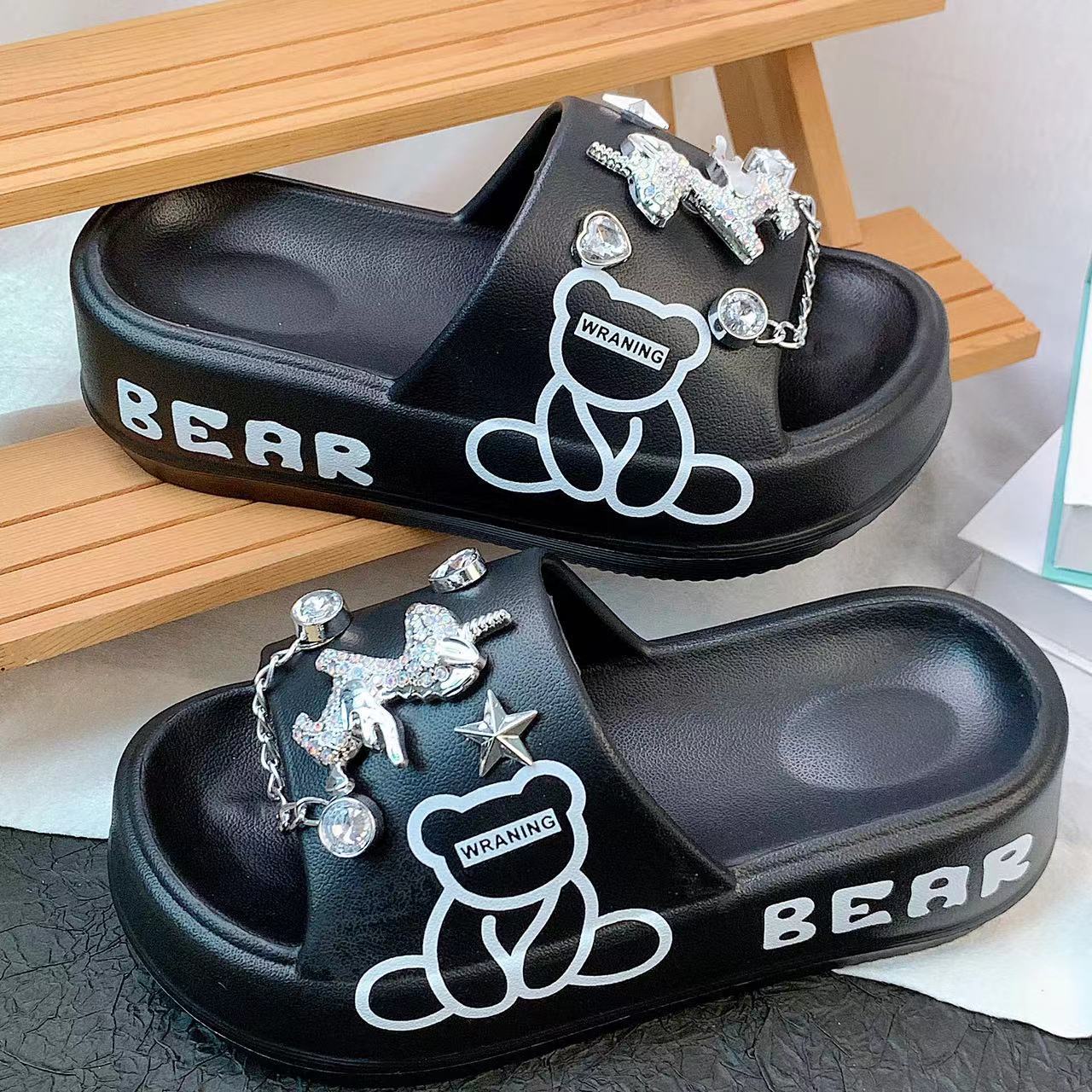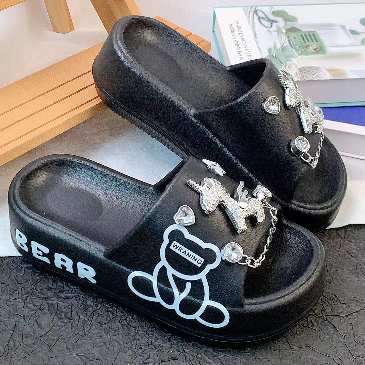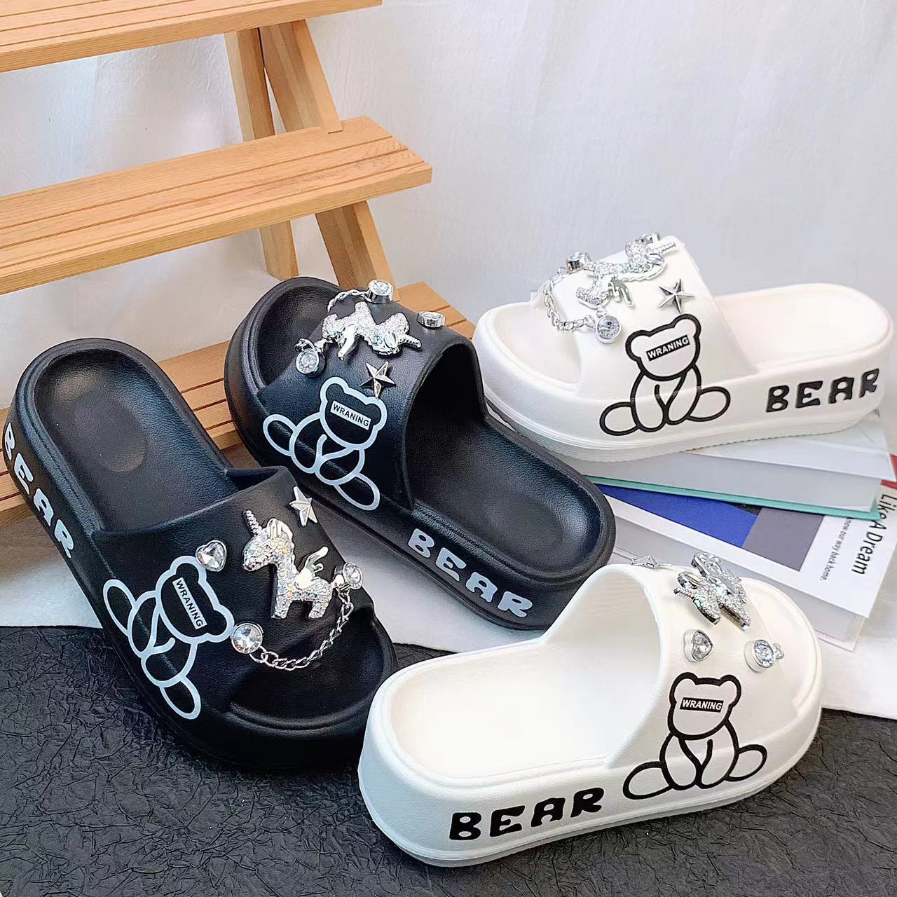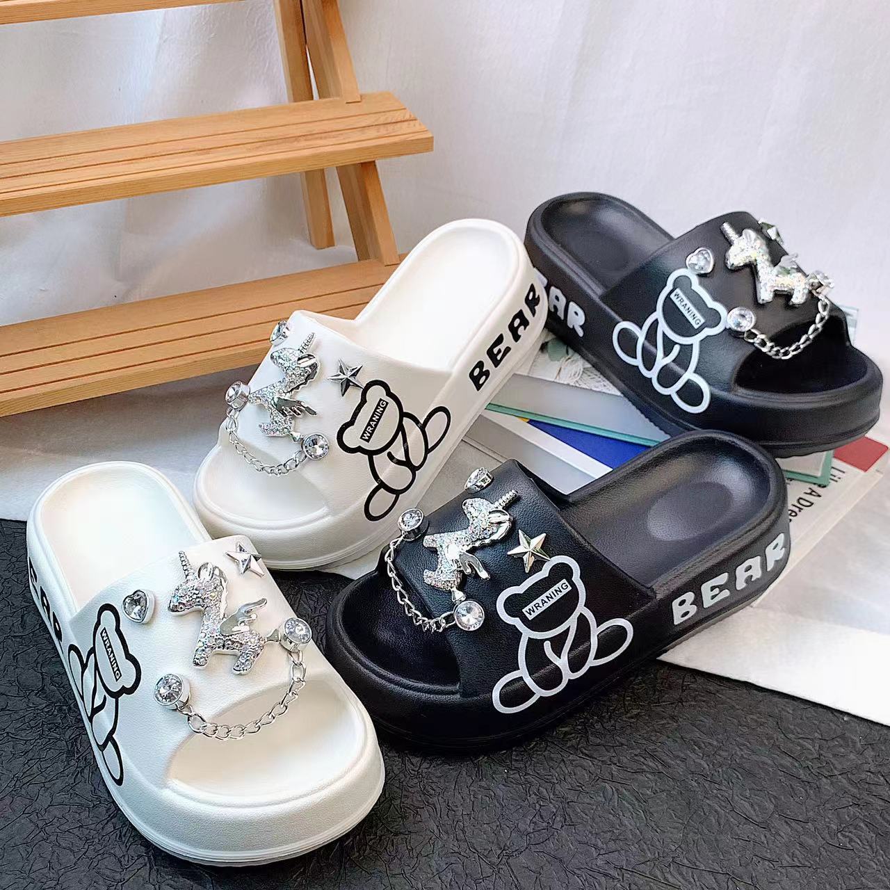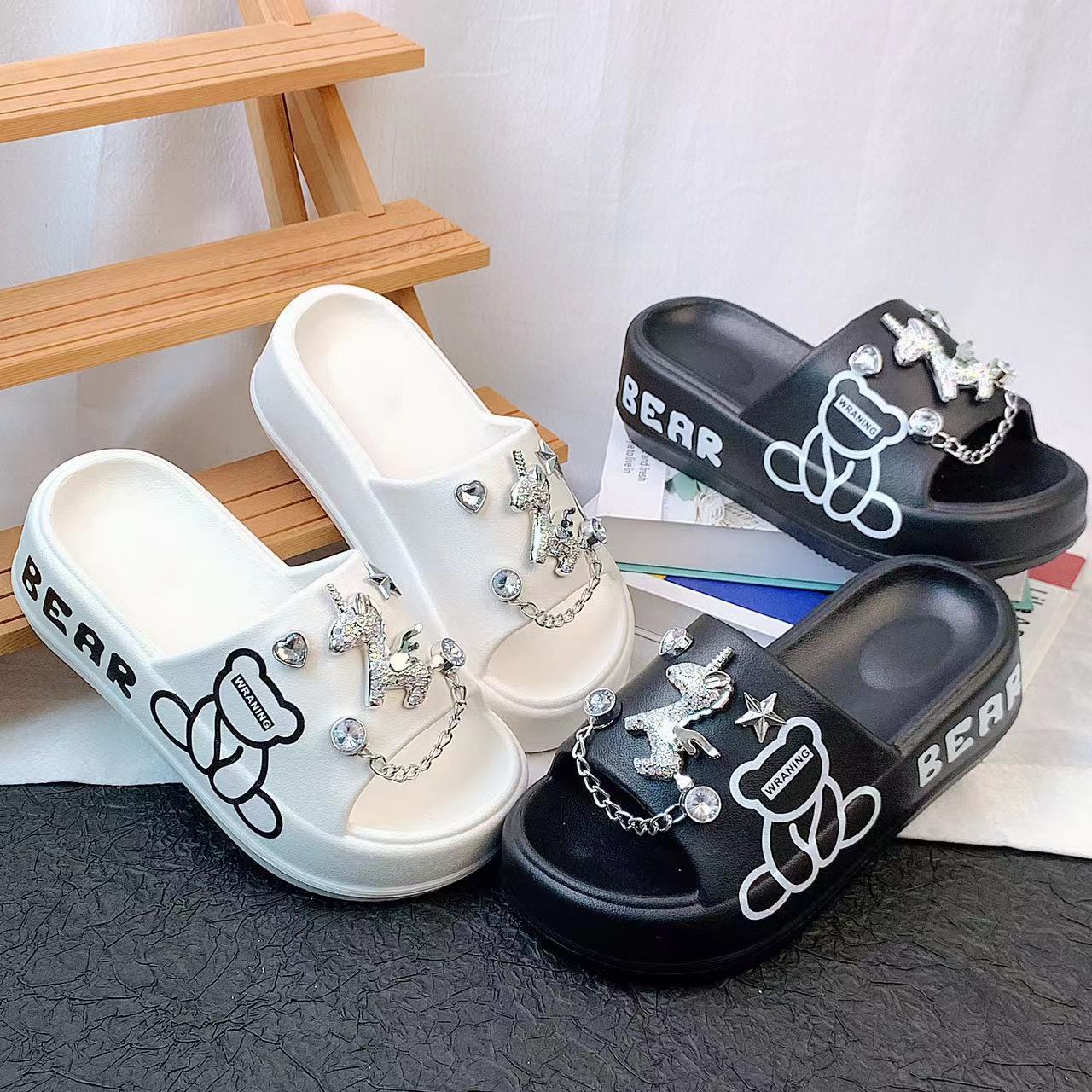 2024 두꺼운 밑창 에바 슬리퍼 여름용 귀여운 컬러풀한 크리스탈 말 모양 비치 샌들 ins스토어 가기