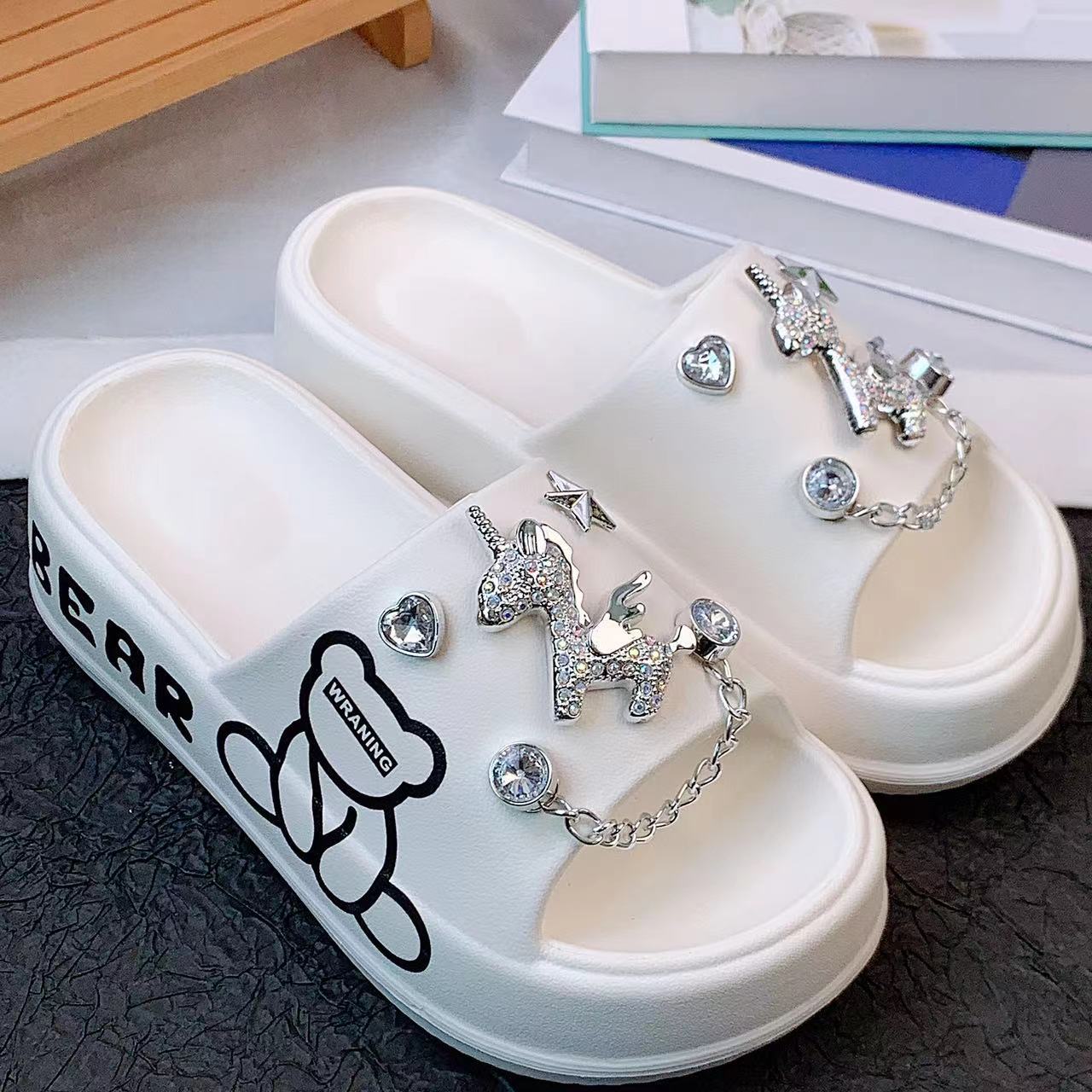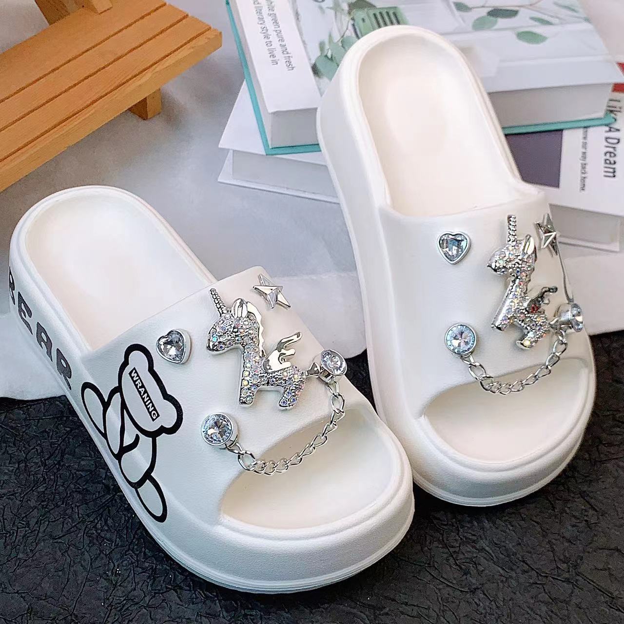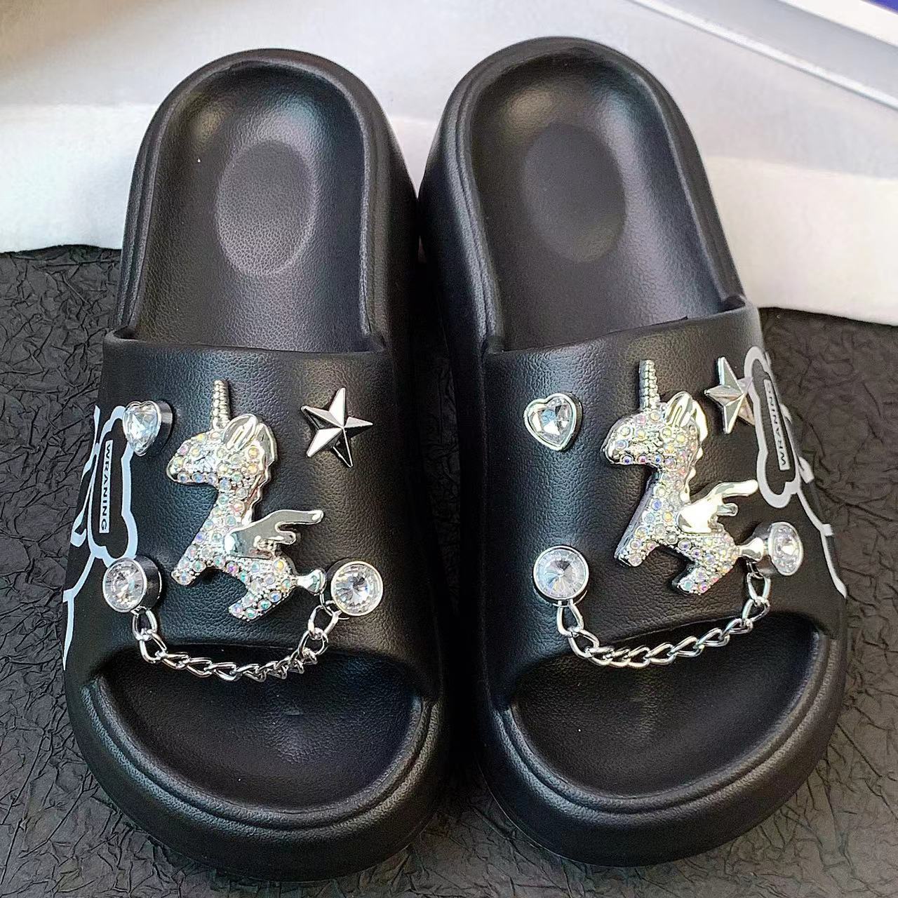 2024 두꺼운 밑창 에바 슬리퍼 여름용 귀여운 컬러풀한 크리스탈 말 모양 비치 샌들 ins