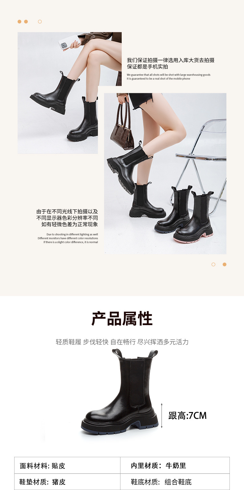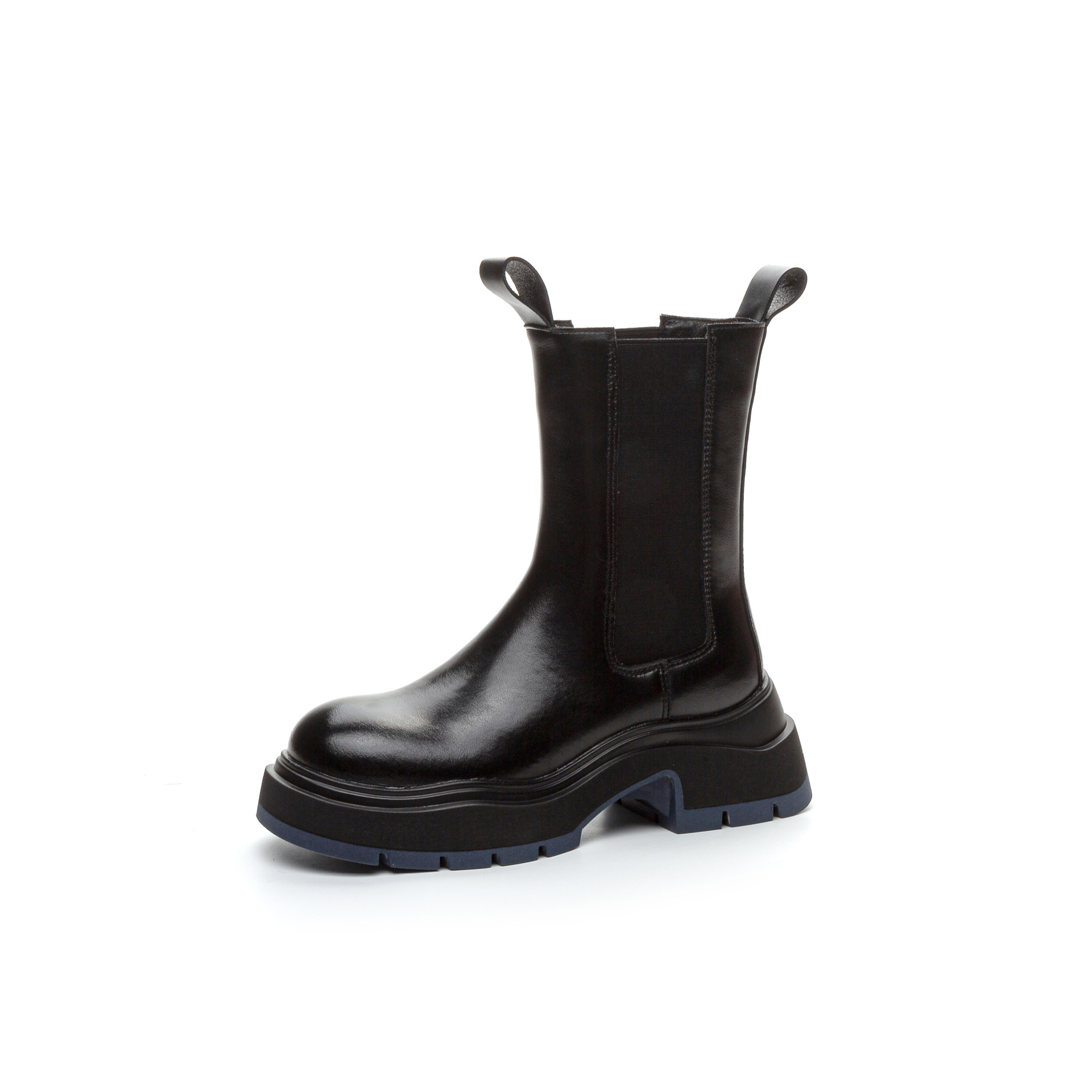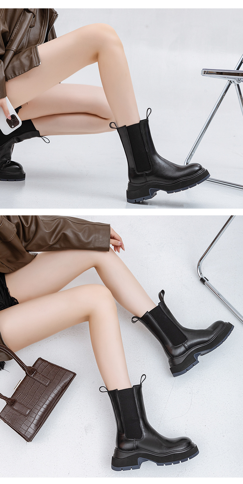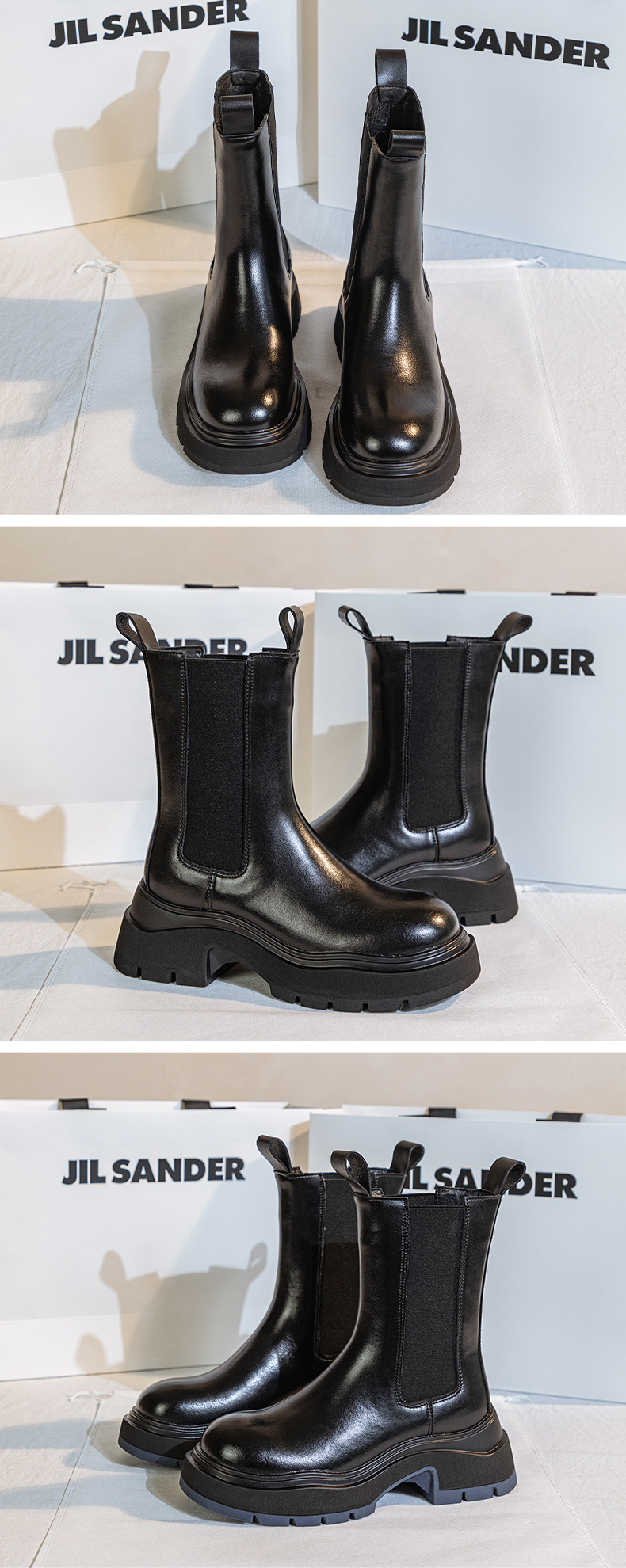 정품 가죽 두꺼운 밑창 증가 BV 마틴 부츠 가을, 겨울 새로운 라운드 발가락 블랙 부츠 여성을위한 유행과 편안한 굴뚝 부츠