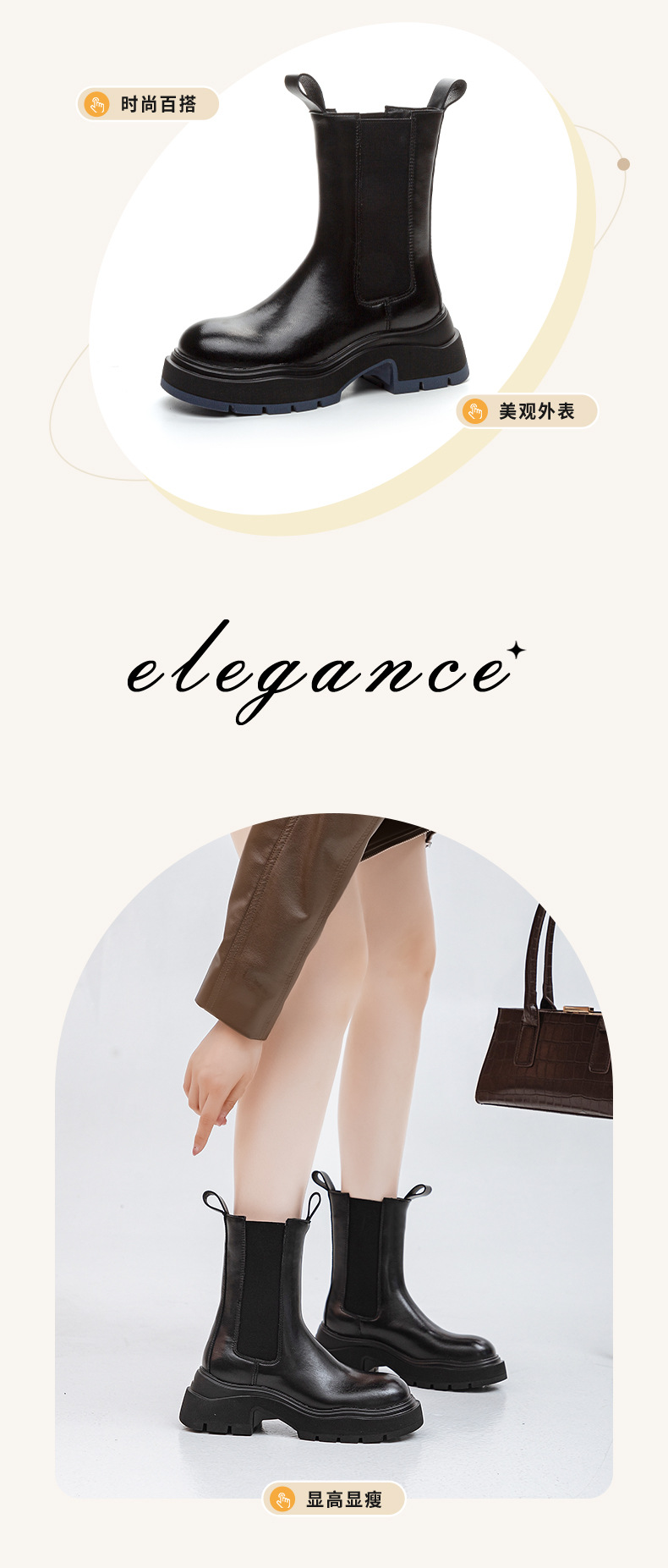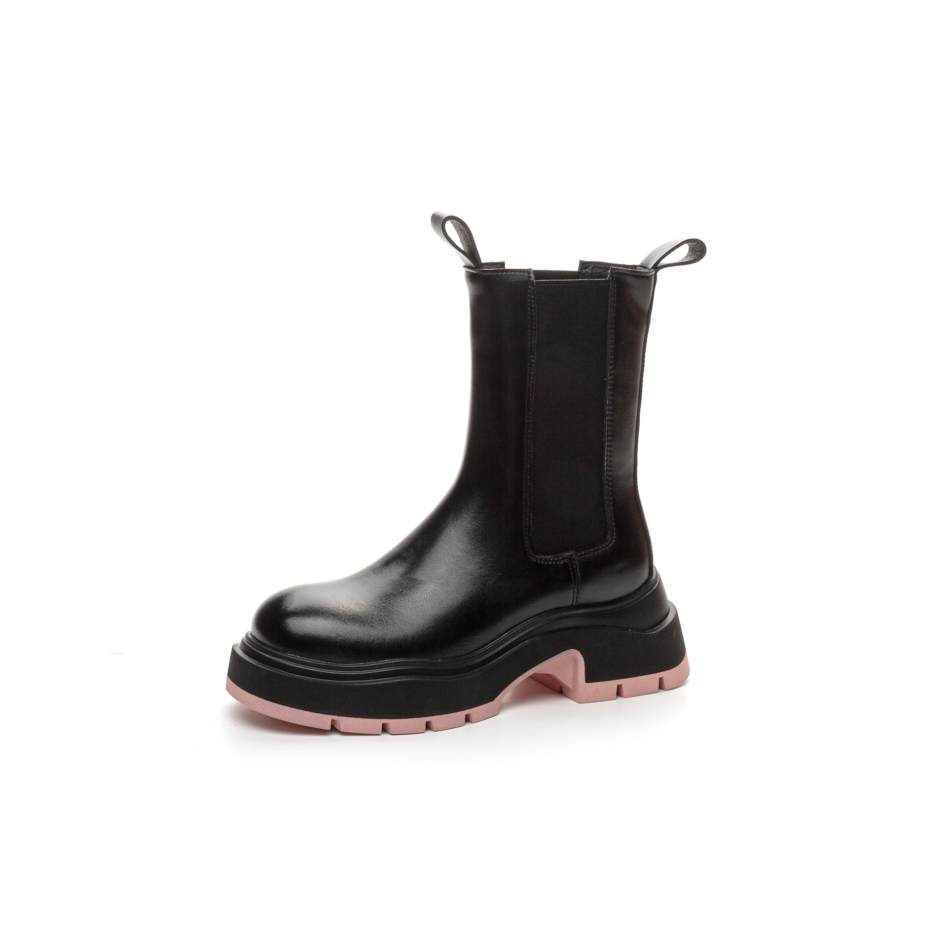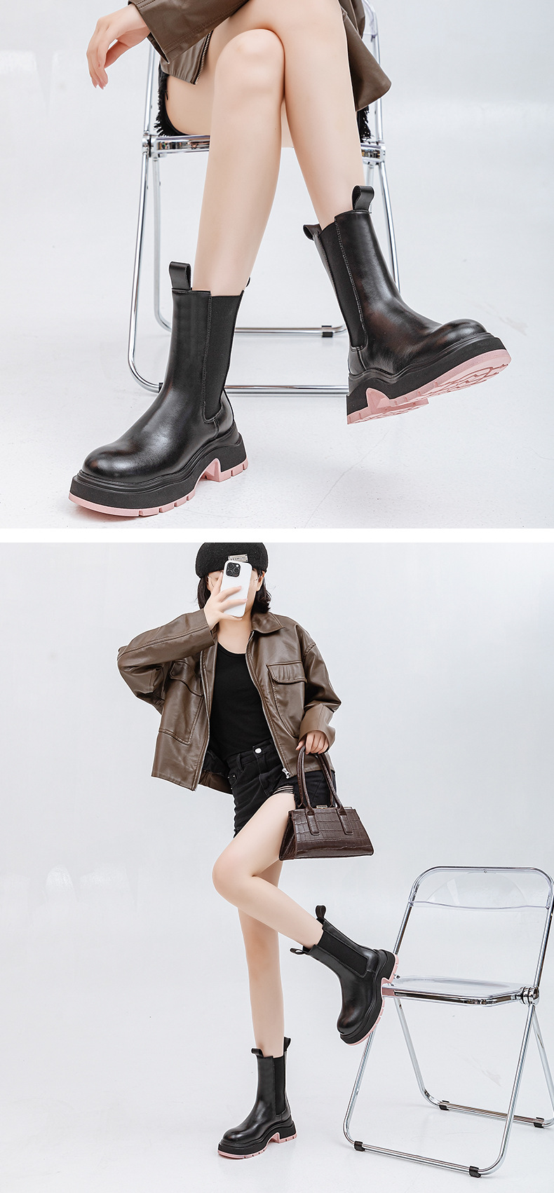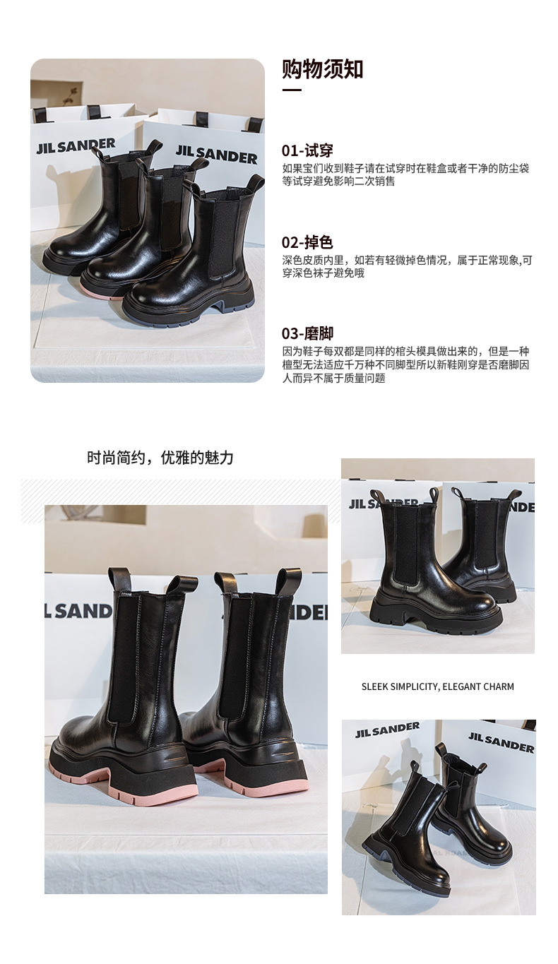 정품 가죽 두꺼운 밑창 증가 BV 마틴 부츠 가을, 겨울 새로운 라운드 발가락 블랙 부츠 여성을위한 유행과 편안한 굴뚝 부츠