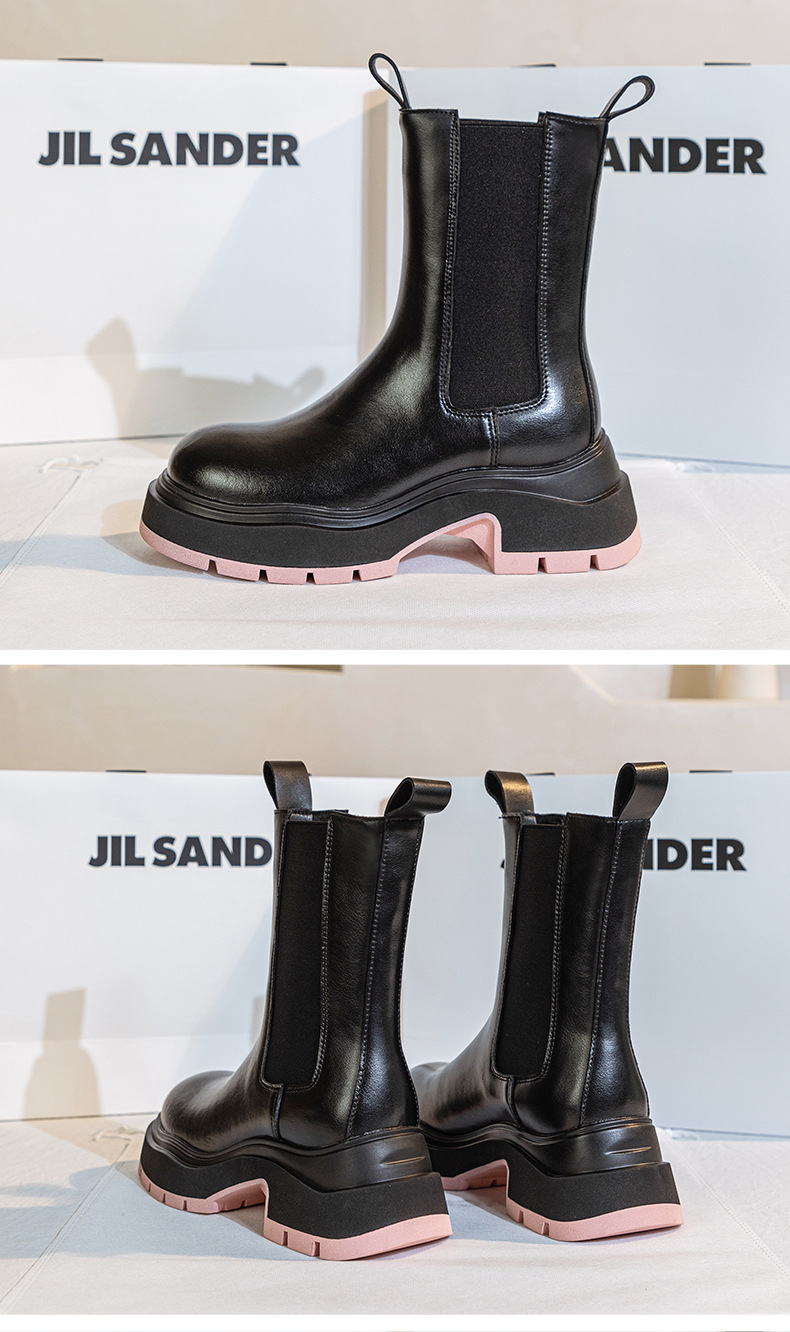 정품 가죽 두꺼운 밑창 증가 BV 마틴 부츠 가을, 겨울 새로운 라운드 발가락 블랙 부츠 여성을위한 유행과 편안한 굴뚝 부츠스토어 가기