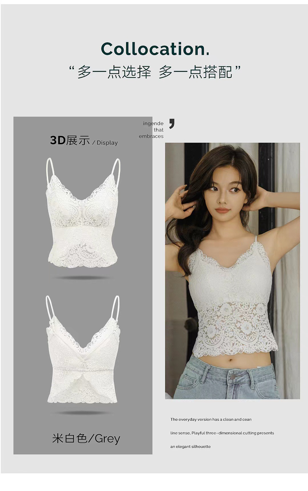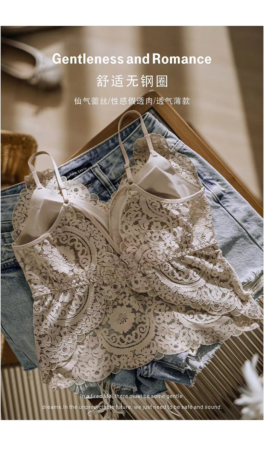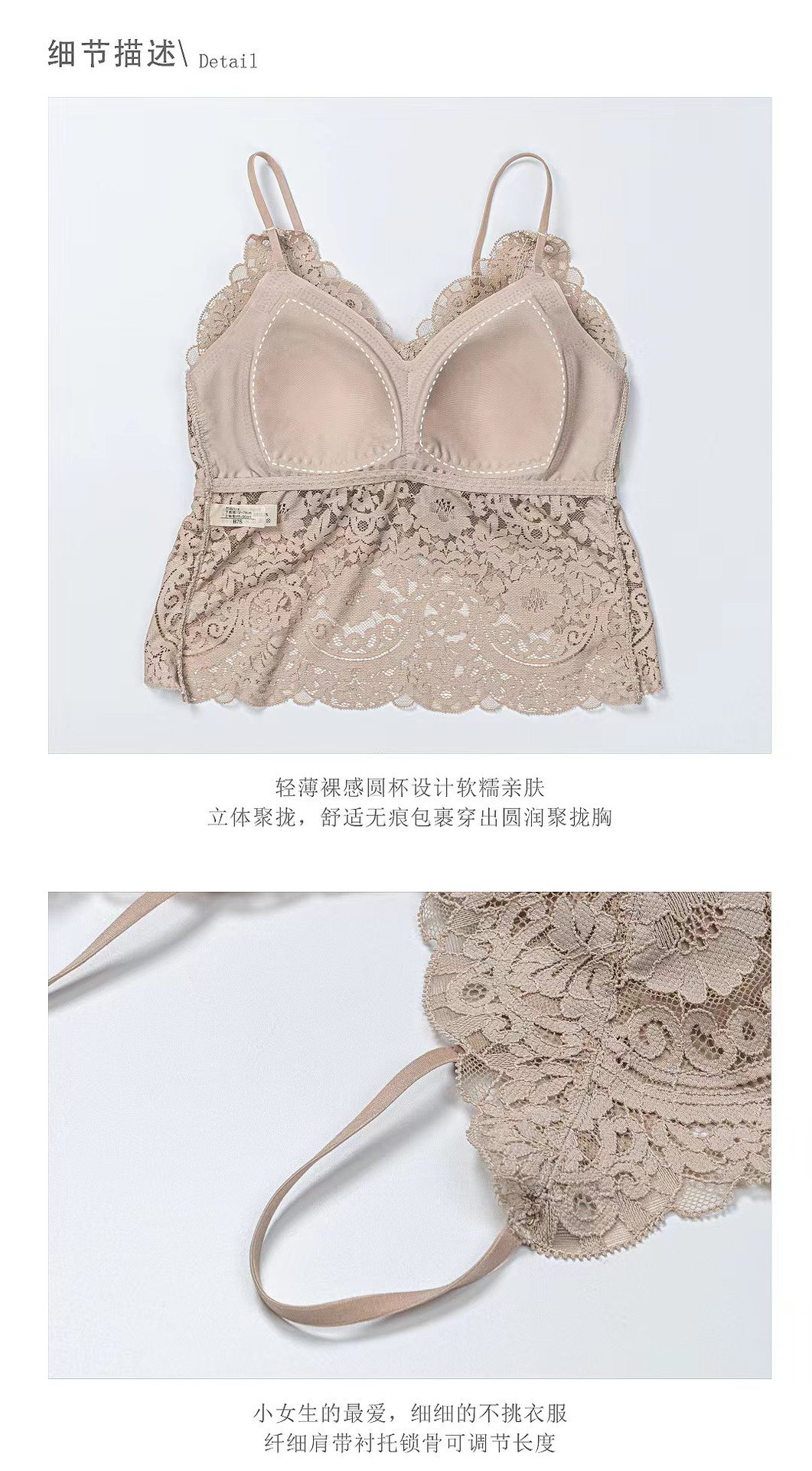 새로운 프랑스 스타일 레이스 아름다운 뒤 속옷 여성용 브래지어 패드 내부 원피스 베이스 조끼 브래지어