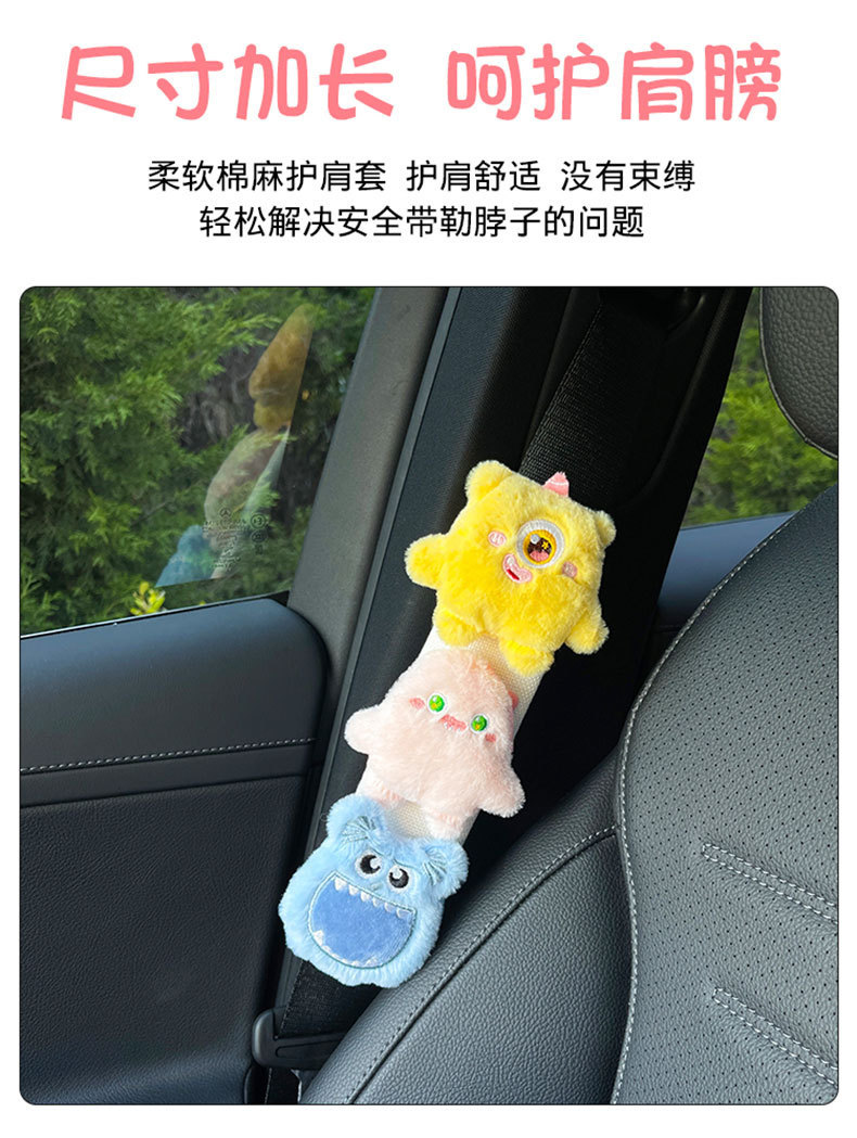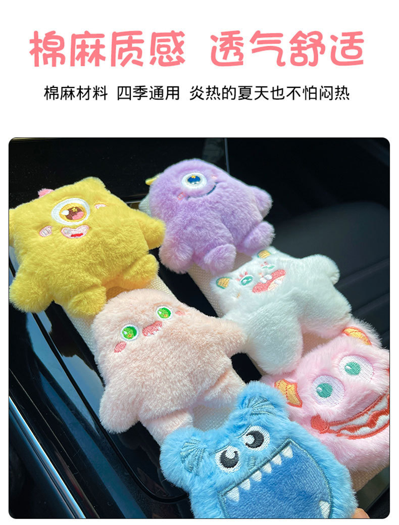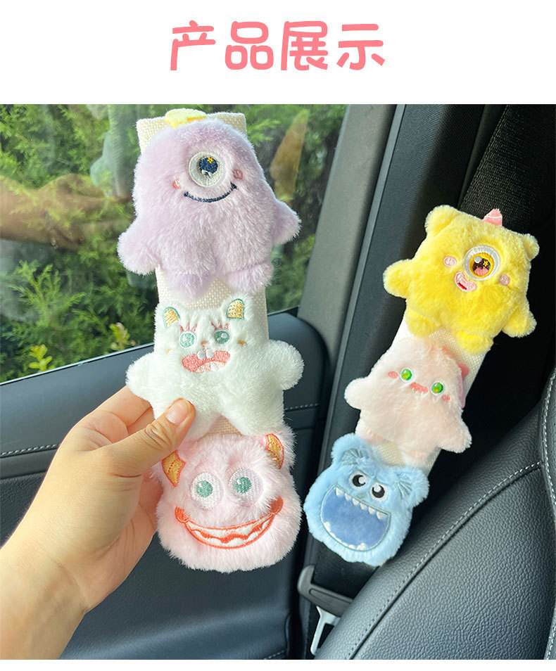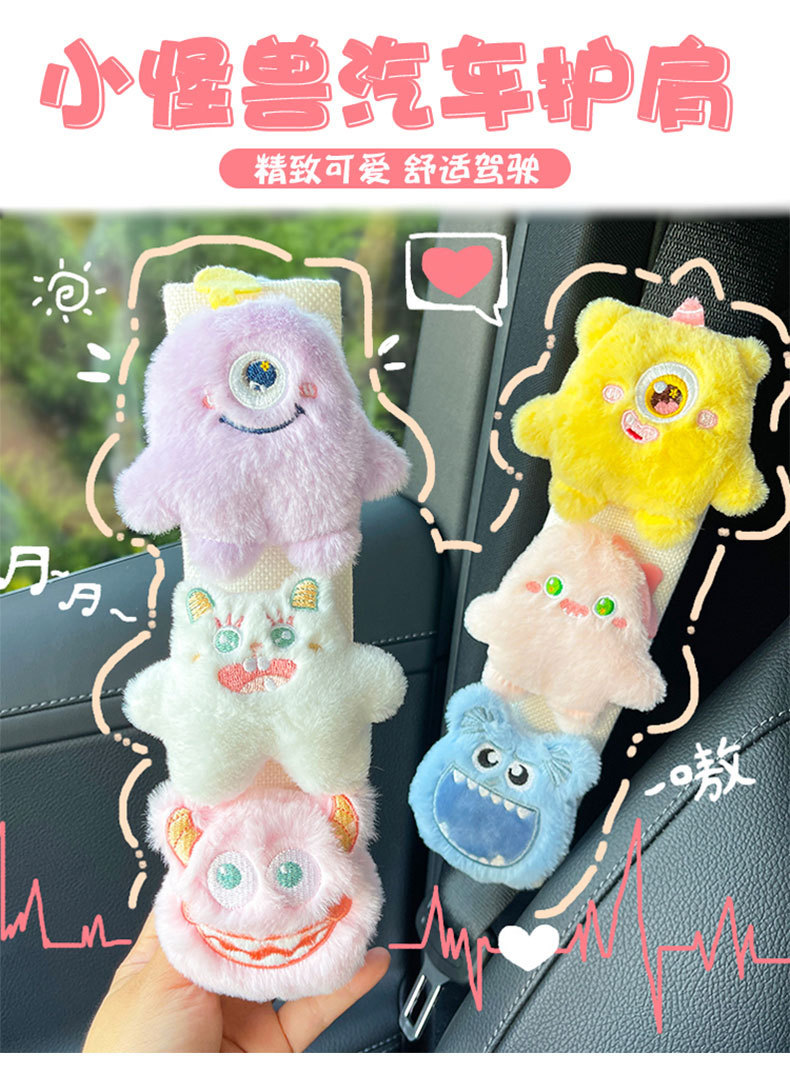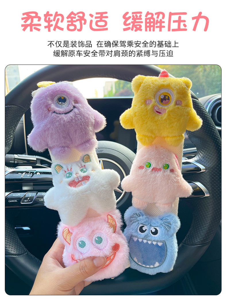 자동차 시트 벨트 어깨 커버 보호 커버 자동차 장식 만화 귀여운 몬스터 인형 자동차 인형 여성