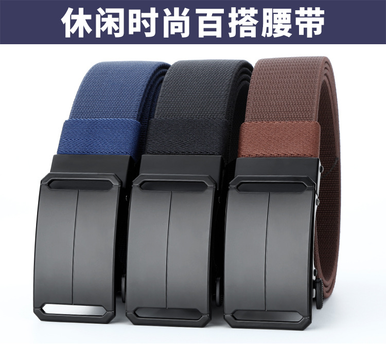 심플한 남성용 비즈니스 자동 버클 벨트, 트렌디하고 다재다능하며 펀치 없음, 멀티 컬러 옵션, 캐주얼 스트레치 우븐 벨트