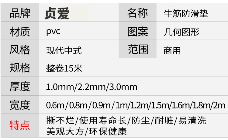 贞爱PVC牛筋地垫加厚走廊楼梯厨房防水防滑垫工厂仓库车间地胶垫