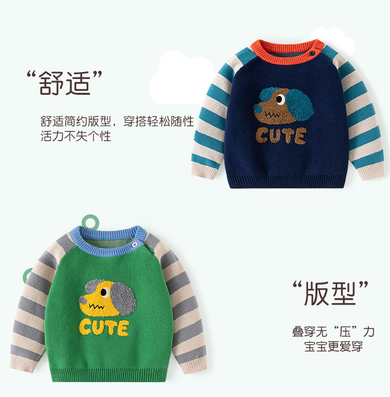 귀여운 색상 배색 스트라이프 아동용 상의 가을 겨울 니트 순면 남아용 스웨터 부드러운 A급 유아용 스웨터스토어 가기