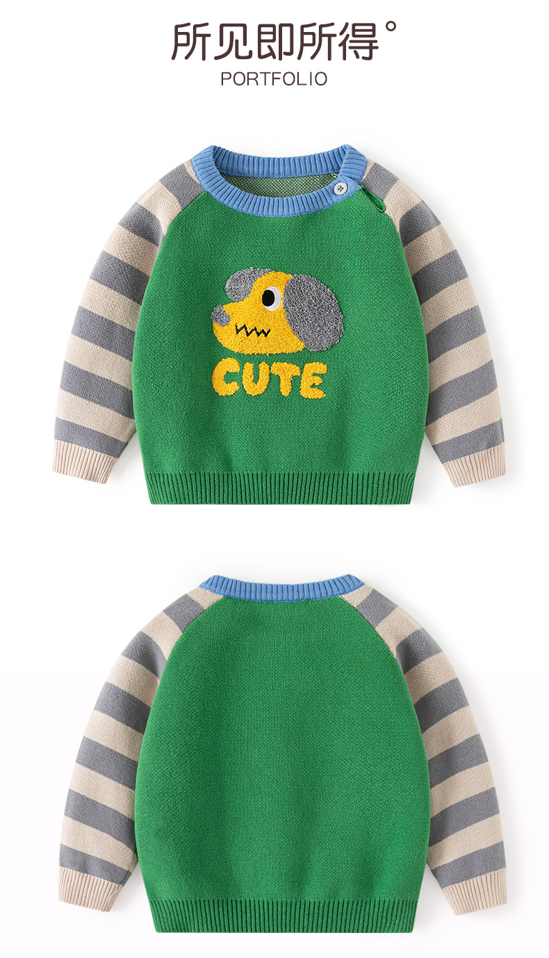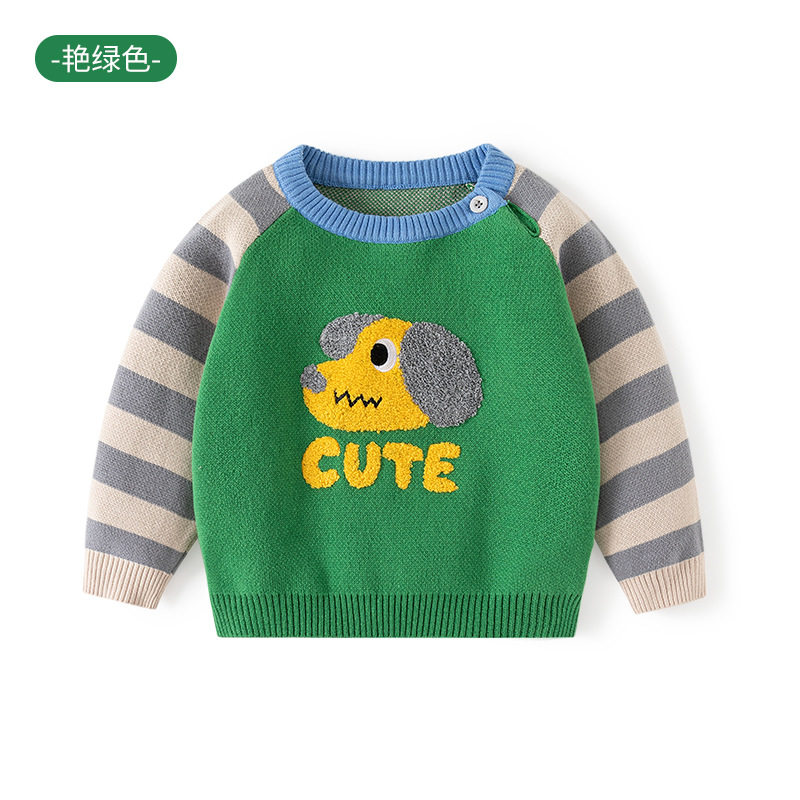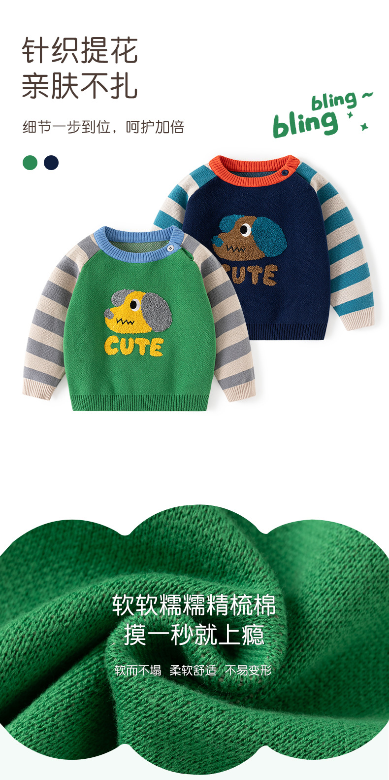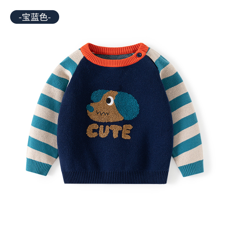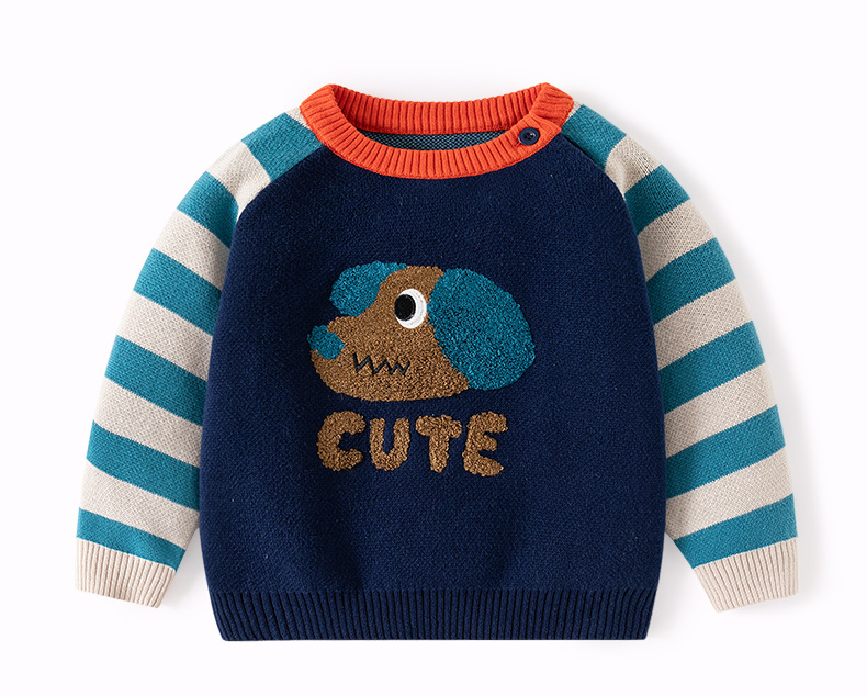 귀여운 색상 배색 스트라이프 아동용 상의 가을 겨울 니트 순면 남아용 스웨터 부드러운 A급 유아용 스웨터