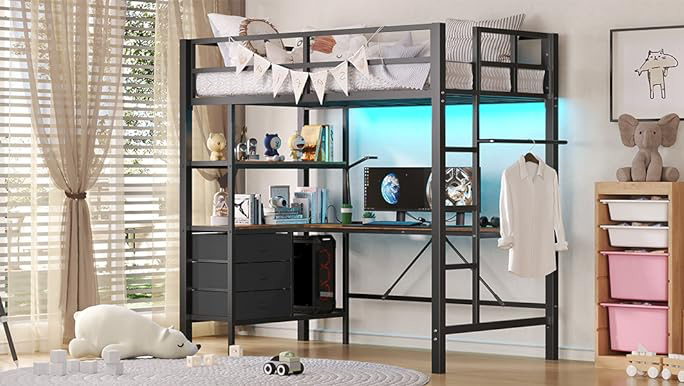 Amazon Tiktok에서 가장 잘 팔리는 미국식 철제 및 목재 이층 침대 로프트 침대 프레임 Aoji Zhiguo와 동일한 모델스토어 가기