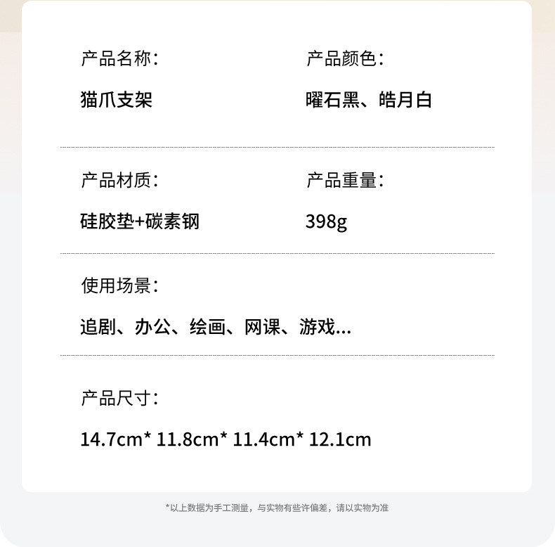 • 【흰색 고양이 발바닥】 360도 회전/접이식 - 풀 메탈 - 초안정, 흔들림 방지 - 스마트폰/태블릿 겸용