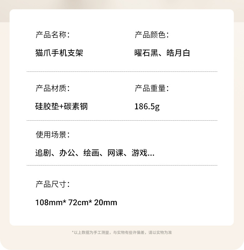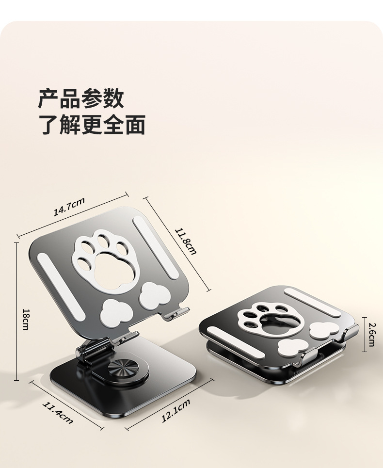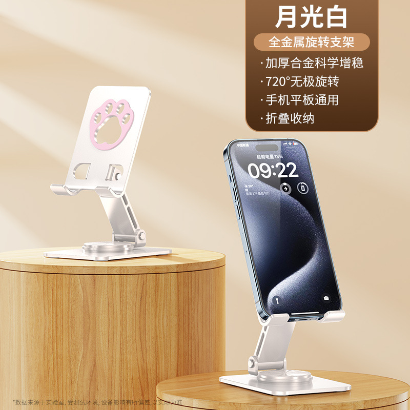 • 【흰색 고양이 발바닥】360도 회전/접이식 - 풀 메탈 - 초안정, 흔들림 없음 - 휴대폰 거치대