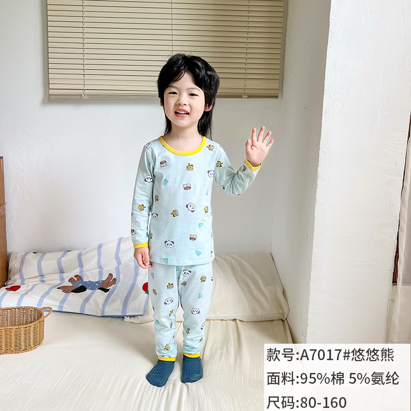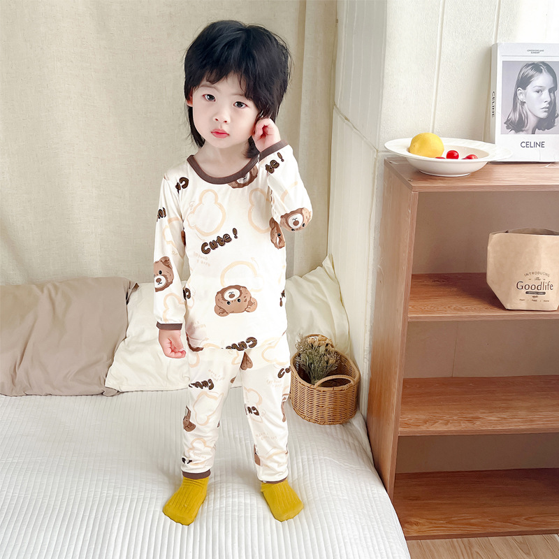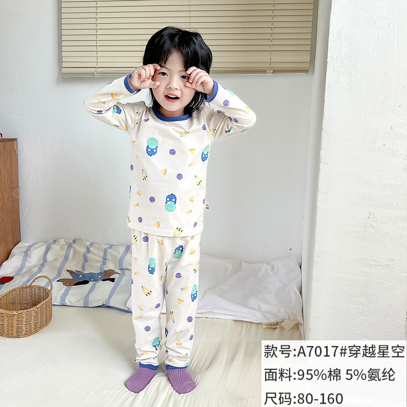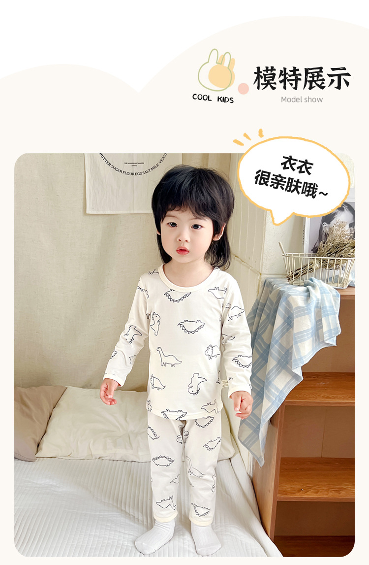 라이크라 코튼 소년과 소녀의 긴 소매 바지 세트 부드러운 홈 옷 어린이 잠옷 아기의 둥근 목 아동복