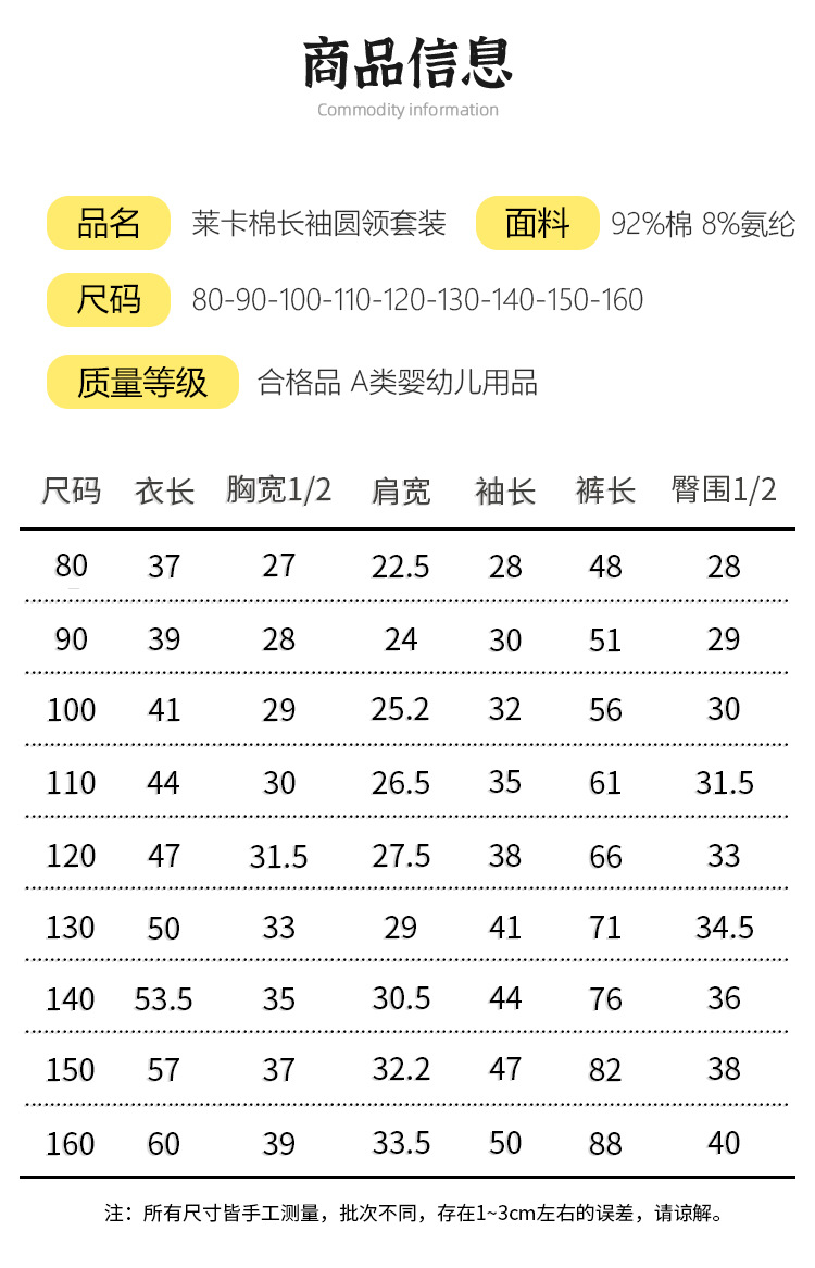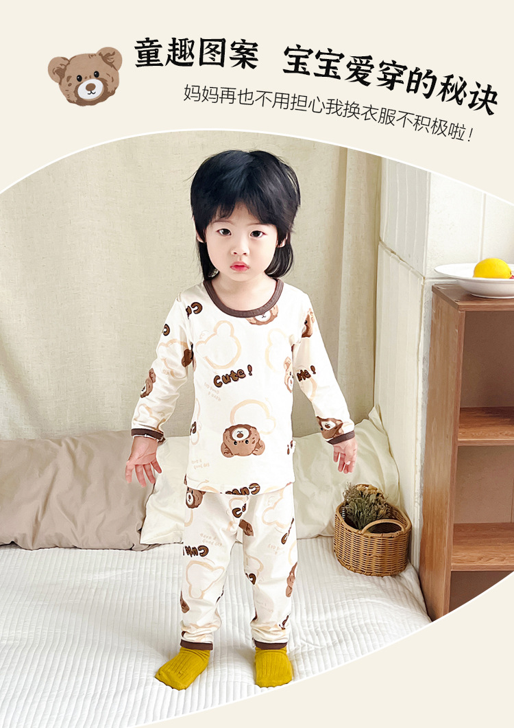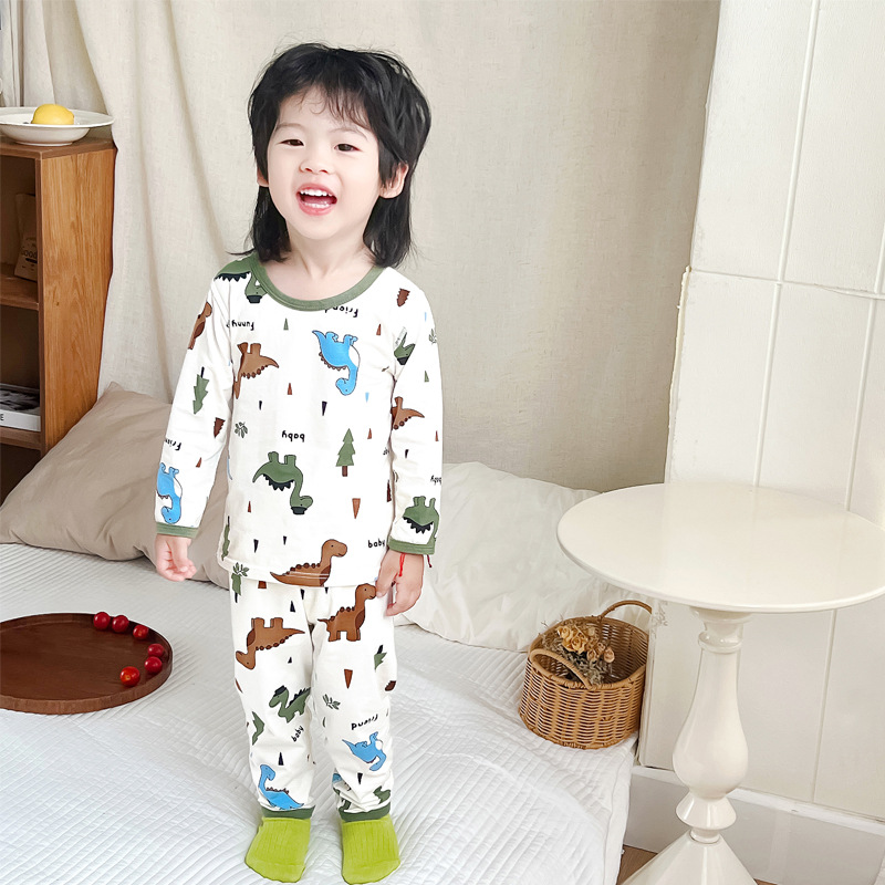라이크라 코튼 소년과 소녀의 긴 소매 바지 세트 부드러운 홈 옷 어린이 잠옷 아기의 둥근 목 아동복스토어 가기
