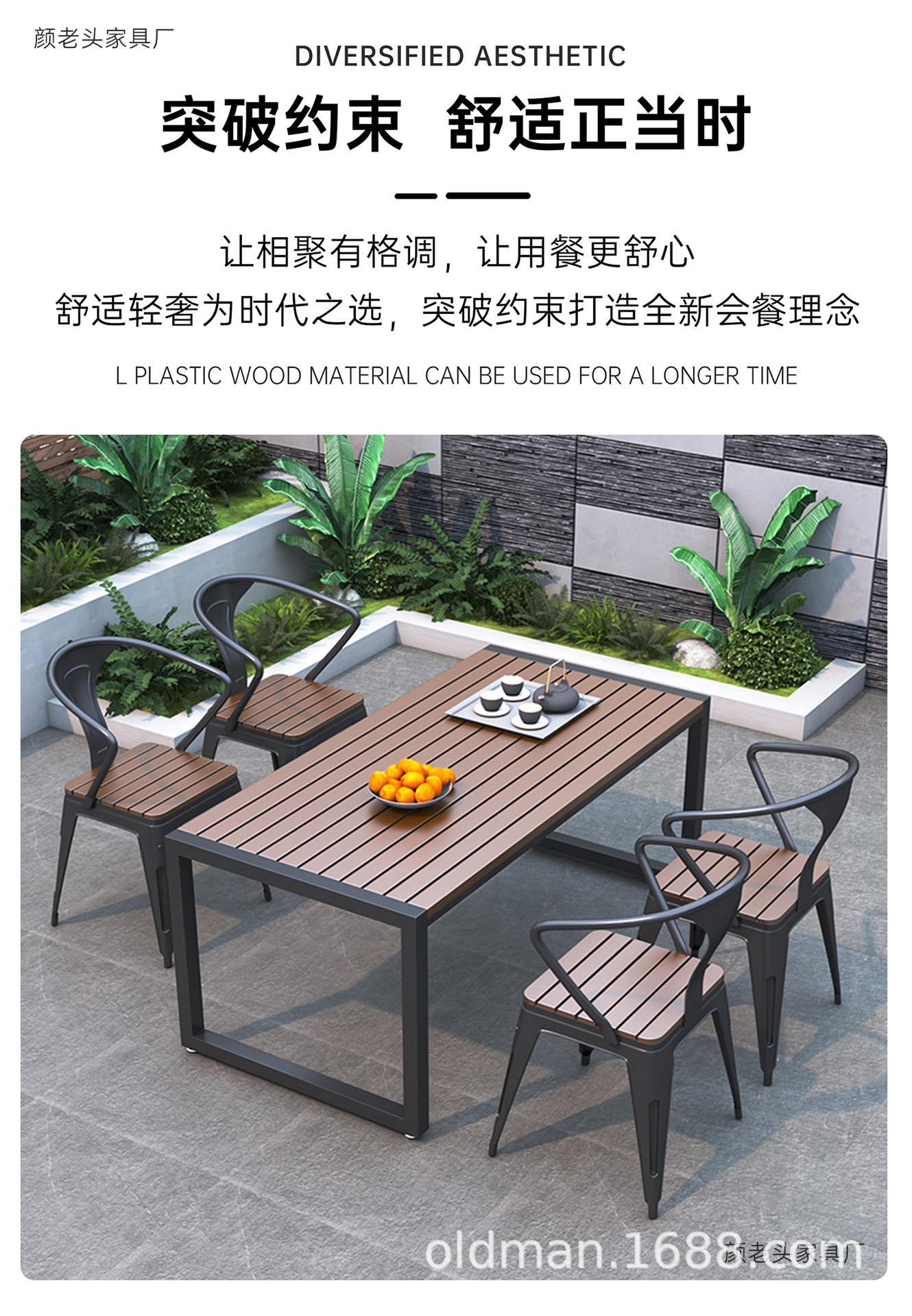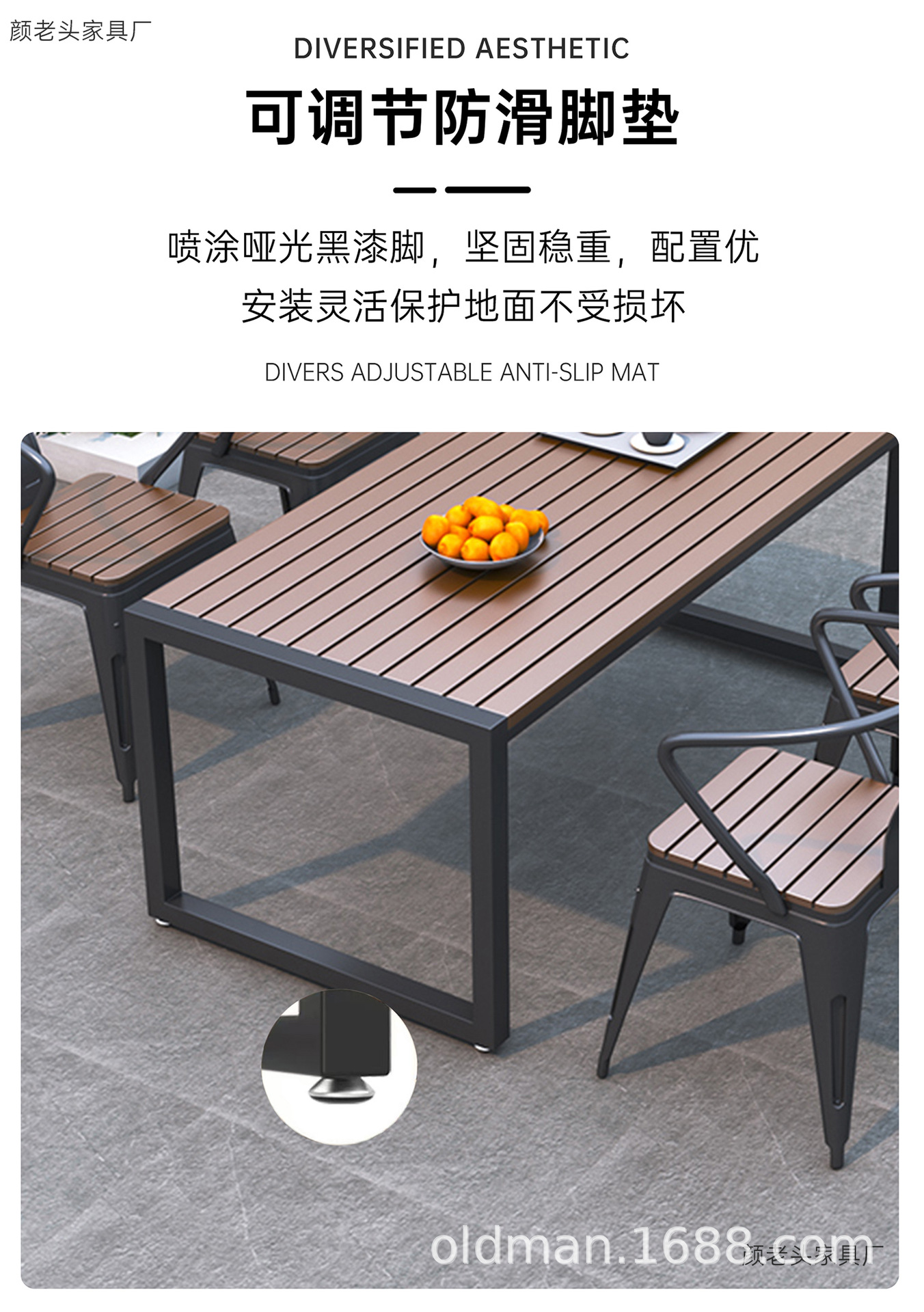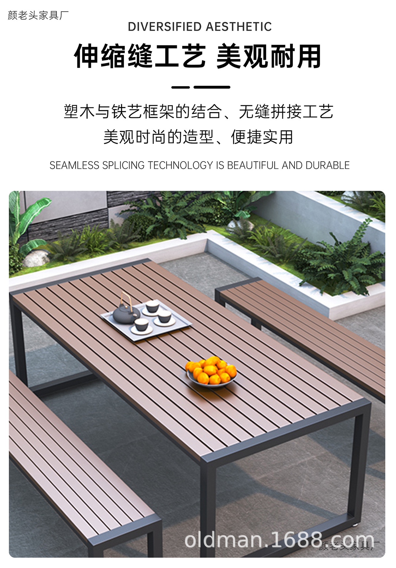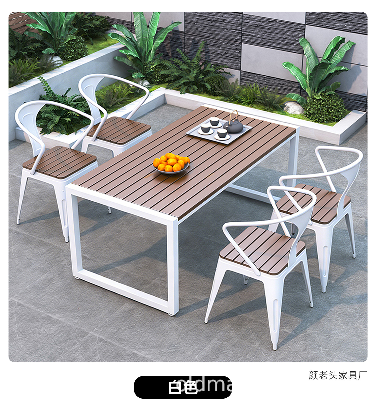공원 야외 안뜰 테이블 및 의자 야외 방수 방첩 방지 식사 테이블 발코니 야외 철 플라스틱 목재 바베큐 테이블 및 의자 조합