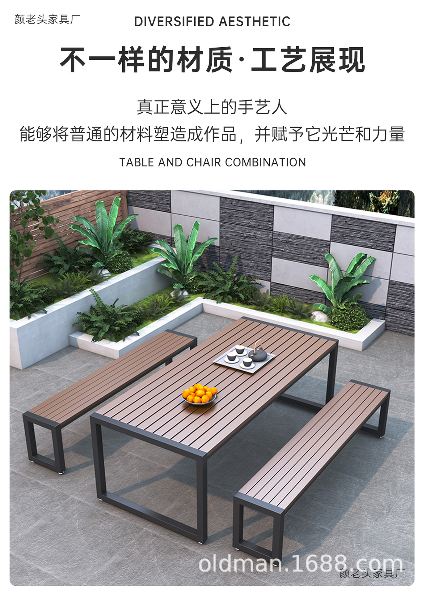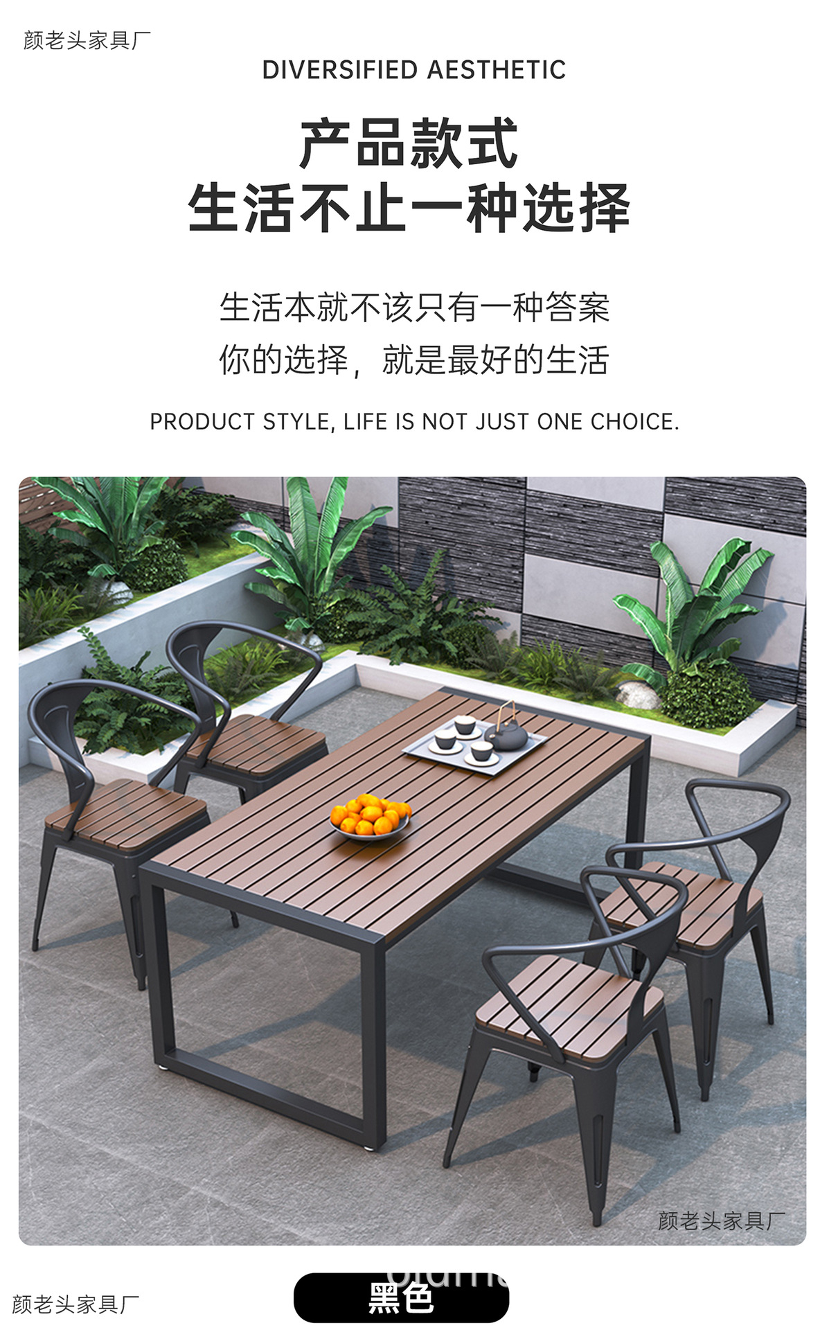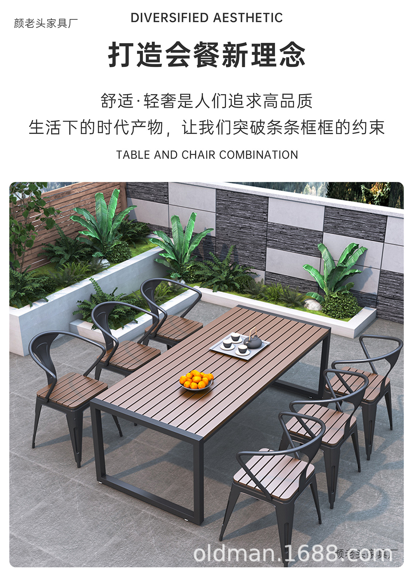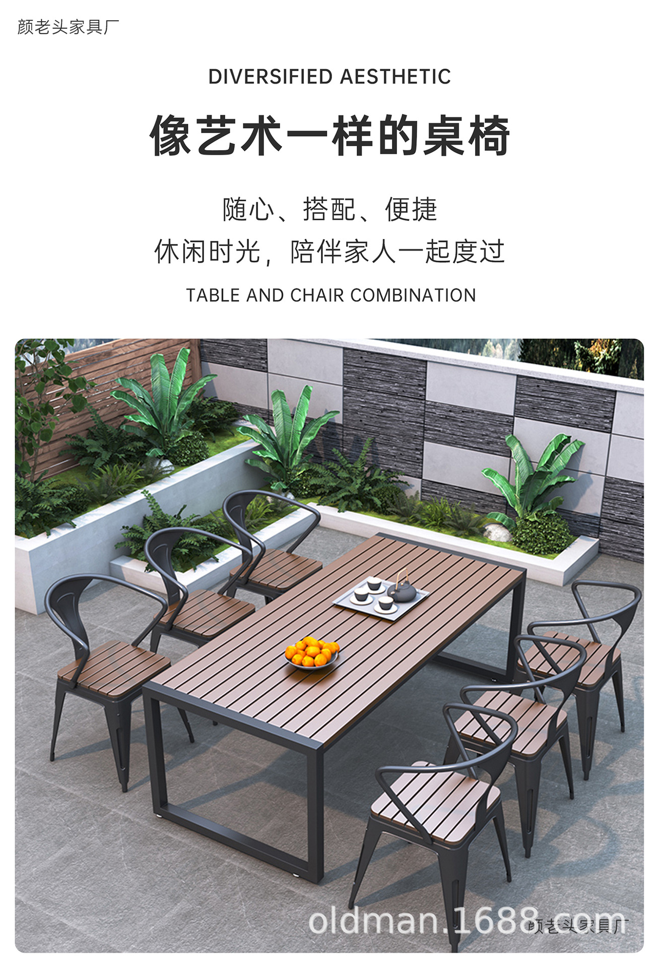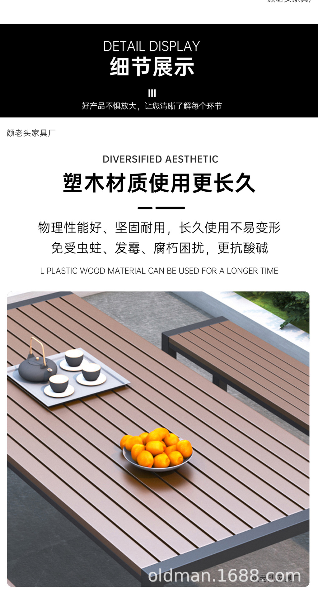공원 야외 안뜰 테이블 및 의자 야외 방수 방첩 방지 식사 테이블 발코니 야외 철 플라스틱 목재 바베큐 테이블 및 의자 조합