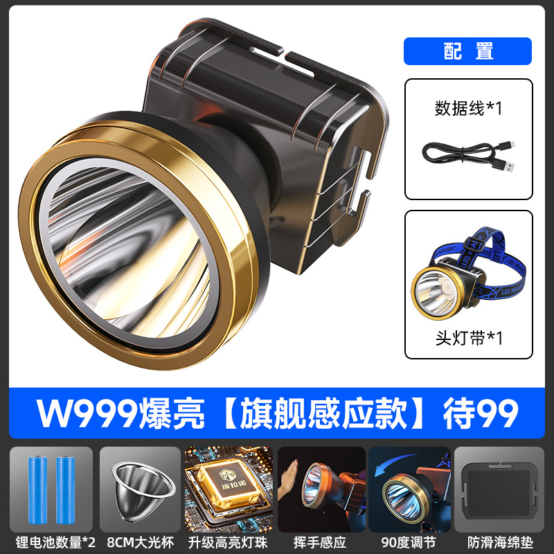 LED 전조등 강한 가벼운 장거리 충전식 방수 슈퍼 밝은 머리 장착 광부의 램프 긴 내구성 손전등 야외