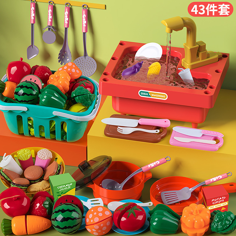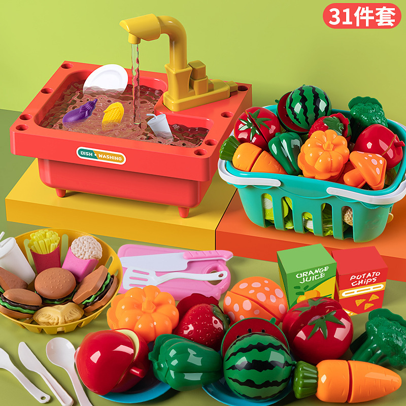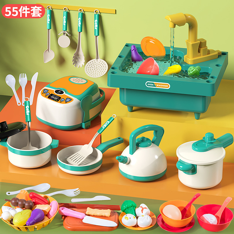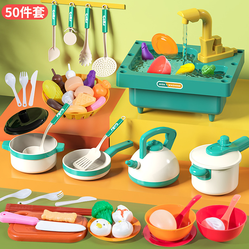국경 간 시뮬레이션 싱크 전기 주방 야채 분지 순환 워터 싱크 테이블 어린이 식기 세척기 장난감스토어 가기