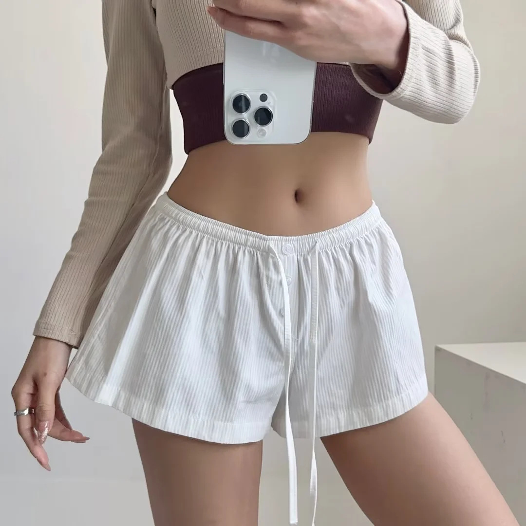 여름 새로운 유럽과 미국 여성의 탄성 허리 드로 스트링 낮은 허리 3 버튼 핫 소녀 반바지 캐주얼 패션 홈 넓은 다리