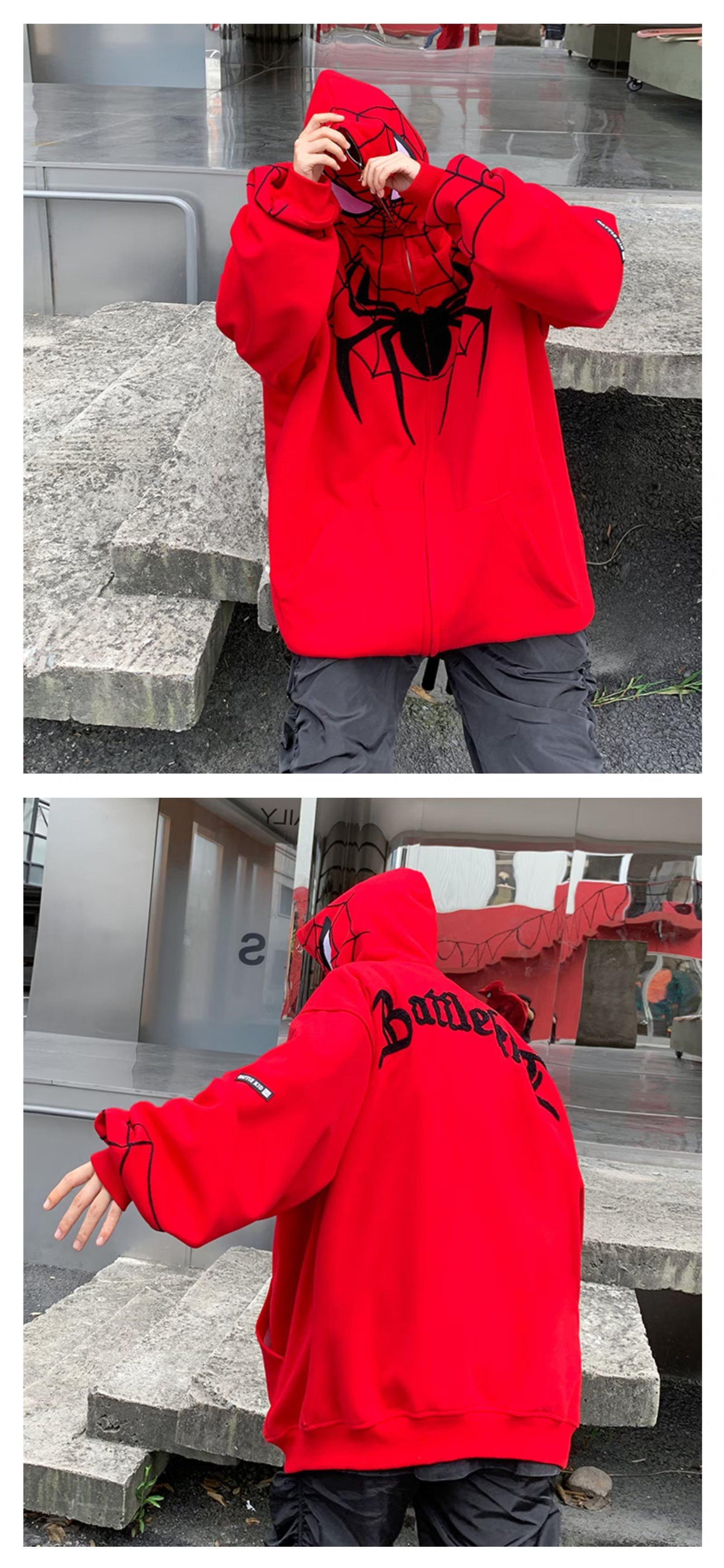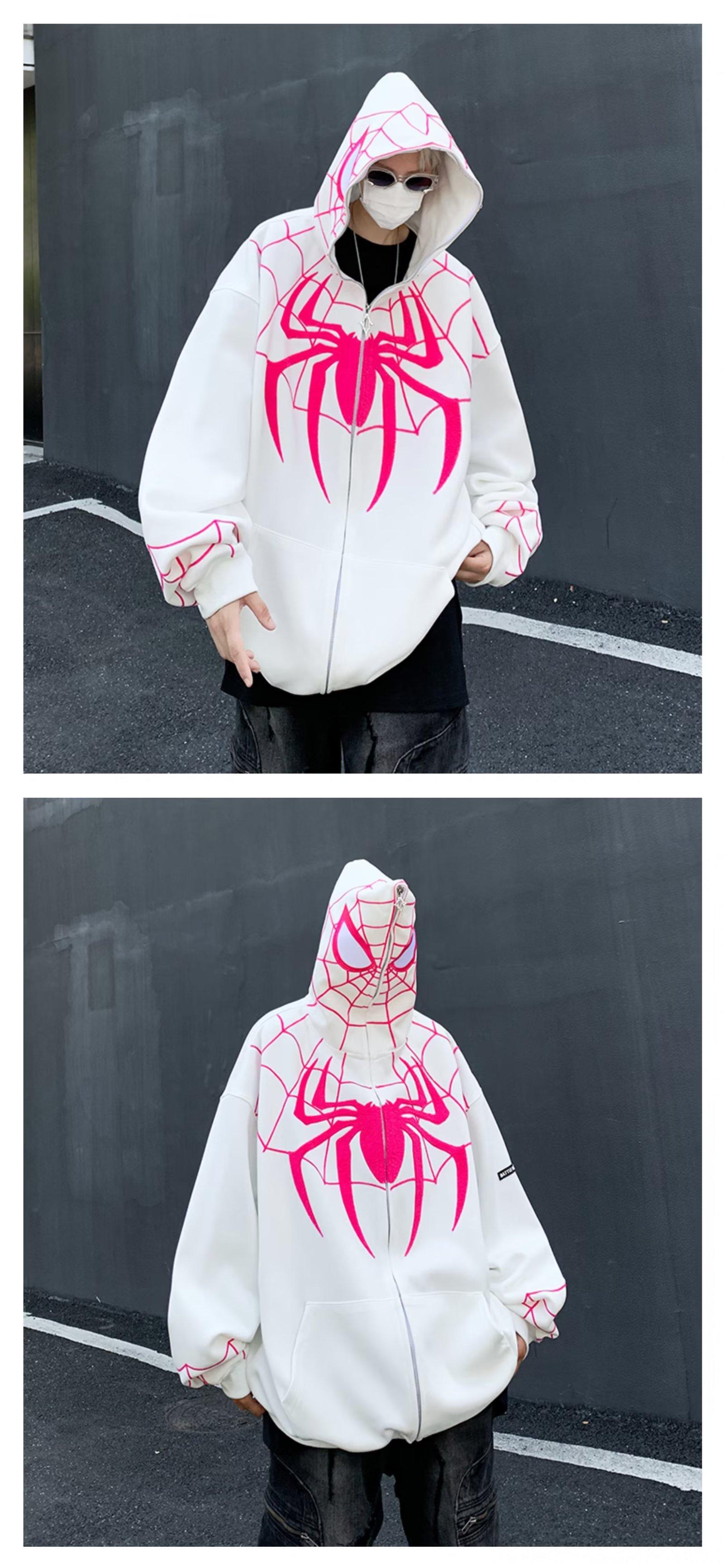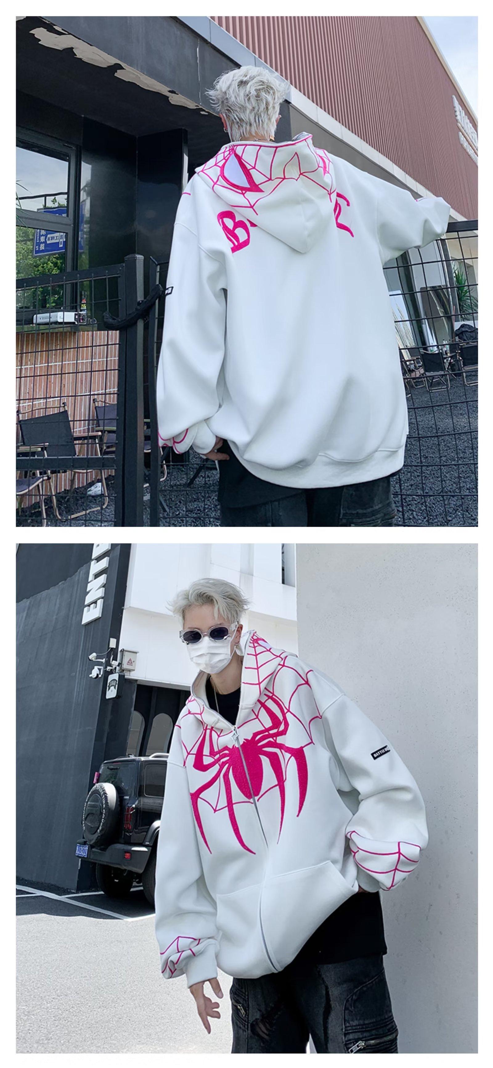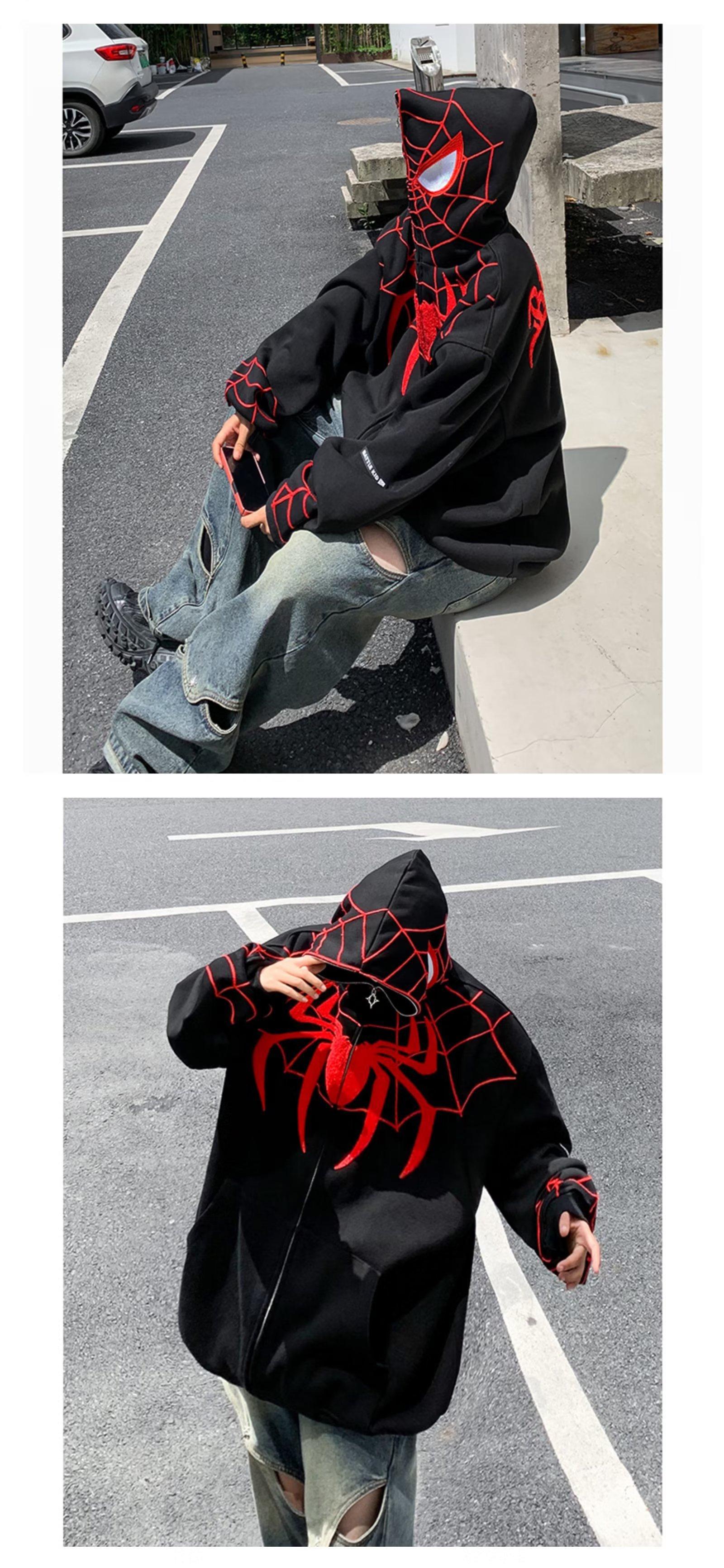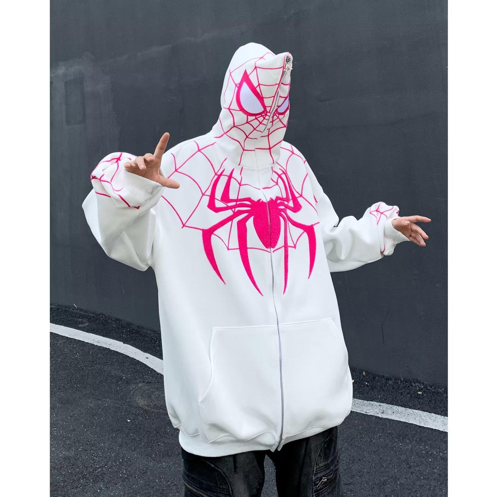 소년 소녀를위한 가을 새로운 힙합 스파이더 맨 스웨터 트렌디 브랜드 미국 디자인 센스 틈새 후드 카디건 탑
