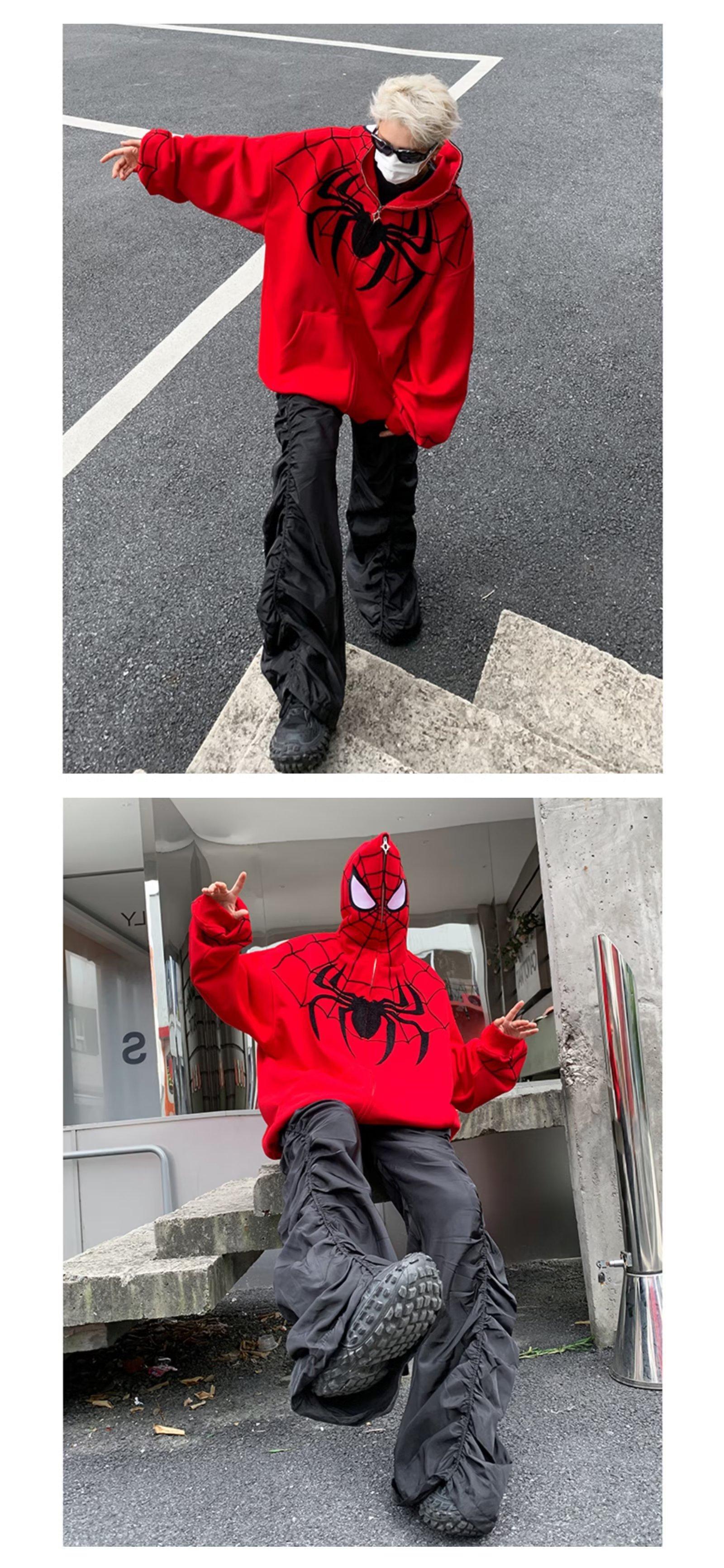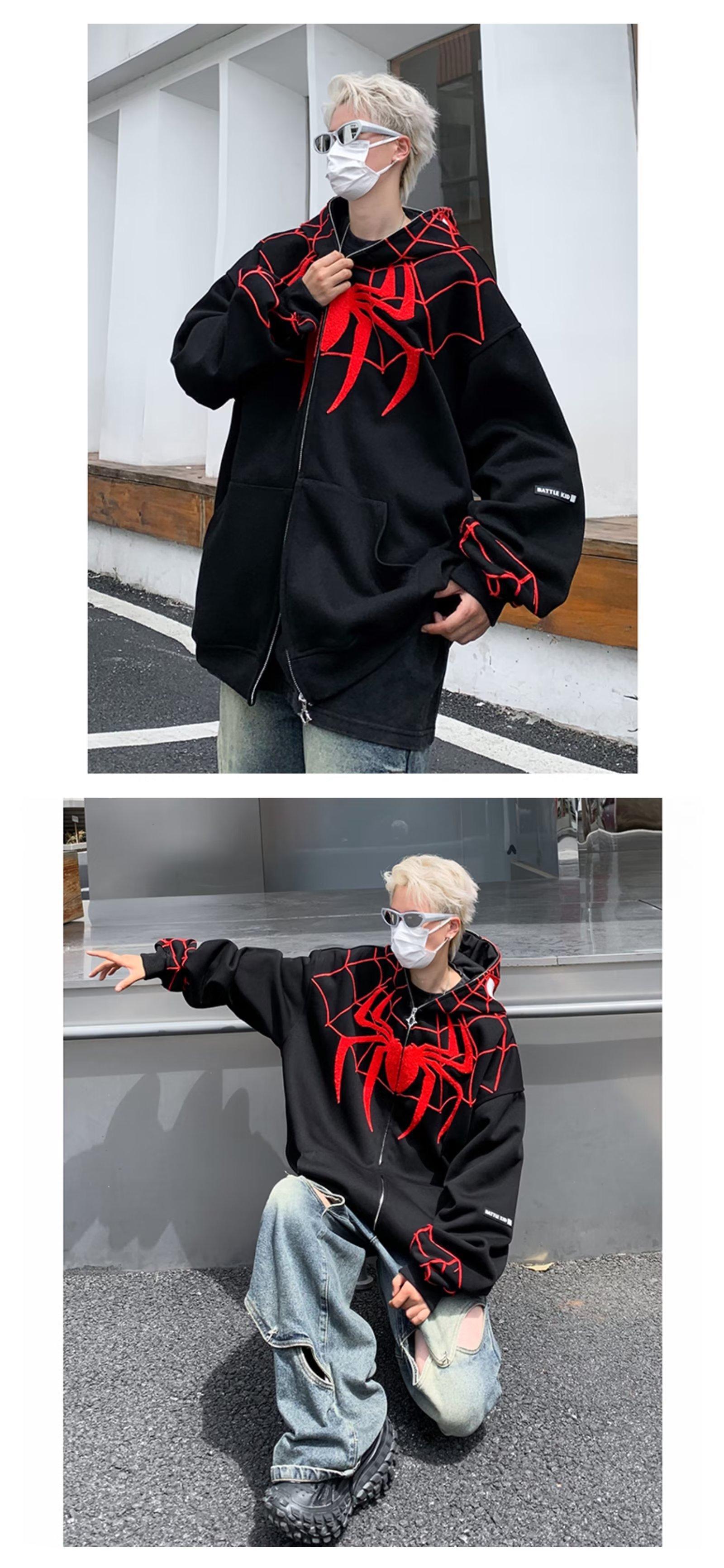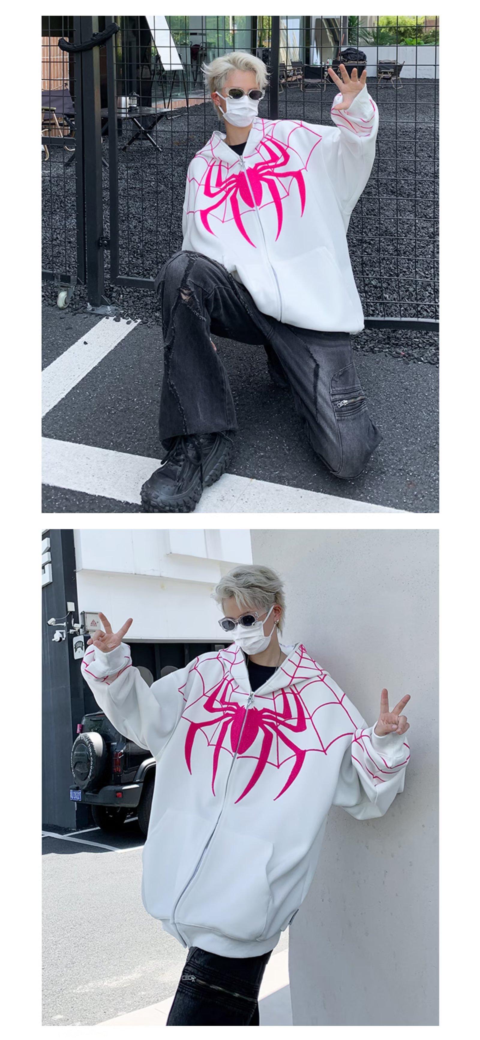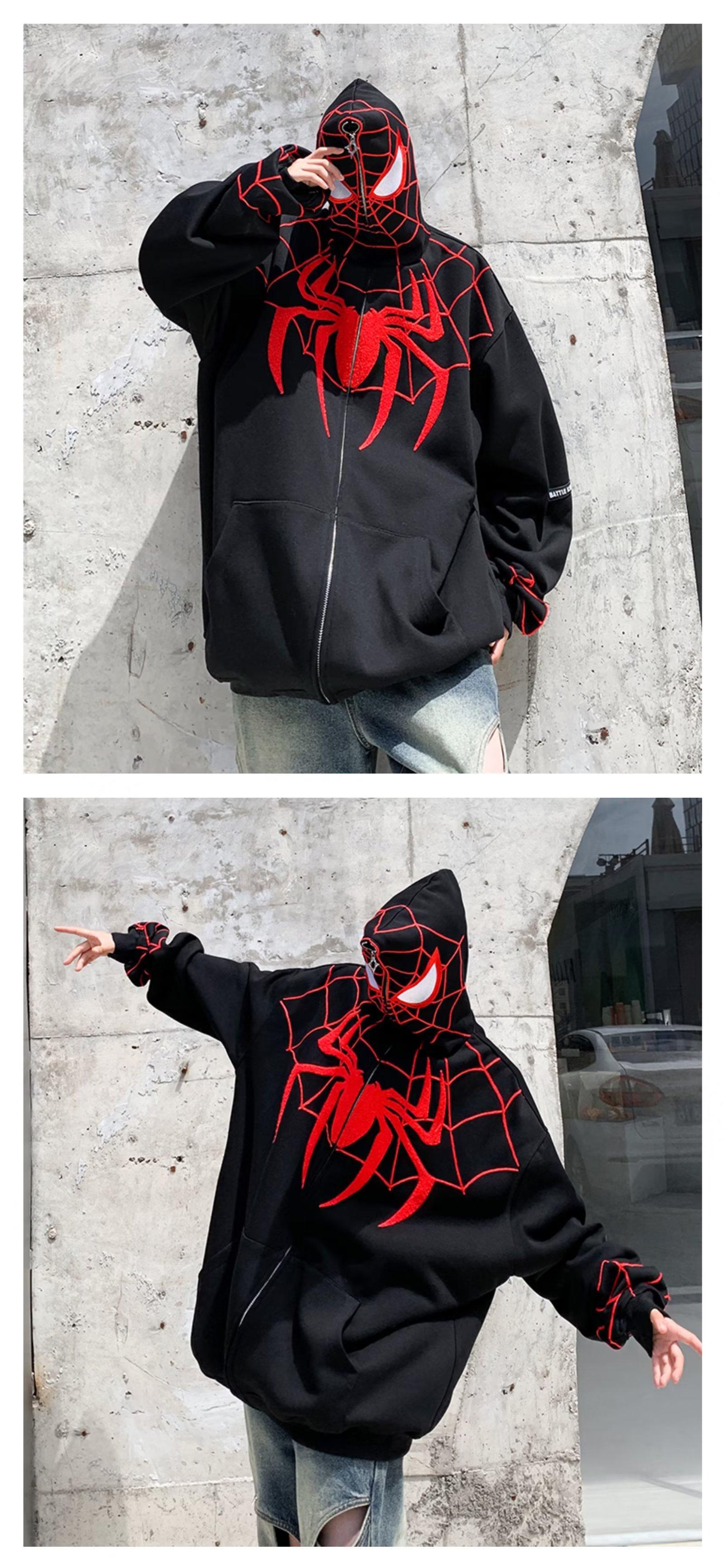 소년 소녀를위한 가을 새로운 힙합 스파이더 맨 스웨터 트렌디 브랜드 미국 디자인 센스 틈새 후드 카디건 탑