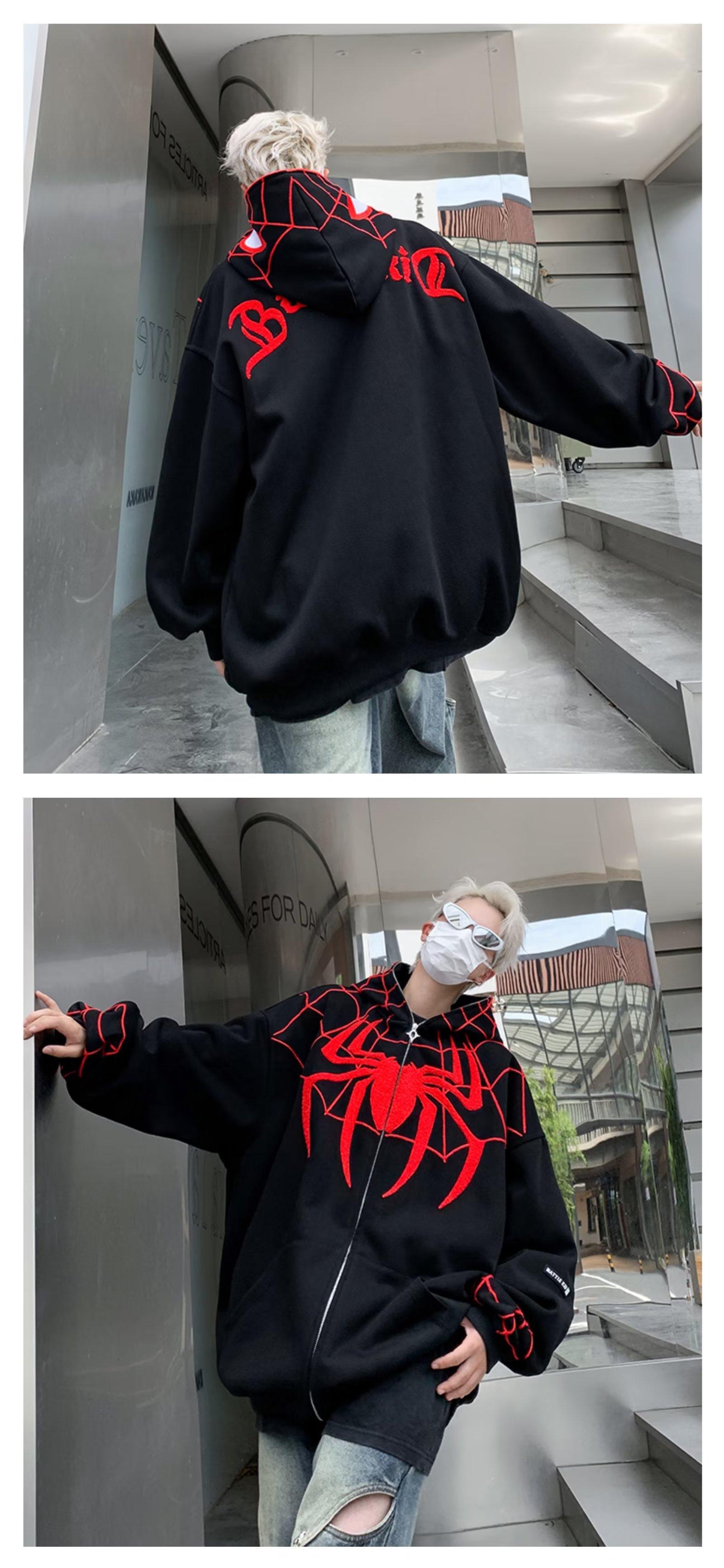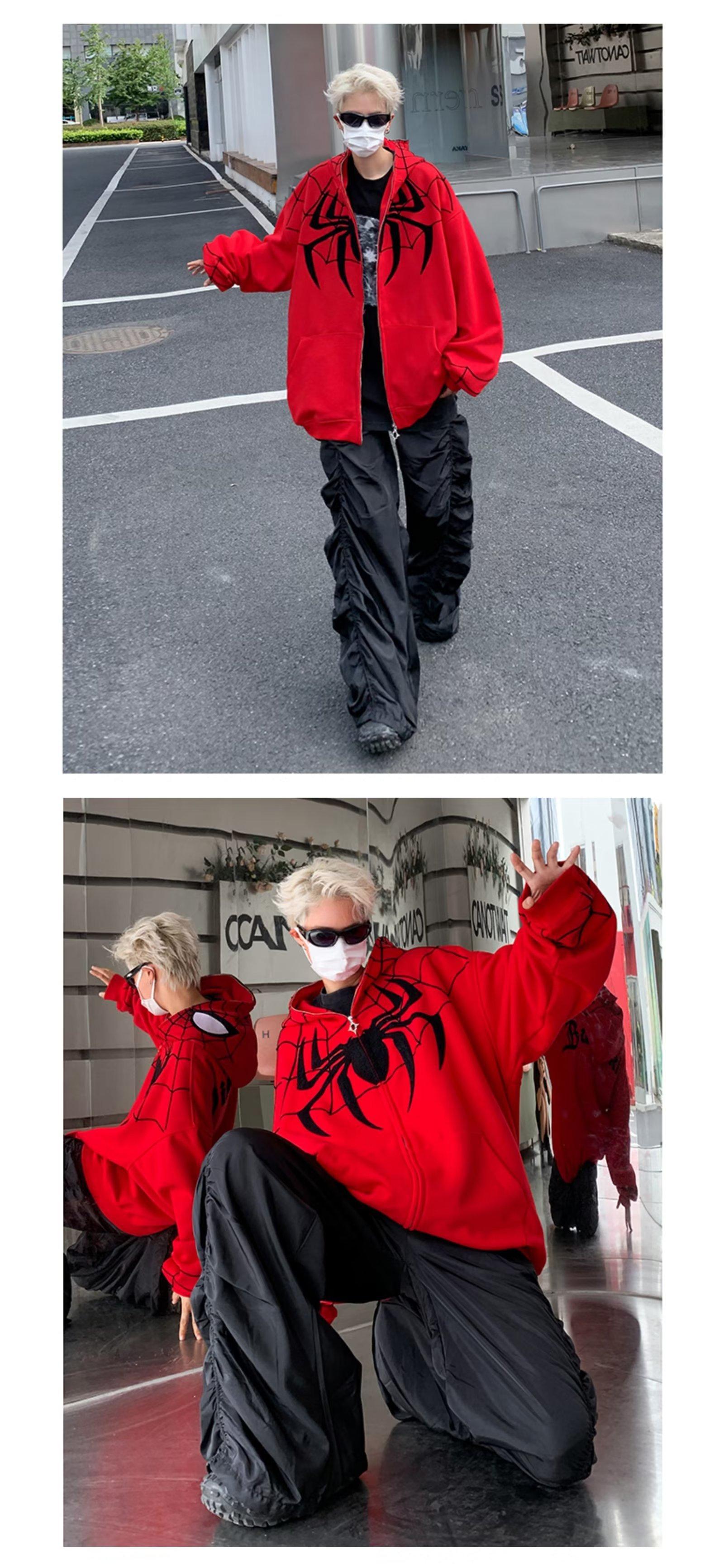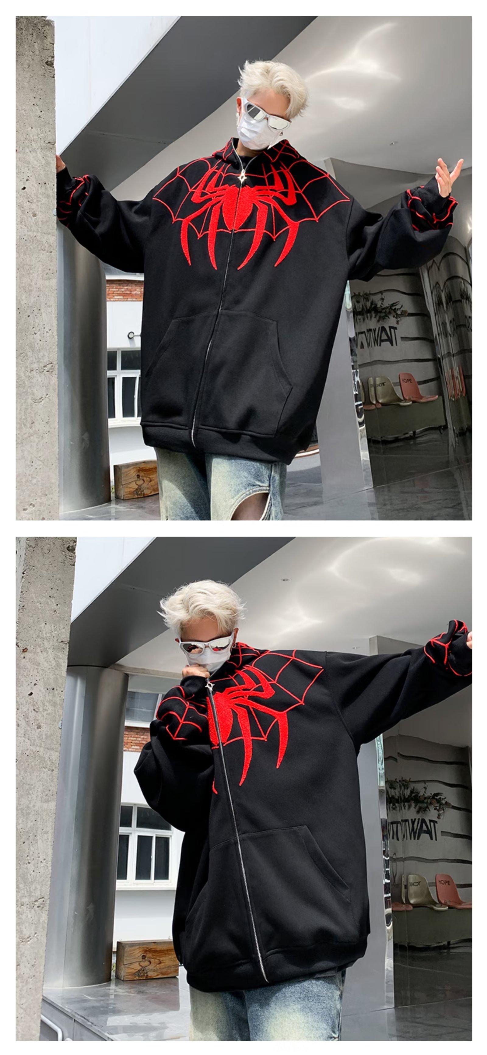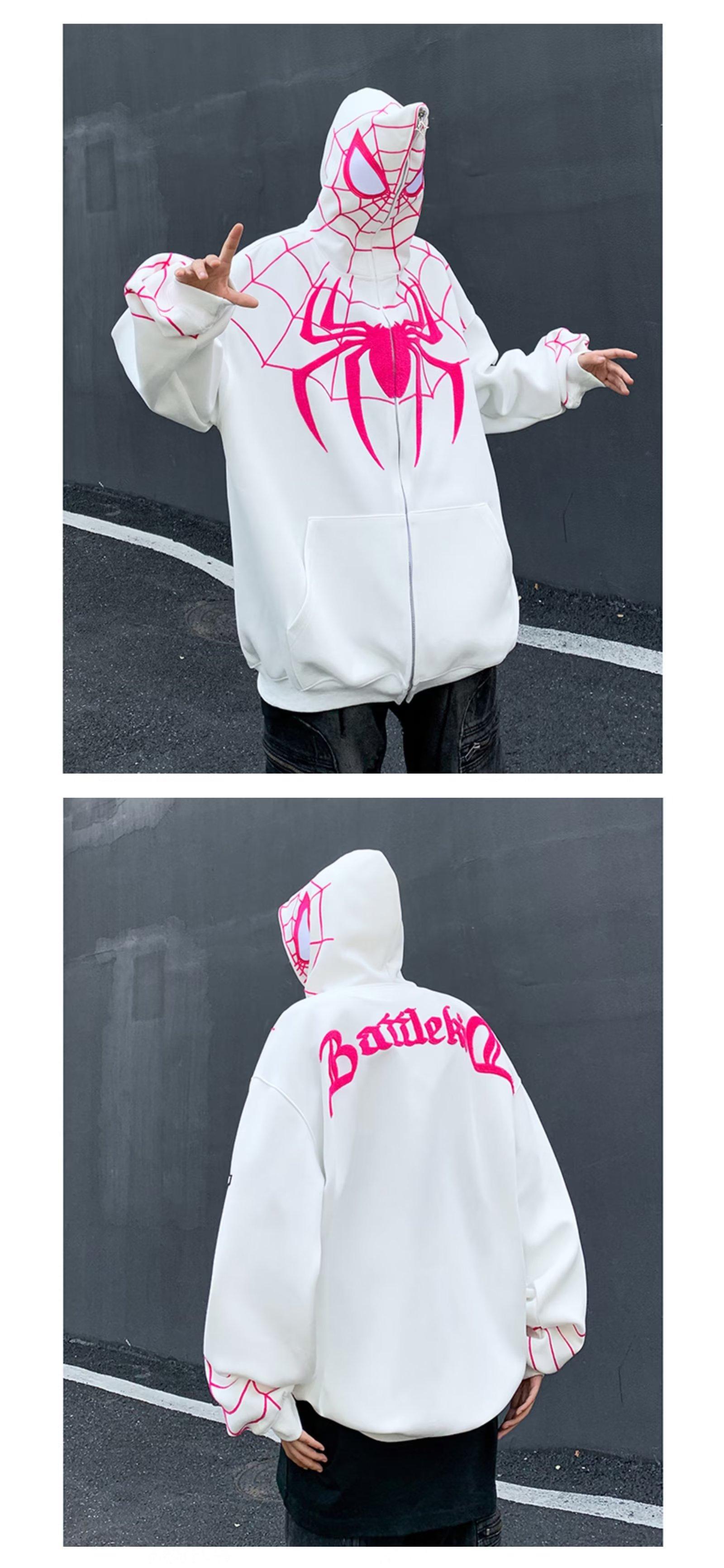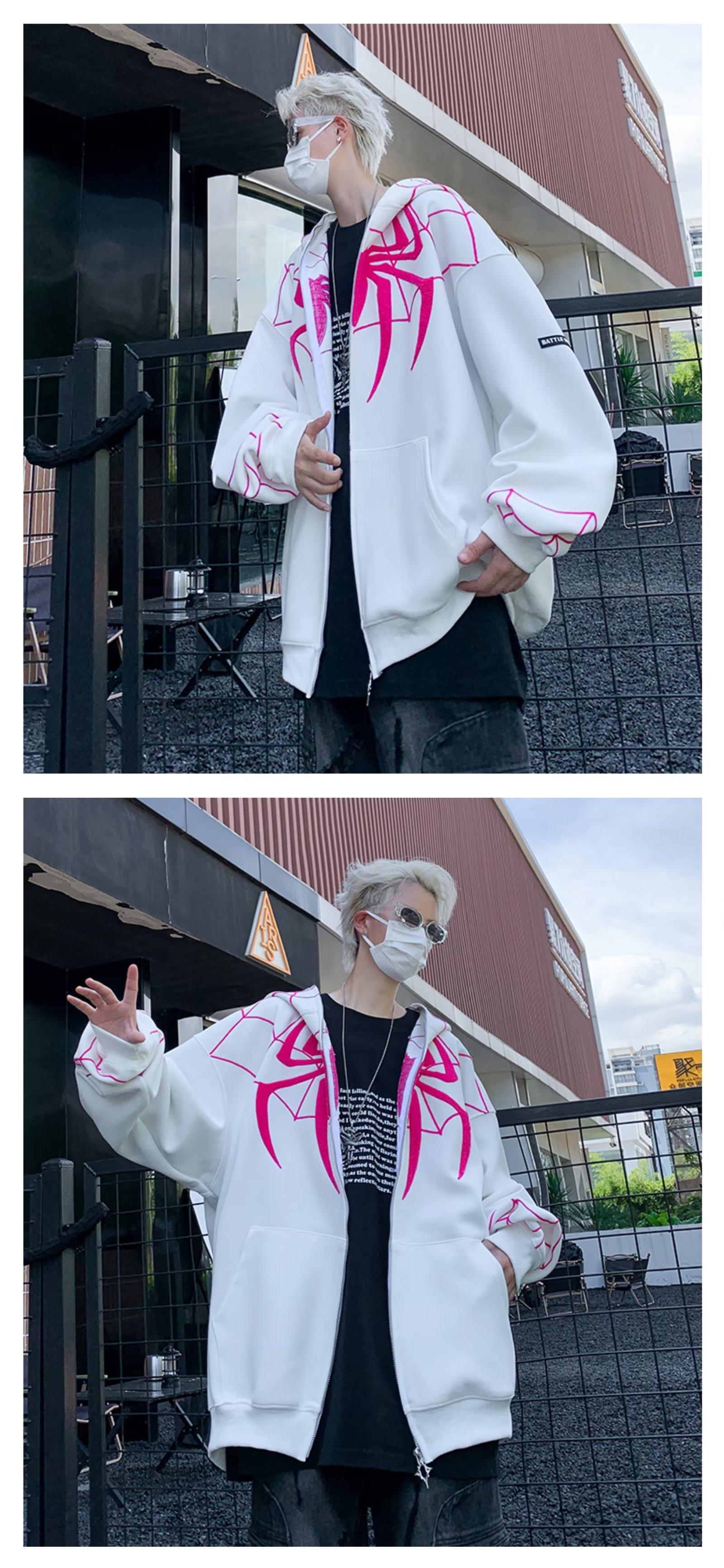 소년 소녀를위한 가을 새로운 힙합 스파이더 맨 스웨터 트렌디 브랜드 미국 디자인 센스 틈새 후드 카디건 탑