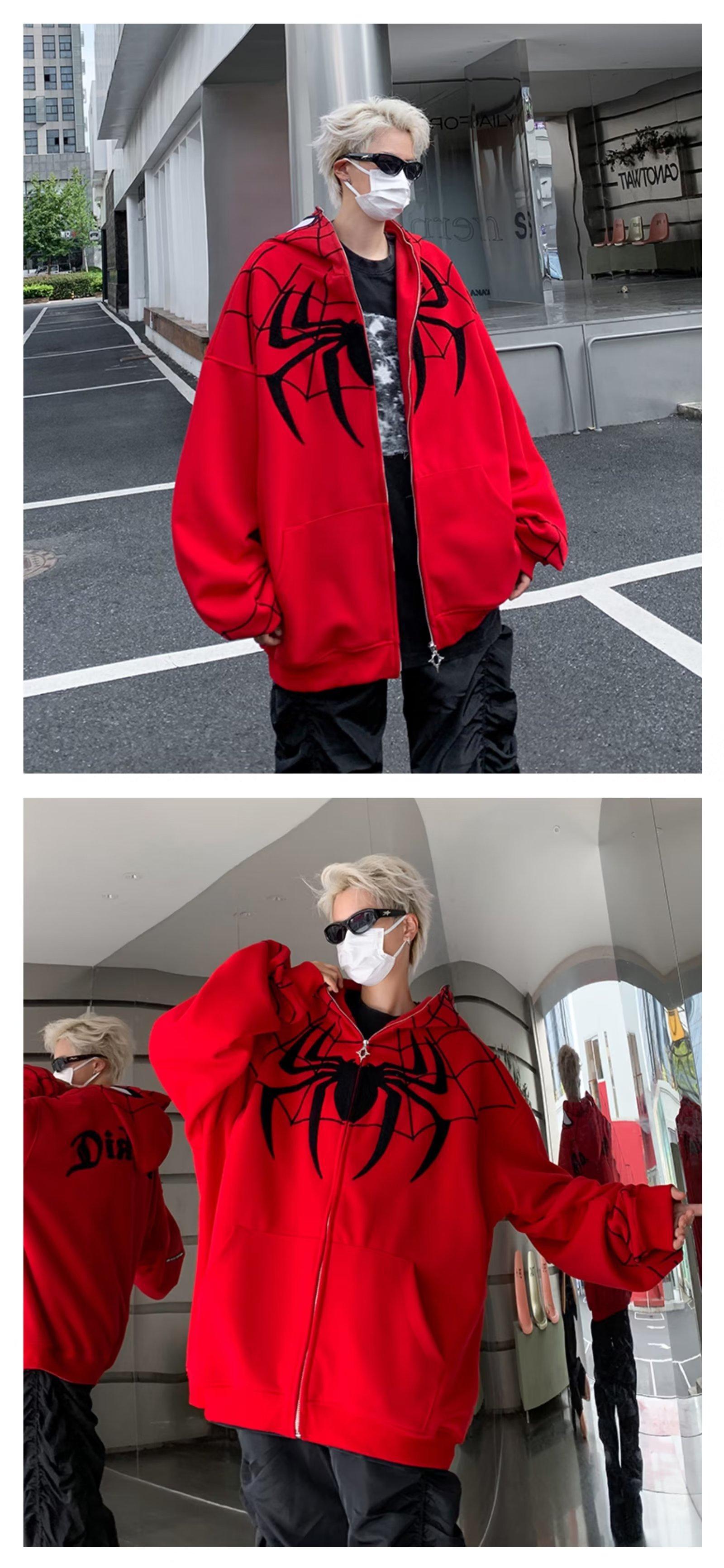 소년 소녀를위한 가을 새로운 힙합 스파이더 맨 스웨터 트렌디 브랜드 미국 디자인 센스 틈새 후드 카디건 탑스토어 가기