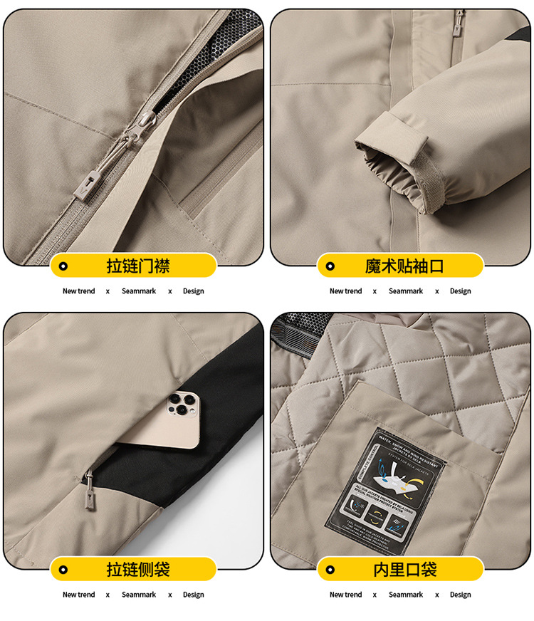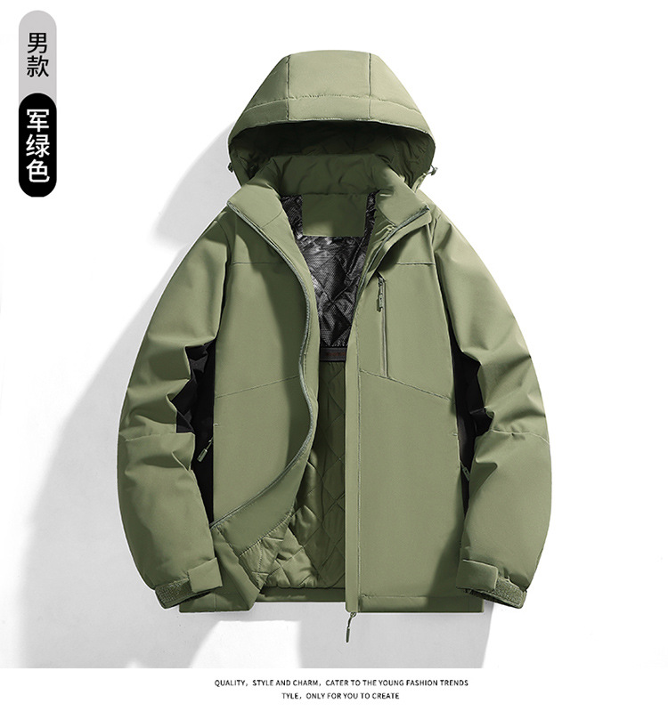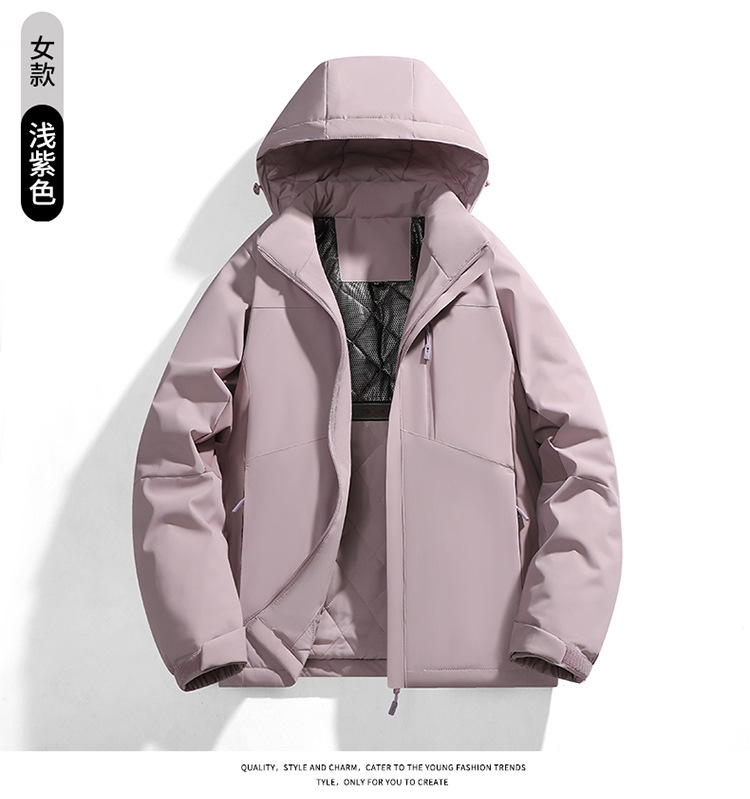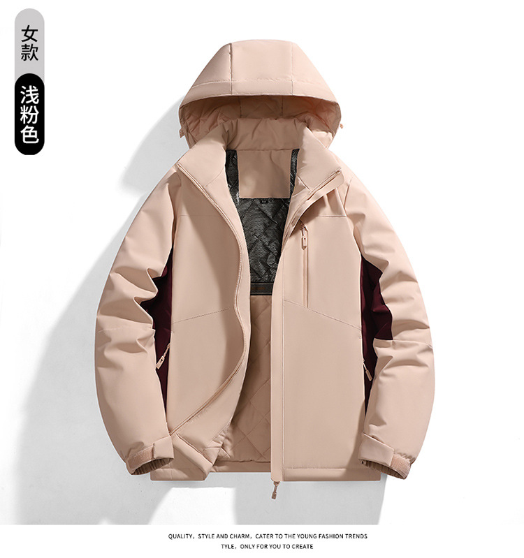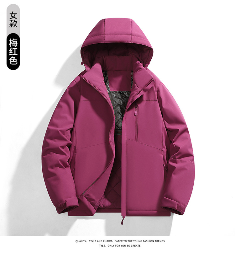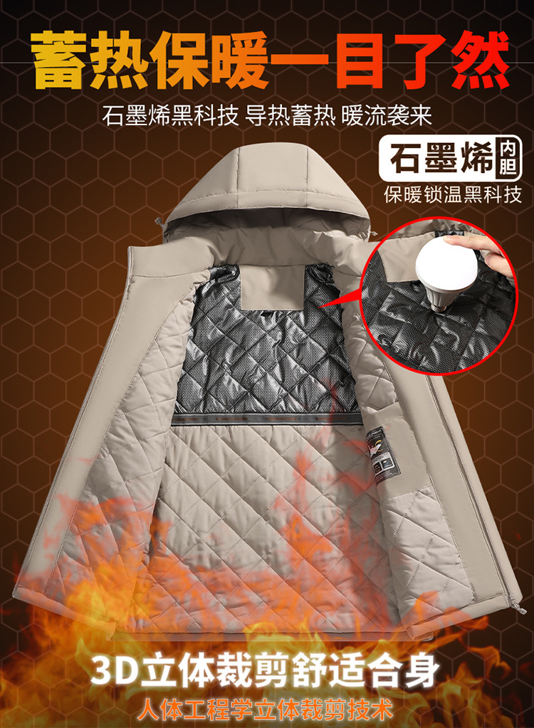 남자와 여자의 겨울 두꺼운 따뜻한 면화 패딩 재킷 그래 핀 난방 인테리어 야외 등산 세트 재킷