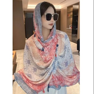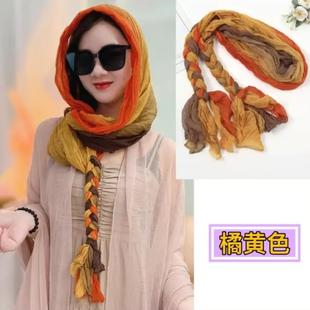 바오터우 실크 스카프 여성 후드 스카프 봄과 여름 다기능 여행 선 스크린 목도리 모든 경기 리본 얇은 헤드 스카프 모자