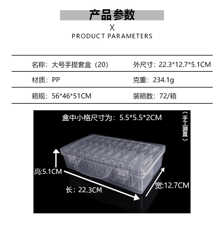 대형 휴대용 세트 박스 (20) 5.5 작은 사각 상자 저장 상자 수공예 휴대용 투명 상자