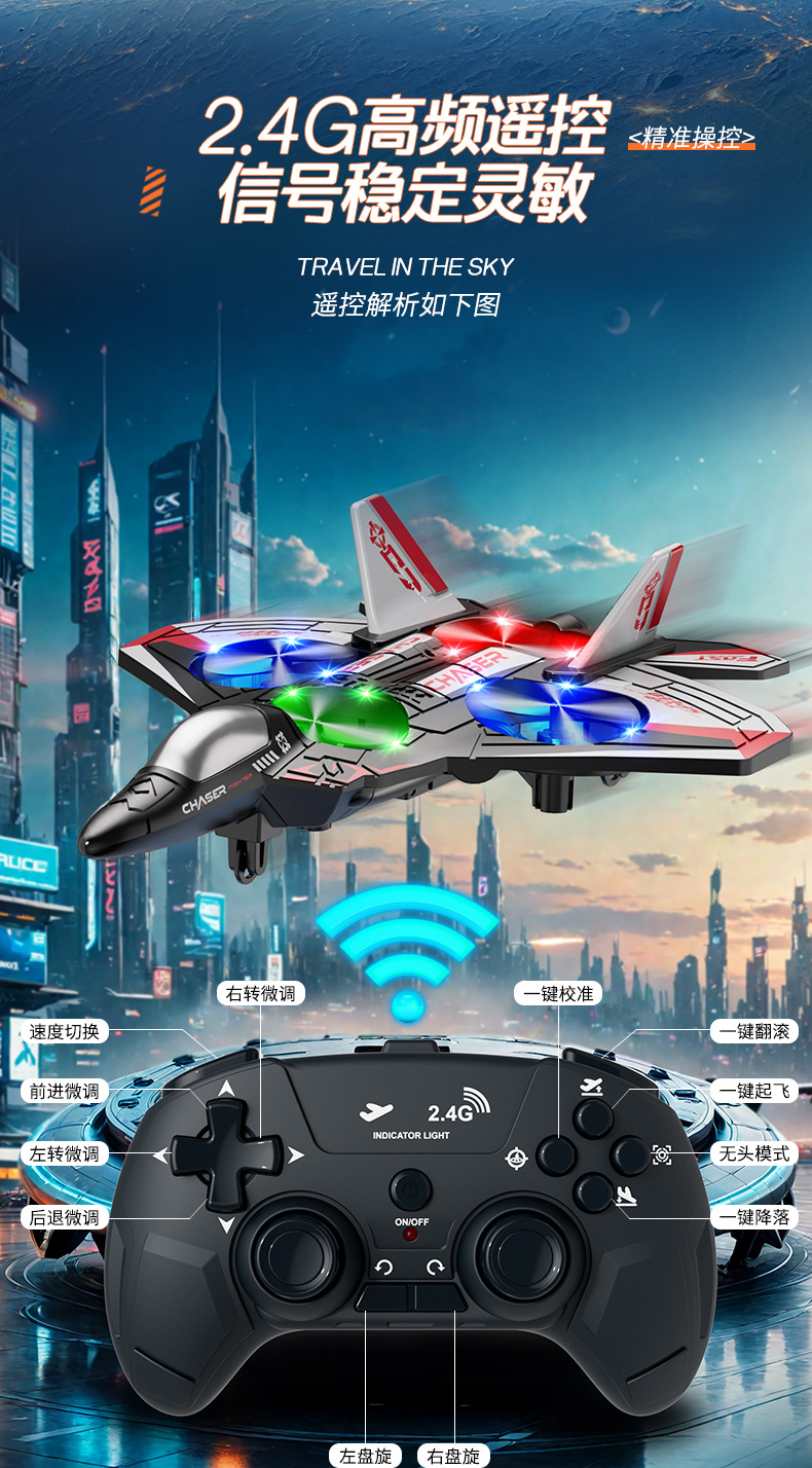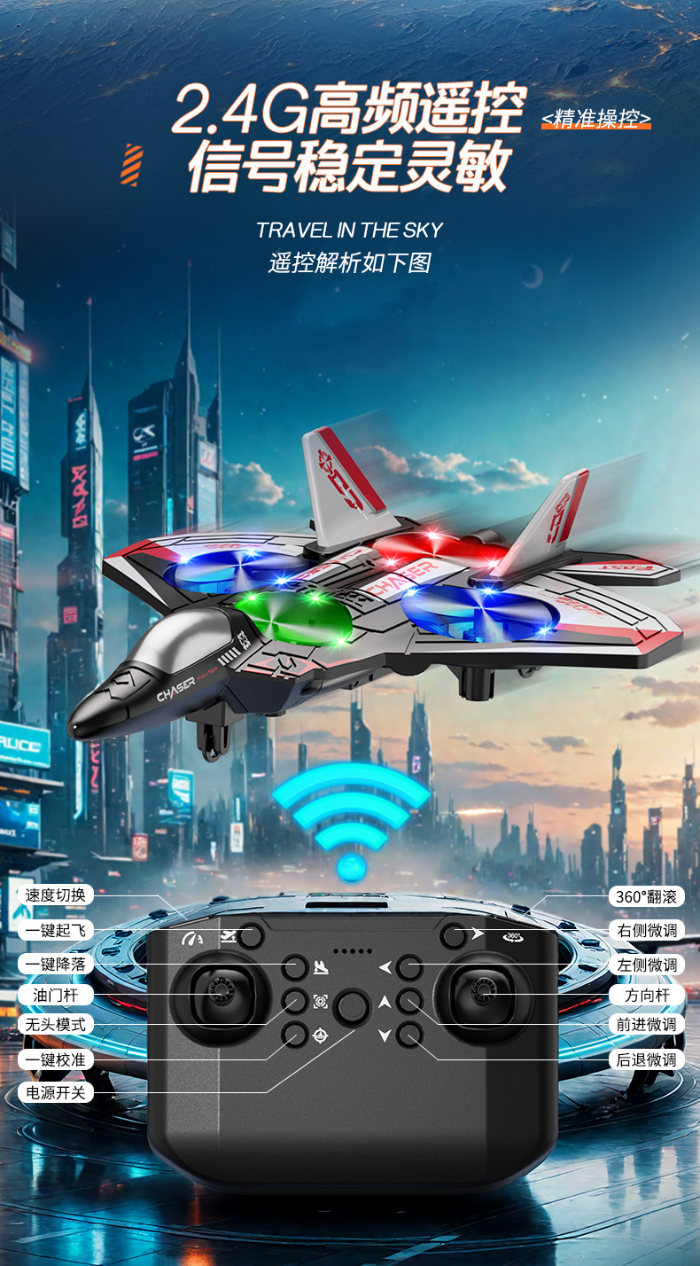 다채로운 조명 특수 효과 원격 제어 항공기 어린이 전투기 낙하 방지 폼 스턴트 드론 장난감 무료 배송스토어 가기