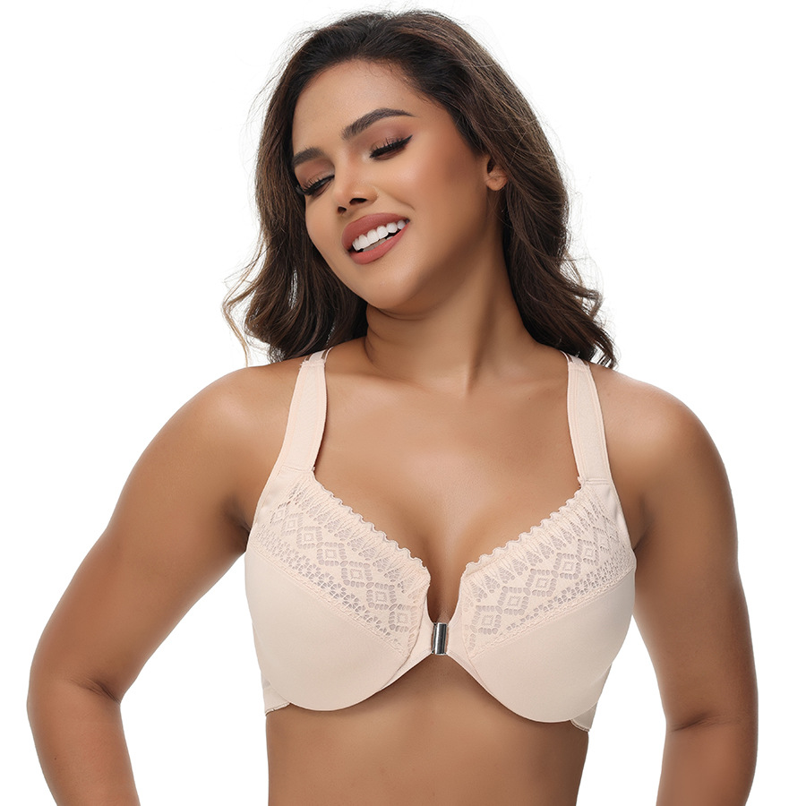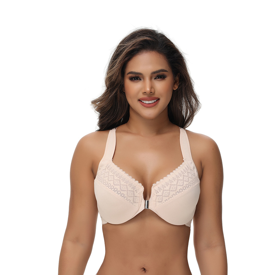 유럽과 미국의 플러스 사이즈 전면 버튼 속옷 크로스 보더 플러스 사이즈 브래지어 스틸 링 가슴 성형 섹시한 플러스 사이즈 속옷